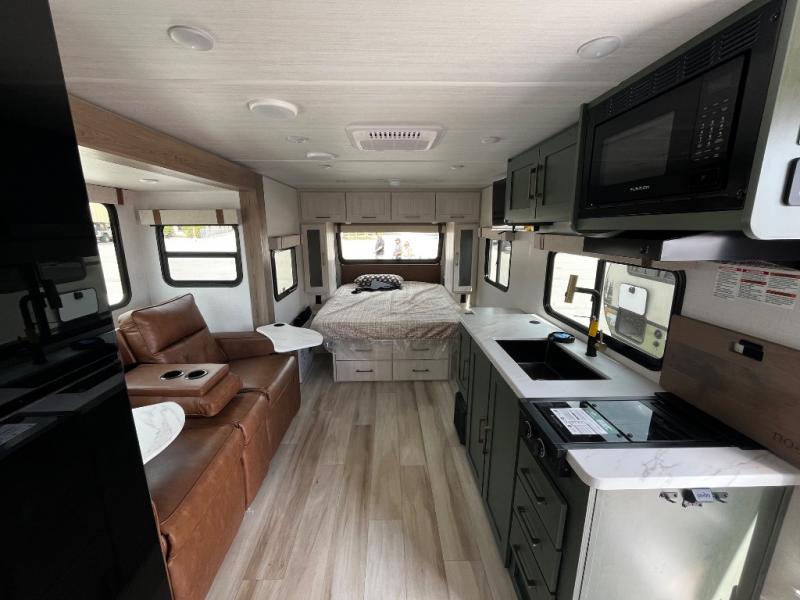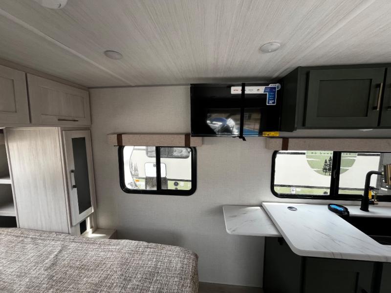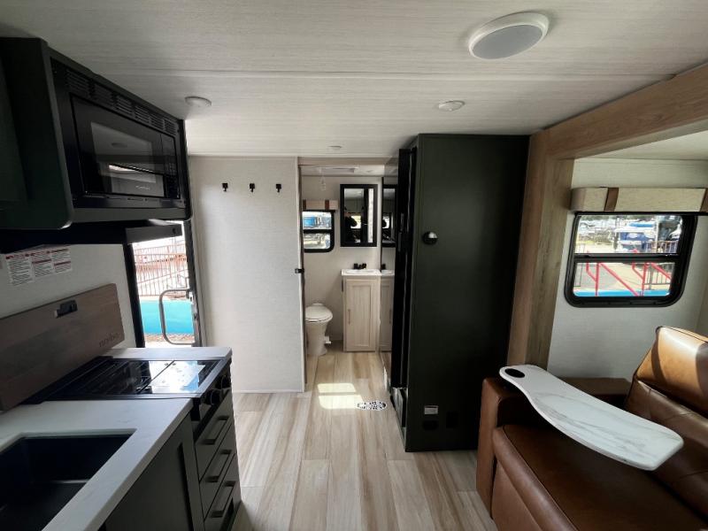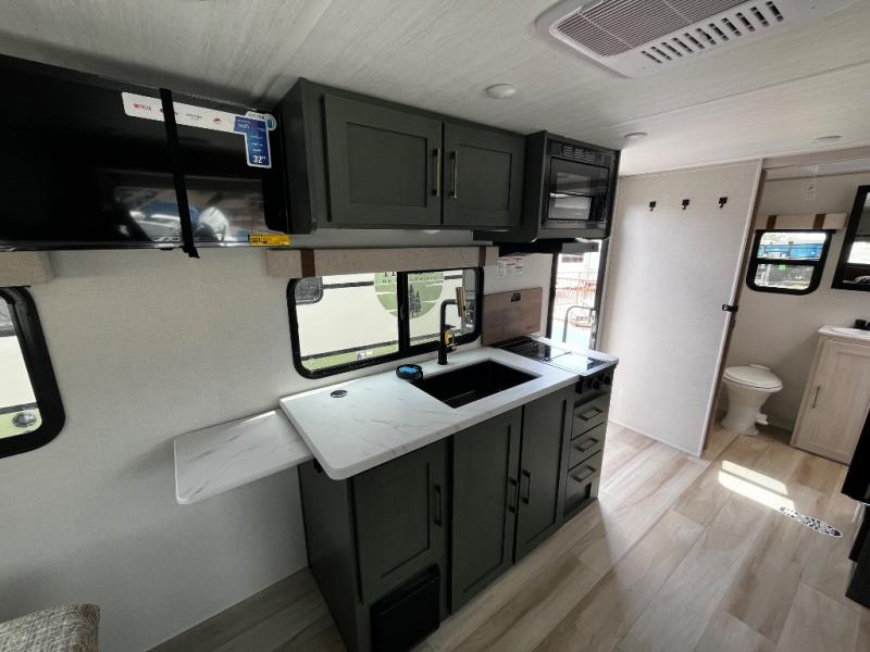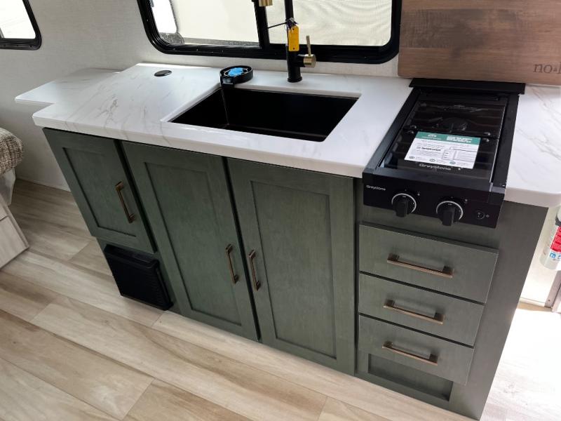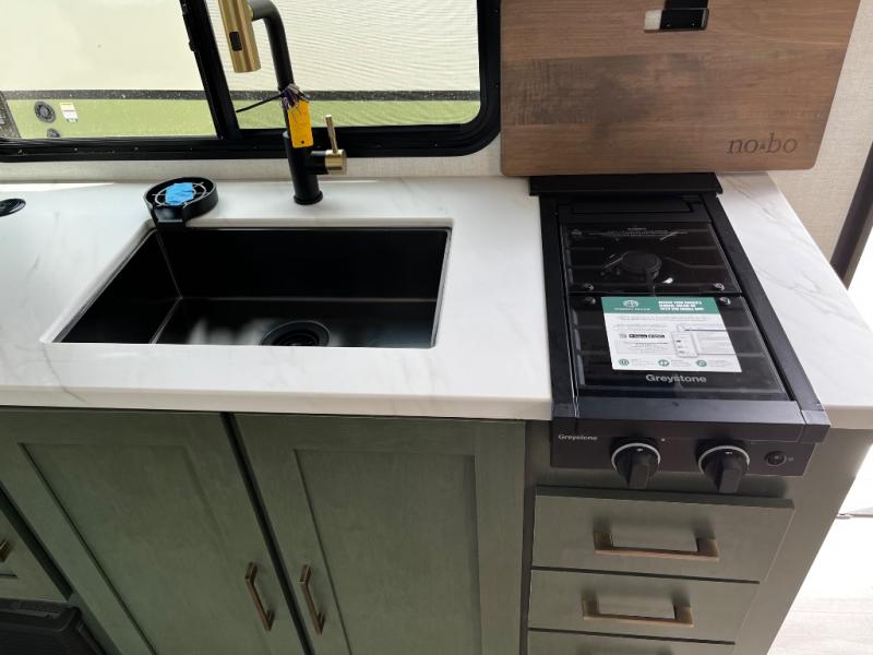 Make your camping dreams come true with this No Boundaries travel trailer! The kitchen has great amenities, like a cooktop and microwave, plus a refrigerator, and a sink to clean up, but you may just find yourselves cooking on the outside kitchen. A jackknife sofa slide will provide seating and sleeping space for a guest, while you take the front queen bed. There are dual bedside wardrobes to keep your clothes organized, and the exterior slam latch cargo doors include pass-thru lighting so you can easily find what you're looking for even at night! When the optional Beast Mode Package on this model is chosen, you'll enjoy a 400-watt solar package, a fresh water filter, a Maxxair roof vent cover, plus a Beast Mode independent suspension for better handling.