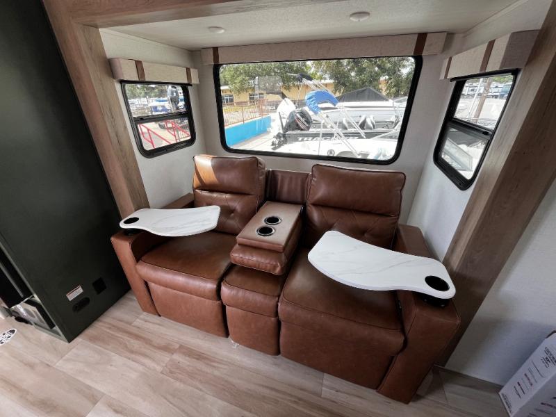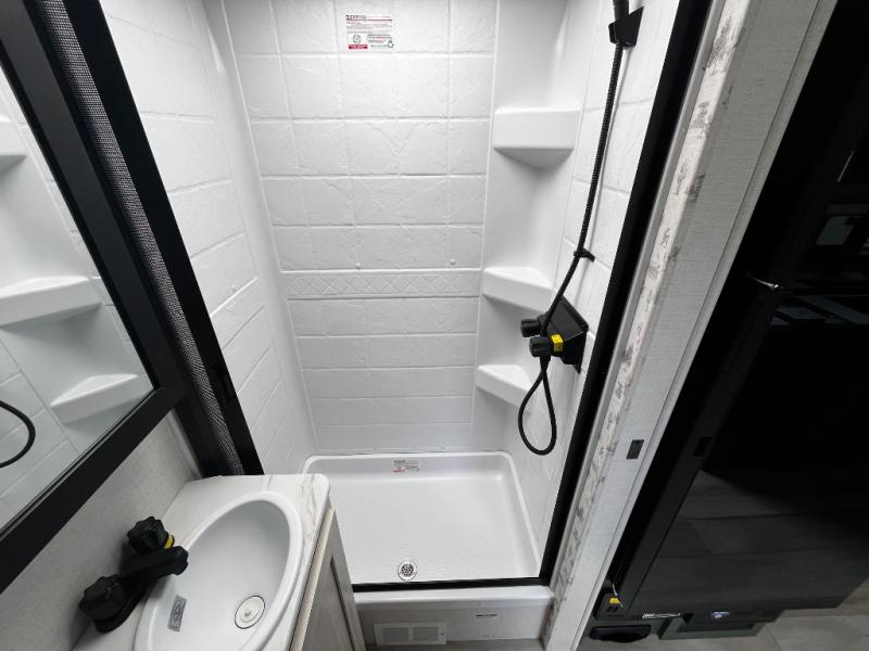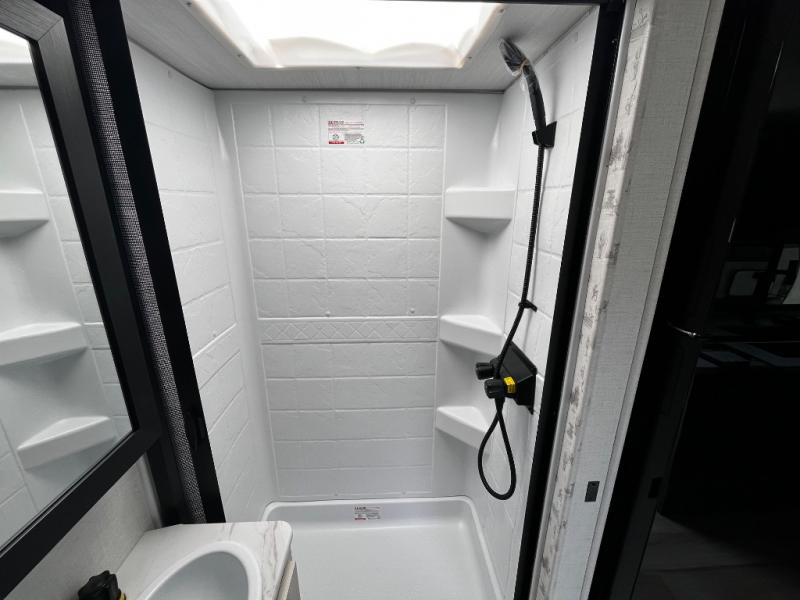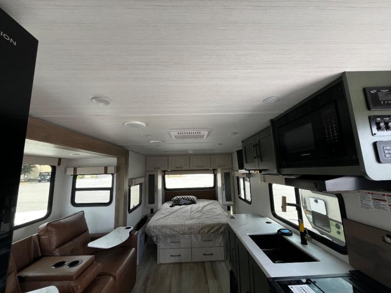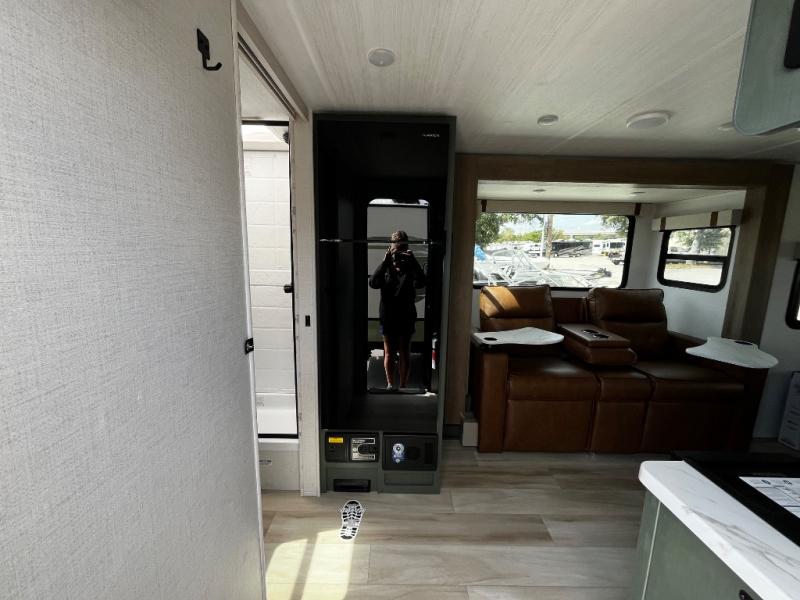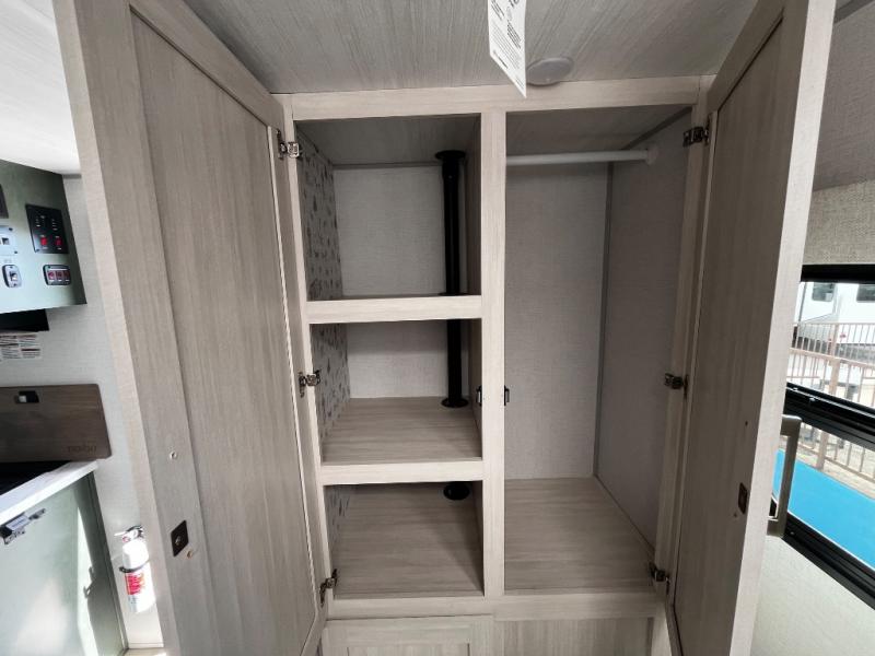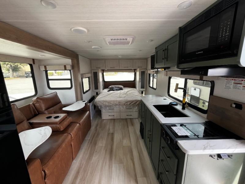 Make your camping dreams come true with this No Boundaries travel trailer! The kitchen has great amenities, like a cooktop and microwave, plus a refrigerator, and a sink to clean up, but you may just find yourselves cooking on the outside kitchen. A jackknife sofa slide will provide seating and sleeping space for a guest, while you take the front queen bed. There are dual bedside wardrobes to keep your clothes organized, and the exterior slam latch cargo doors include pass-thru lighting so you can easily find what you're looking for even at night! When the optional Beast Mode Package on this model is chosen, you'll enjoy a 400-watt solar package, a fresh water filter, a Maxxair roof vent cover, plus a Beast Mode independent suspension for better handling.