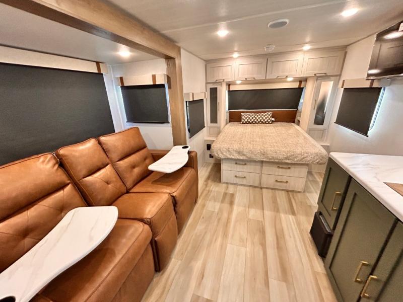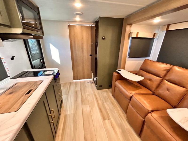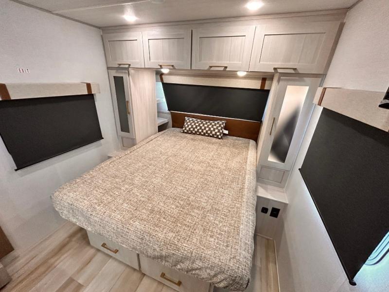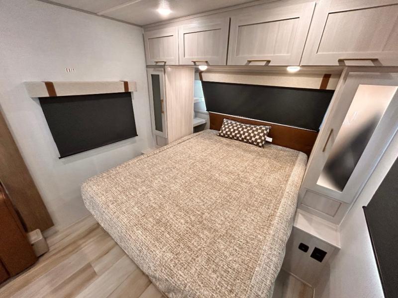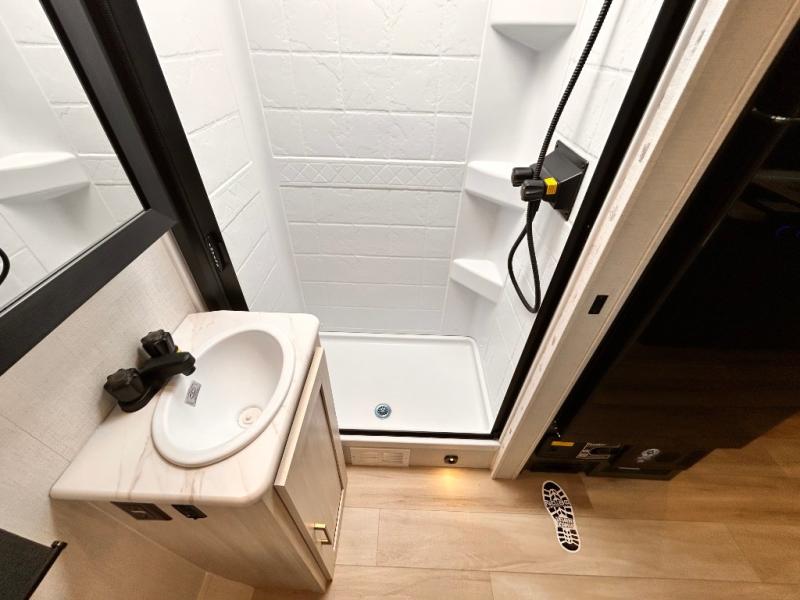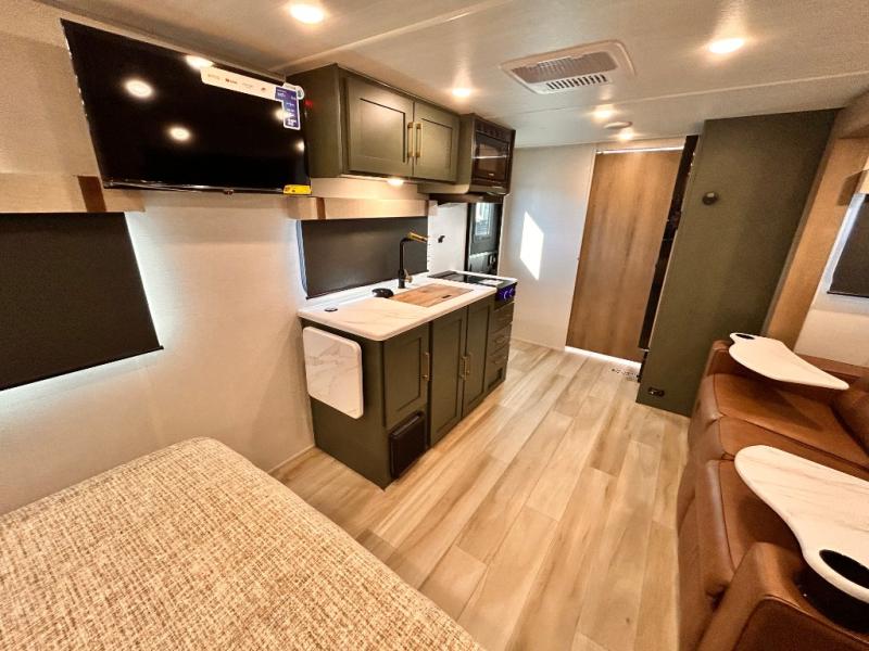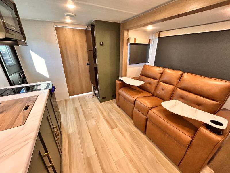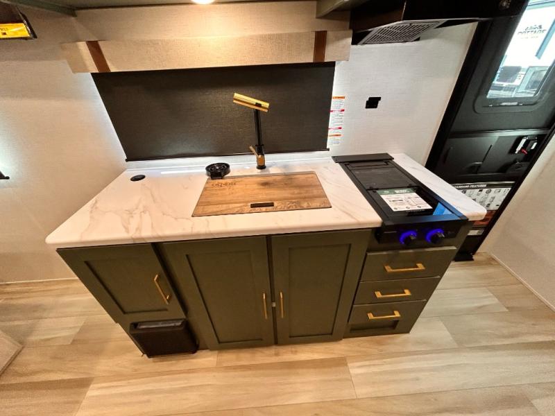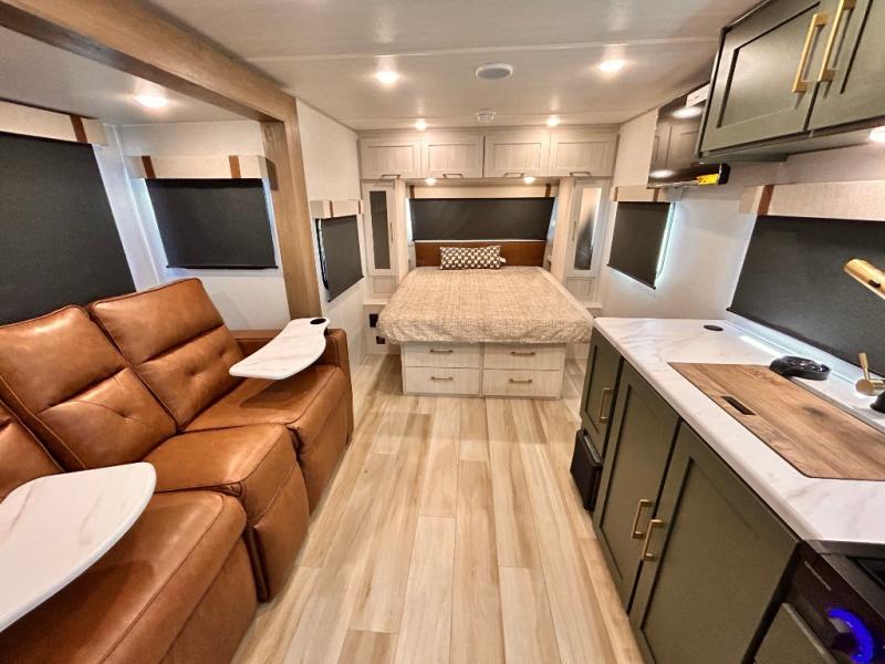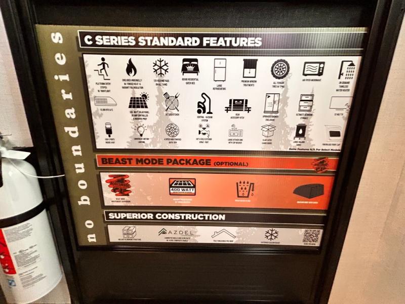 - EXTENDED SEASON READY - (ALUMINUM FRAMED FLOOR W/BLOCK FOAM INSULATION, SEALED UNDERBELLY W/FORCED HEAT & RADIANT FOIL BARRIER, 12V TANK HEATERS), FIBERGLASS FRONT CAP W/ LED LIGHTING, ALL TERRAIN TIRES W/ TPMS, 200W SOLAR PANEL & 30 AMP CONTROLLER, SOLAR INVERTER PREP, 15K BTU A/C, CENTRAL VAC SYSTEM W/HOSE KIT, 12V REFER, UPGRADED SLOW CLOSE SHOWER DOOR (SELECT MODELS), SURF(X)® SEAMLESS C'TOPS, AIR FRYER MICRO, UPGRADED DINETTE PEDESTAL LEG, LARGE KIT. SINK W/CUP WASHER, BLUE TOOTH AUDIO W/MARINE GRADE SPEAKERS, SOLID ENTRY STEP(S), OUTDOOR KITCHEN, TANKLESS WATER HEATER, HOT & COLD EXT. SPAY PORT, PWR TONGUE JACK, SLAM LATCH BAGGAGE DOORS, ELEC AWNING WILED LIGHT STRIP, BLACK GLASS FRICTION HINGE ENTRY DOOR(S), ROOF LADDER PREP,