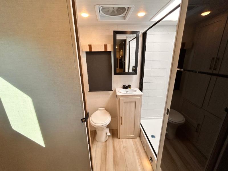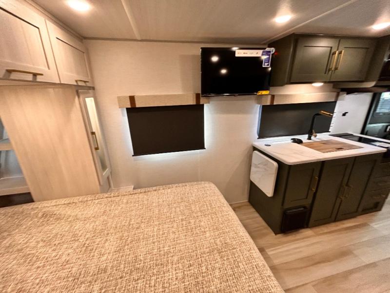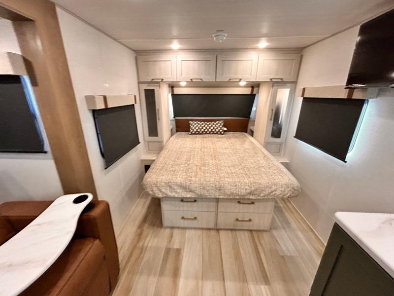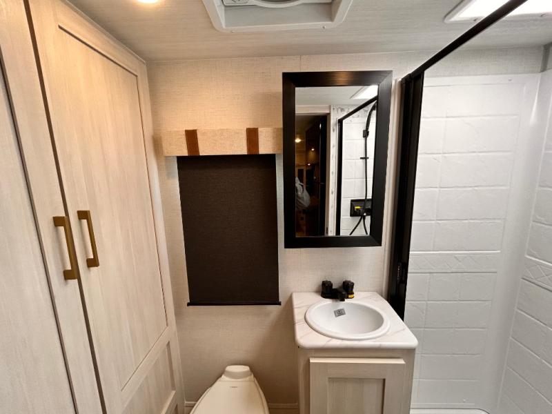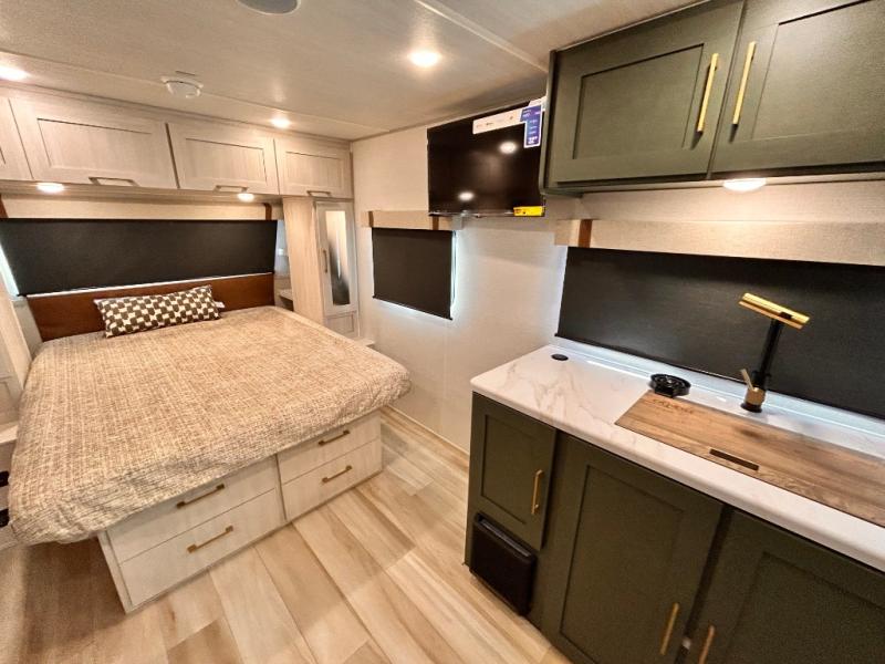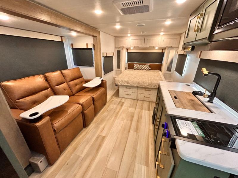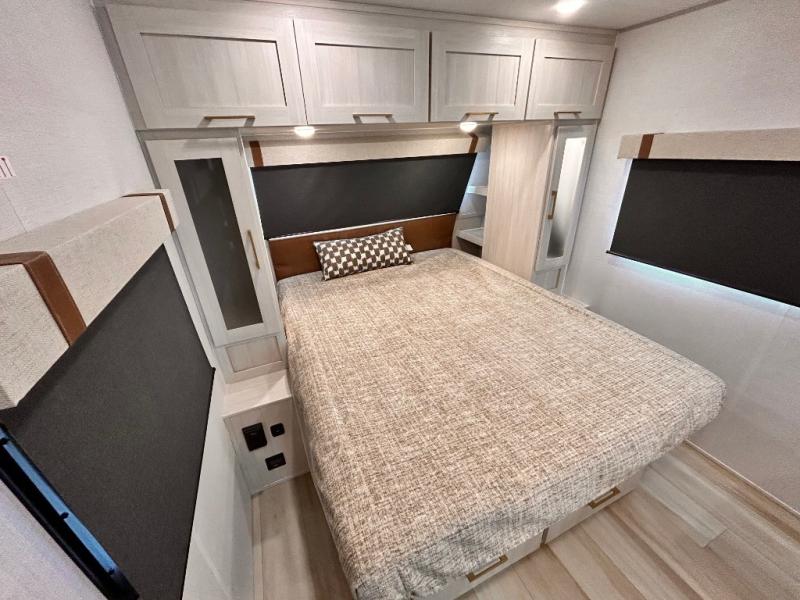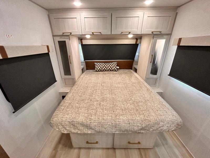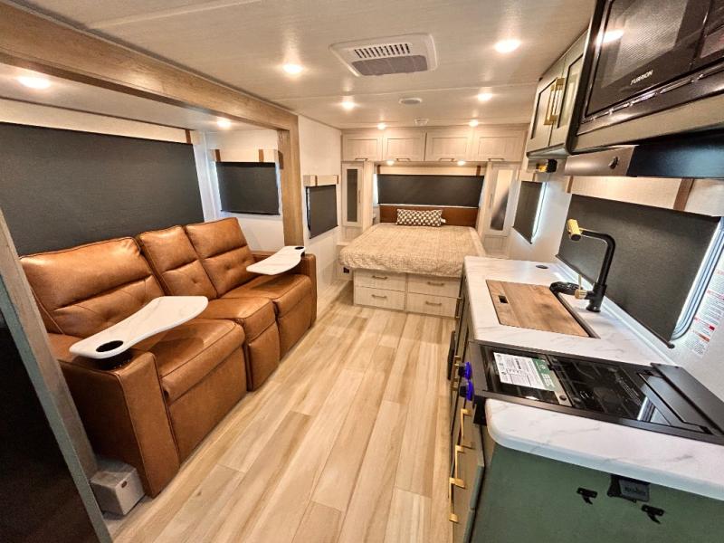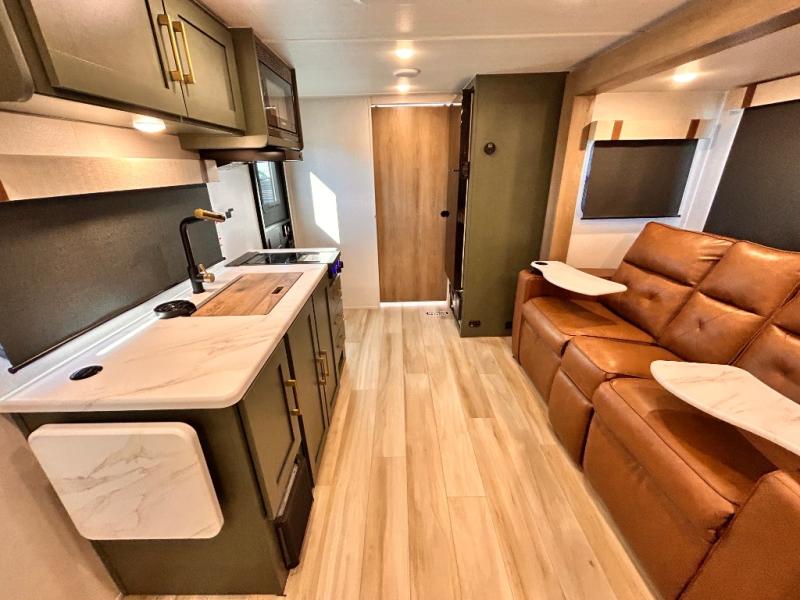 - EXTENDED SEASON READY - (ALUMINUM FRAMED FLOOR W/BLOCK FOAM INSULATION, SEALED UNDERBELLY W/FORCED HEAT & RADIANT FOIL BARRIER, 12V TANK HEATERS), FIBERGLASS FRONT CAP W/ LED LIGHTING, ALL TERRAIN TIRES W/ TPMS, 200W SOLAR PANEL & 30 AMP CONTROLLER, SOLAR INVERTER PREP, 15K BTU A/C, CENTRAL VAC SYSTEM W/HOSE KIT, 12V REFER, UPGRADED SLOW CLOSE SHOWER DOOR (SELECT MODELS), SURF(X)® SEAMLESS C'TOPS, AIR FRYER MICRO, UPGRADED DINETTE PEDESTAL LEG, LARGE KIT. SINK W/CUP WASHER, BLUE TOOTH AUDIO W/MARINE GRADE SPEAKERS, SOLID ENTRY STEP(S), OUTDOOR KITCHEN, TANKLESS WATER HEATER, HOT & COLD EXT. SPAY PORT, PWR TONGUE JACK, SLAM LATCH BAGGAGE DOORS, ELEC AWNING WILED LIGHT STRIP, BLACK GLASS FRICTION HINGE ENTRY DOOR(S), ROOF LADDER PREP,