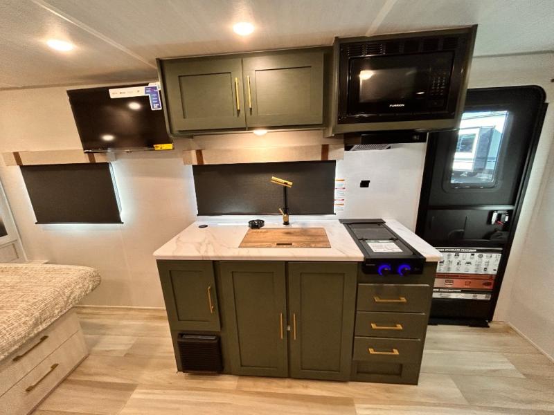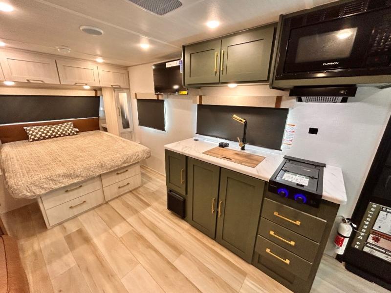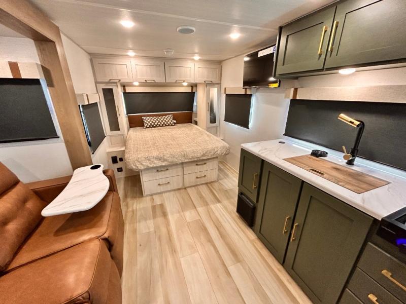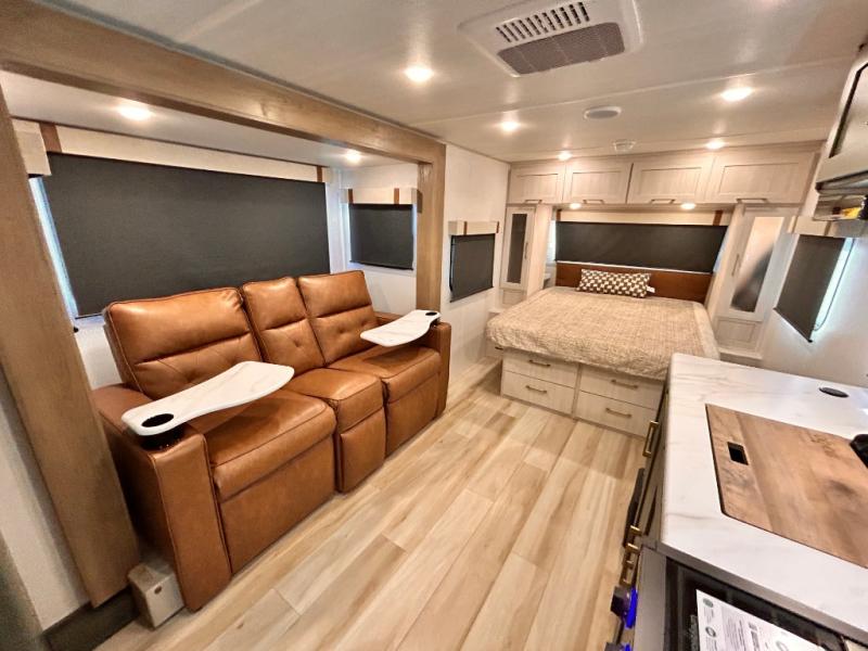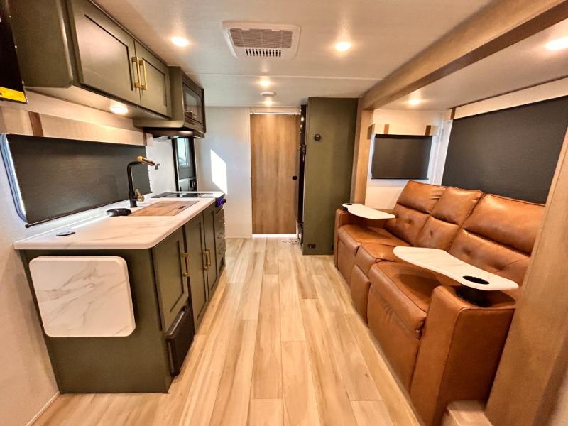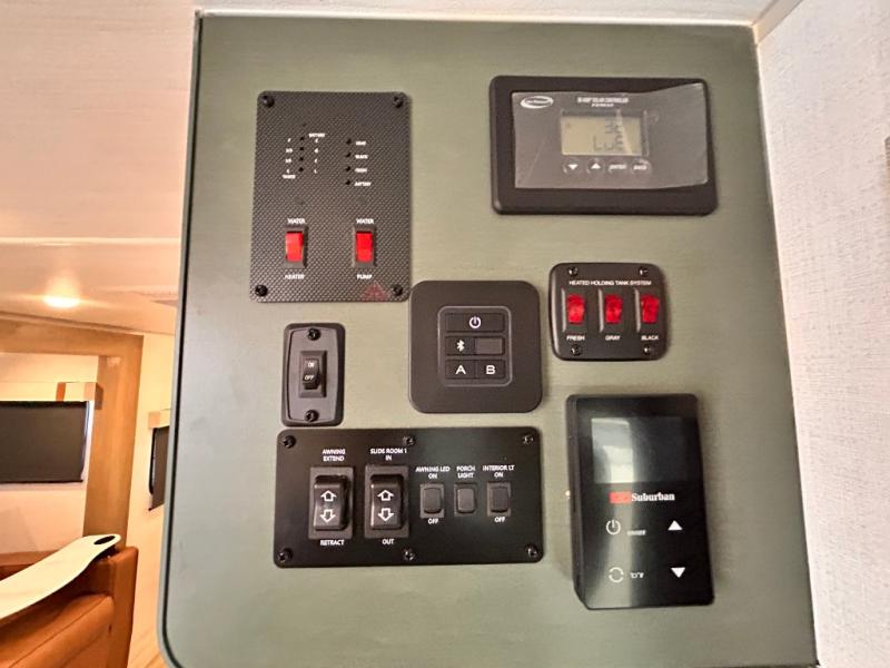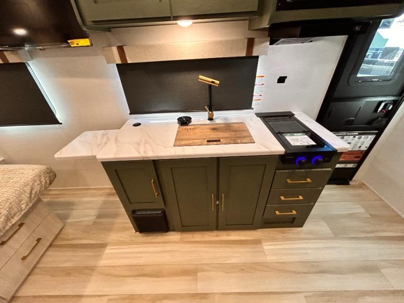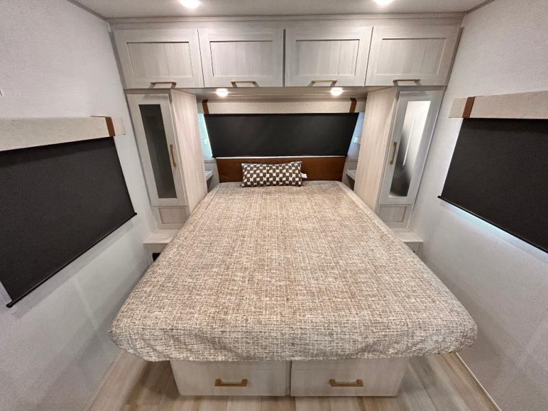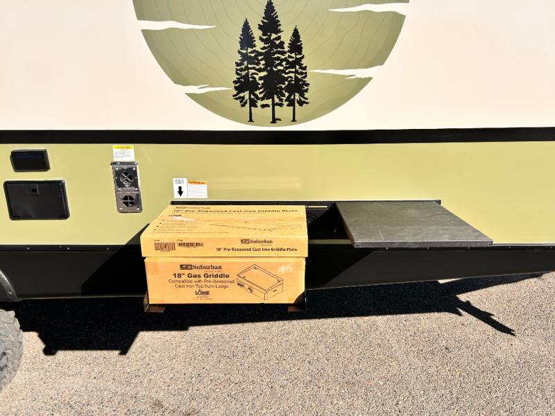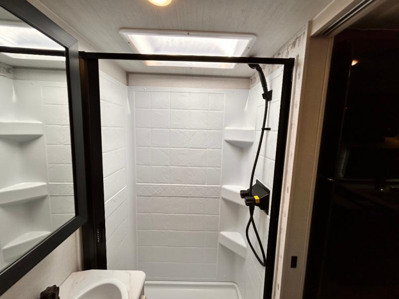 - EXTENDED SEASON READY - (ALUMINUM FRAMED FLOOR W/BLOCK FOAM INSULATION, SEALED UNDERBELLY W/FORCED HEAT & RADIANT FOIL BARRIER, 12V TANK HEATERS), FIBERGLASS FRONT CAP W/ LED LIGHTING, ALL TERRAIN TIRES W/ TPMS, 200W SOLAR PANEL & 30 AMP CONTROLLER, SOLAR INVERTER PREP, 15K BTU A/C, CENTRAL VAC SYSTEM W/HOSE KIT, 12V REFER, UPGRADED SLOW CLOSE SHOWER DOOR (SELECT MODELS), SURF(X)® SEAMLESS C'TOPS, AIR FRYER MICRO, UPGRADED DINETTE PEDESTAL LEG, LARGE KIT. SINK W/CUP WASHER, BLUE TOOTH AUDIO W/MARINE GRADE SPEAKERS, SOLID ENTRY STEP(S), OUTDOOR KITCHEN, TANKLESS WATER HEATER, HOT & COLD EXT. SPAY PORT, PWR TONGUE JACK, SLAM LATCH BAGGAGE DOORS, ELEC AWNING WILED LIGHT STRIP, BLACK GLASS FRICTION HINGE ENTRY DOOR(S), ROOF LADDER PREP,