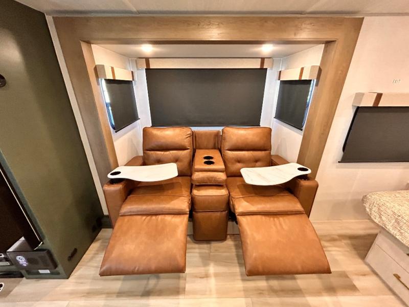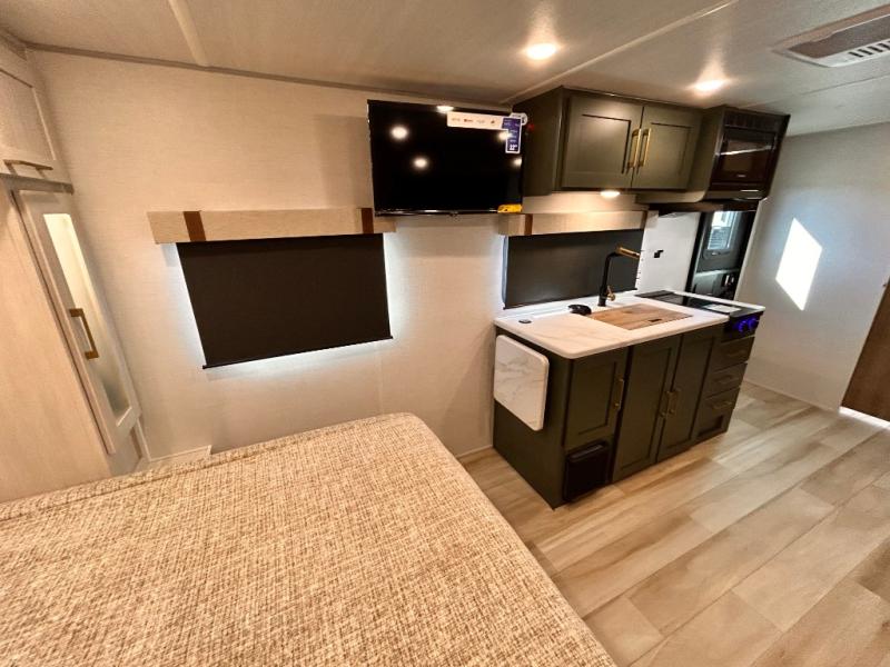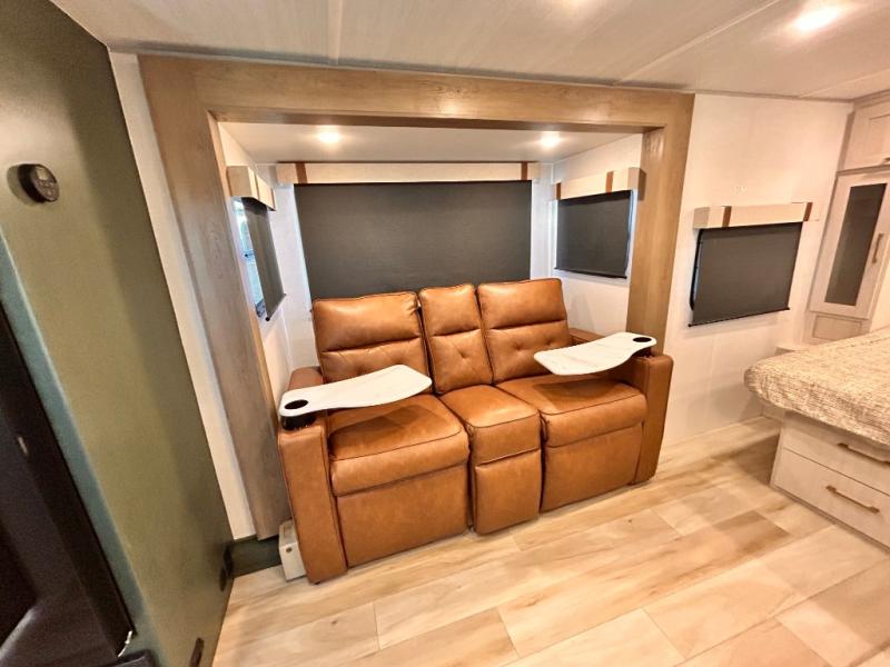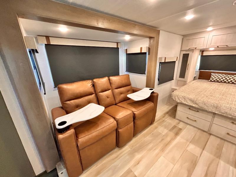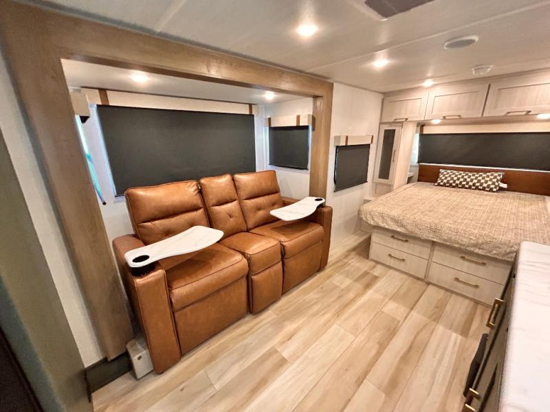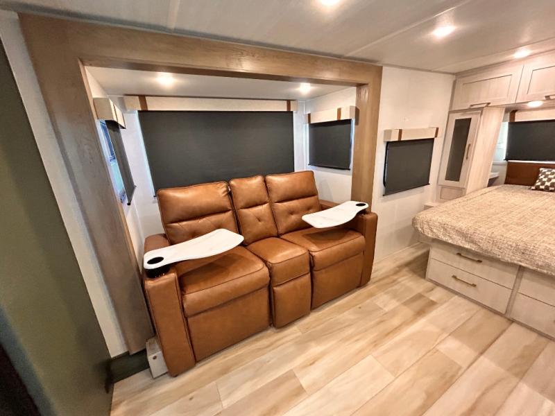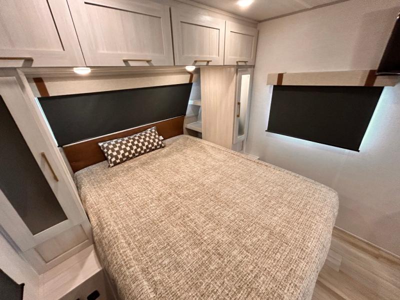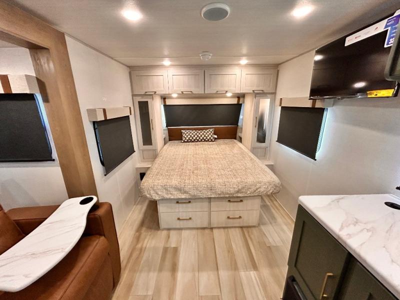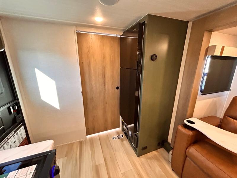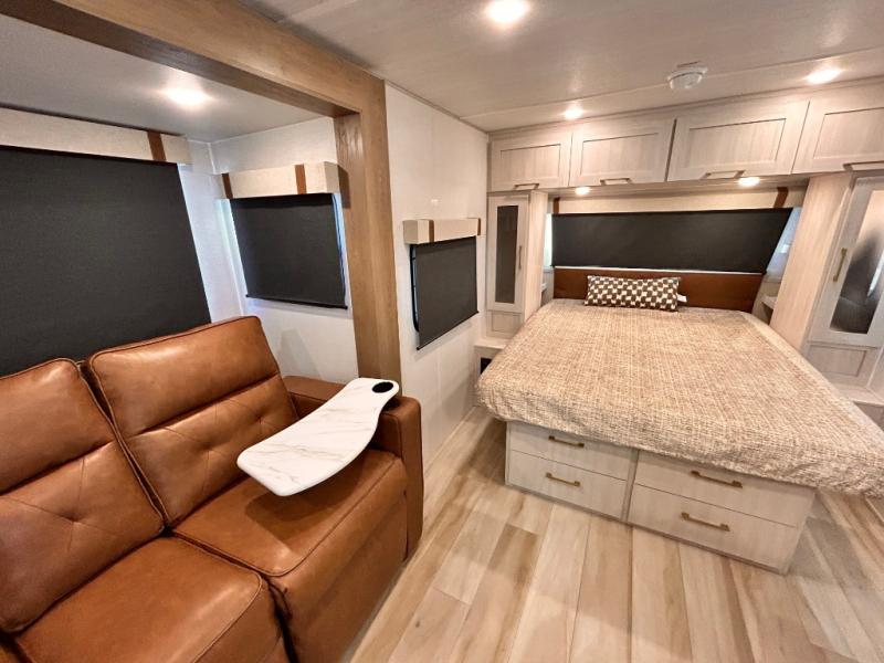 - EXTENDED SEASON READY - (ALUMINUM FRAMED FLOOR W/BLOCK FOAM INSULATION, SEALED UNDERBELLY W/FORCED HEAT & RADIANT FOIL BARRIER, 12V TANK HEATERS), FIBERGLASS FRONT CAP W/ LED LIGHTING, ALL TERRAIN TIRES W/ TPMS, 200W SOLAR PANEL & 30 AMP CONTROLLER, SOLAR INVERTER PREP, 15K BTU A/C, CENTRAL VAC SYSTEM W/HOSE KIT, 12V REFER, UPGRADED SLOW CLOSE SHOWER DOOR (SELECT MODELS), SURF(X)® SEAMLESS C'TOPS, AIR FRYER MICRO, UPGRADED DINETTE PEDESTAL LEG, LARGE KIT. SINK W/CUP WASHER, BLUE TOOTH AUDIO W/MARINE GRADE SPEAKERS, SOLID ENTRY STEP(S), OUTDOOR KITCHEN, TANKLESS WATER HEATER, HOT & COLD EXT. SPAY PORT, PWR TONGUE JACK, SLAM LATCH BAGGAGE DOORS, ELEC AWNING WILED LIGHT STRIP, BLACK GLASS FRICTION HINGE ENTRY DOOR(S), ROOF LADDER PREP,