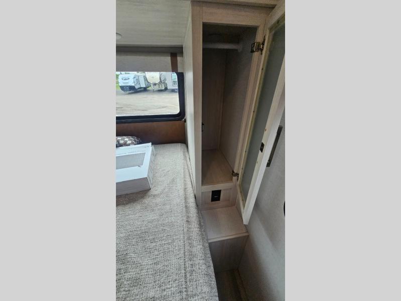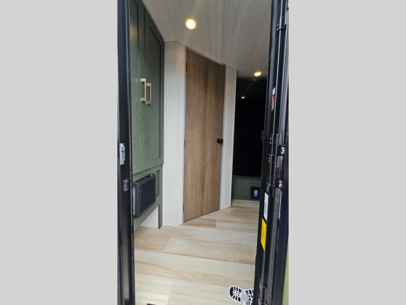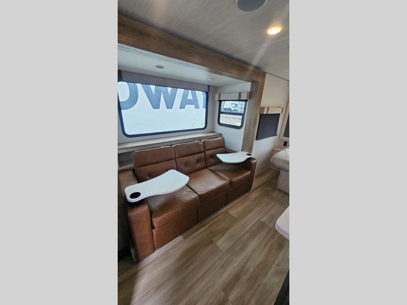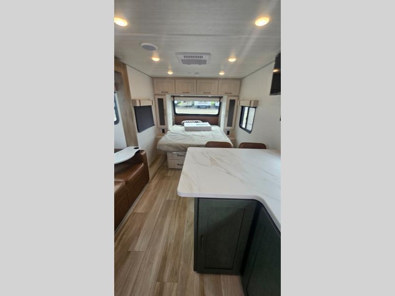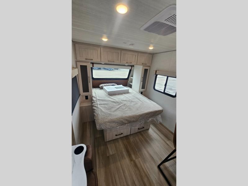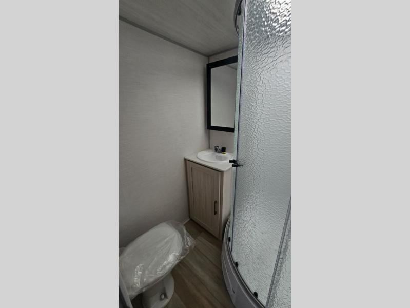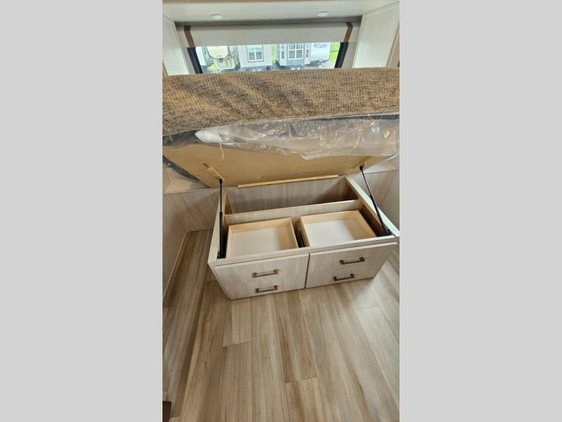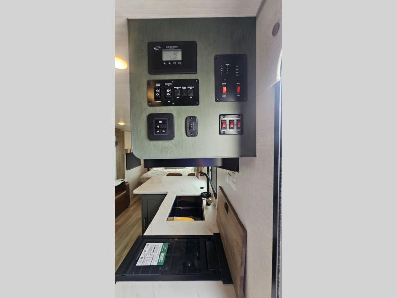Make your camping dreams come true with this No Boundaries travel trailer! As you enter this unit, you'll notice an entryway pantry that you can use to store your coats and scarves, and the full bathroom is also right in front of the entry door for easy access when you need it. The kitchen has great amenities, like the cooktop and microwave, plus a refrigerator and a sink, and there is a breakfast bar with two stools to enjoy your coffee at each morning. And you'll sleep soundly each night on the front queen bed!