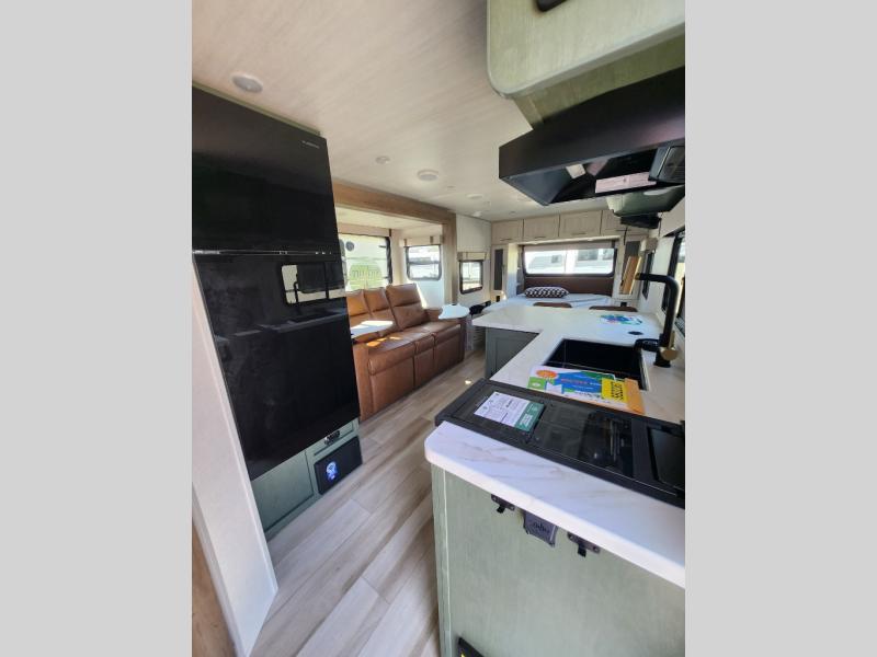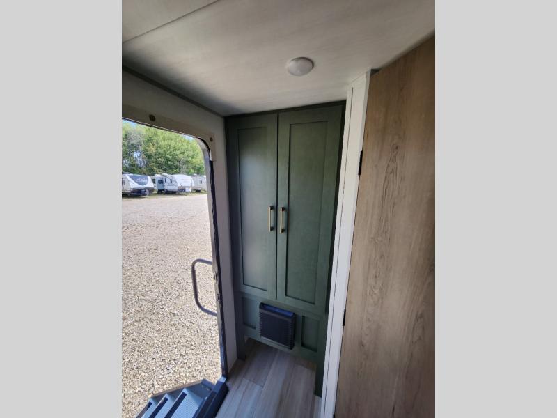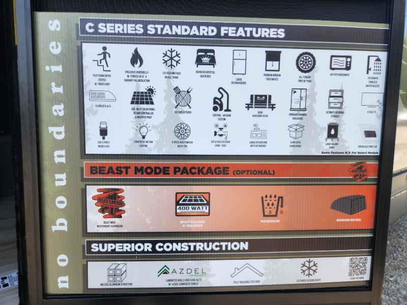 Make your camping dreams come true with this No Boundaries travel trailer! As you enter this unit, you'll notice an entryway pantry that you can use to store your coats and scarves, and the full bathroom is also right in front of the entry door for easy access when you need it. The kitchen has great amenities, like a cooktop and microwave oven, plus a pantry and refrigerator for food storage. And the front queen bed is sure to provide a great night's rest. When the optional Beast Mode Package on this model is chosen, you'll enjoy a 400-watt solar package, a fresh water filter, a Maxxair roof vent cover, plus a Beast Mode independent suspension for better handling.