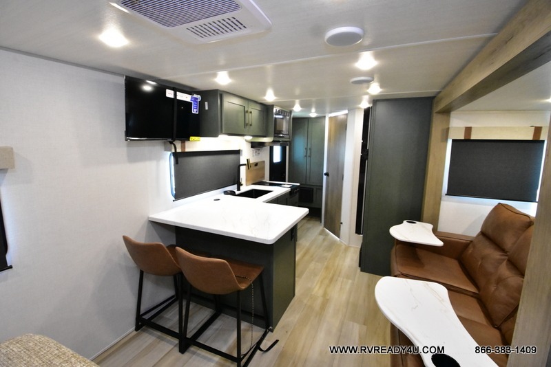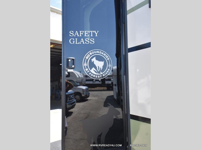 Make your camping dreams come true with this No Boundaries travel trailer! As you enter this unit, you'll notice an entryway pantry that you can use to store your coats and scarves, and the full bathroom is also right in front of the entry door for easy access when you need it. The kitchen has great amenities, like a cooktop and microwave oven, plus a pantry and refrigerator for food storage. And the front queen bed is sure to provide a great night's rest. When the optional Beast Mode Package on this model is chosen, you'll enjoy a 400-watt solar package, a fresh water filter, a Maxxair roof vent cover, plus a Beast Mode independent suspension for better handling.