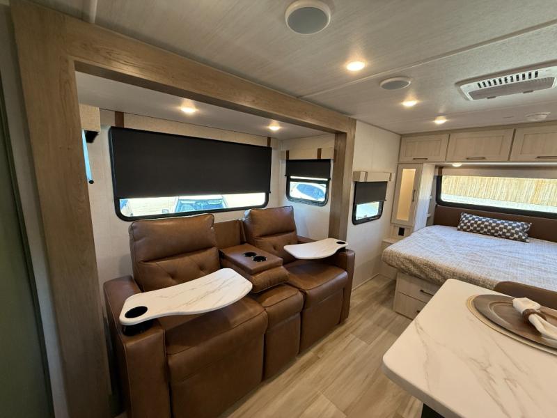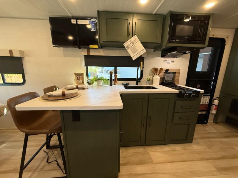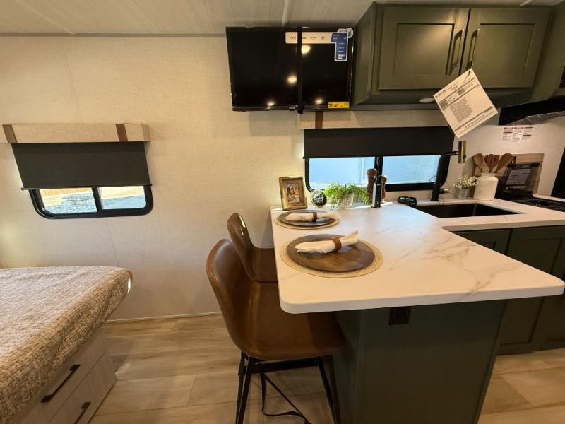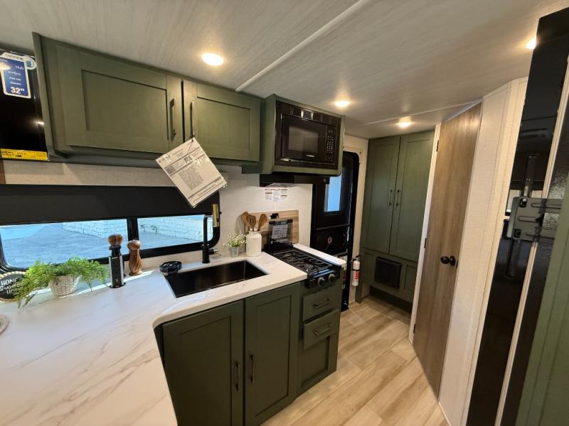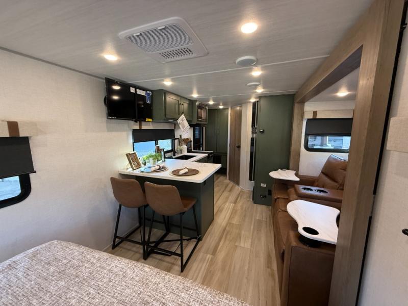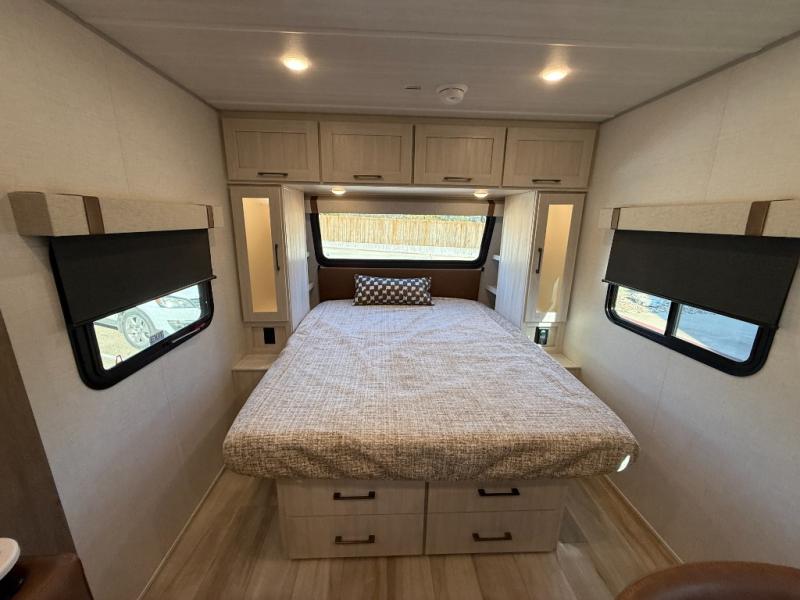 Make your camping dreams come true with this No Boundaries travel trailer! As you enter this unit, you'll notice an entryway pantry that you can use to store your coats and scarves, and the full bathroom is also right in front of the entry door for easy access when you need it. The kitchen has great amenities, like a cooktop and microwave oven, plus a pantry and refrigerator for food storage. And the front queen bed is sure to provide a great night's rest. When the optional Beast Mode Package on this model is chosen, you'll enjoy a 400-watt solar package, a fresh water filter, a Maxxair roof vent cover, plus a Beast Mode independent suspension for better handling.