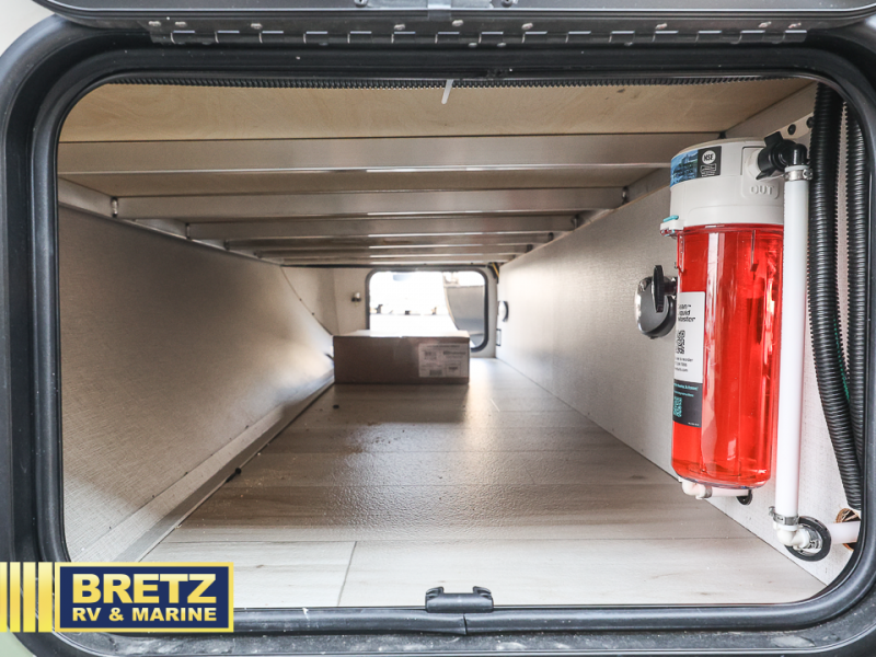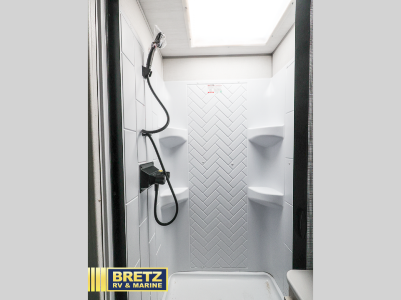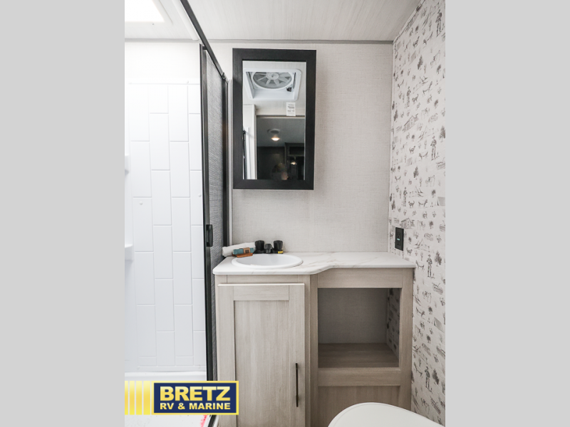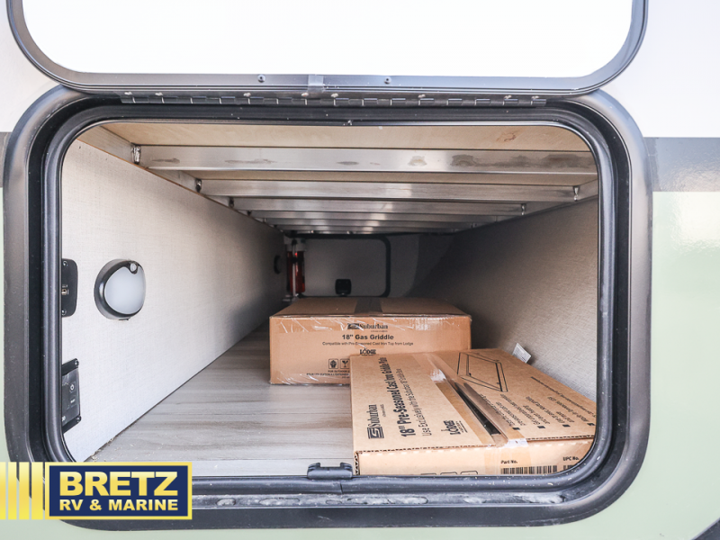 You'll love the versatility and space you'll have in this couple's trailer! The front Murphy bed provides seating and sleeping space, and the wardrobes will help keep your items organized. There is a jackknife sofa slide out to relax on, or you may just find yourselves outdoors under the patio awning. An optional theater seat option can be chosen in place of the jackknife sofa if you'd prefer that type of seating. A full kitchen lets you cook and store meals while at the campground, and the full bath on board means you won't have to use the camp's facilities! When the optional Beast Mode Package on this model is chosen, you'll enjoy a 400-watt solar package, a fresh water filter, a Maxxair roof vent cover, plus a Beast Mode independent suspension for better handling.