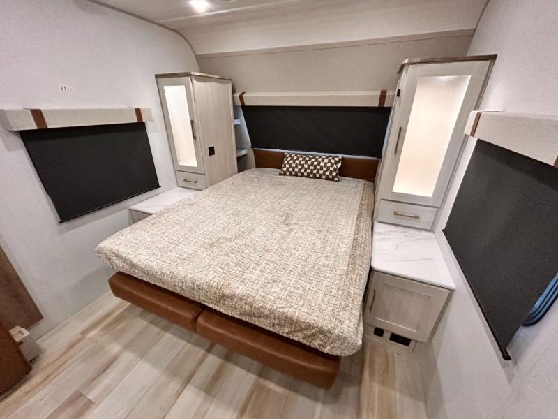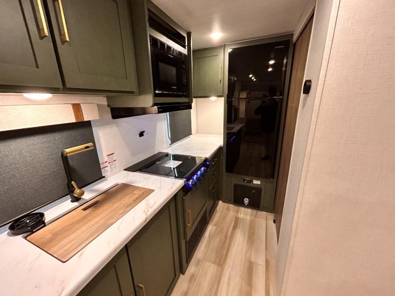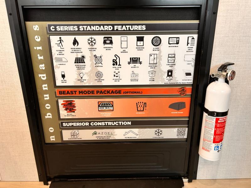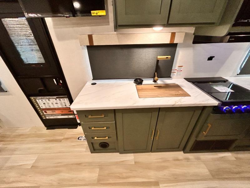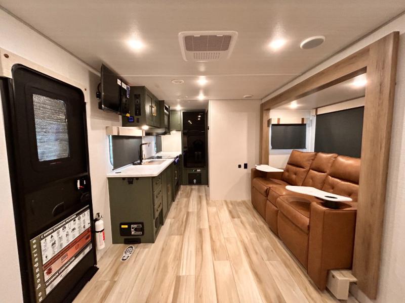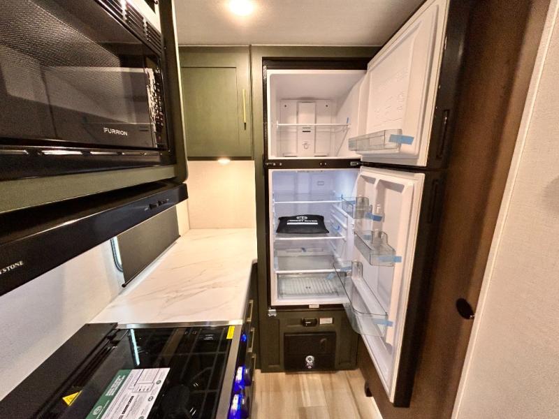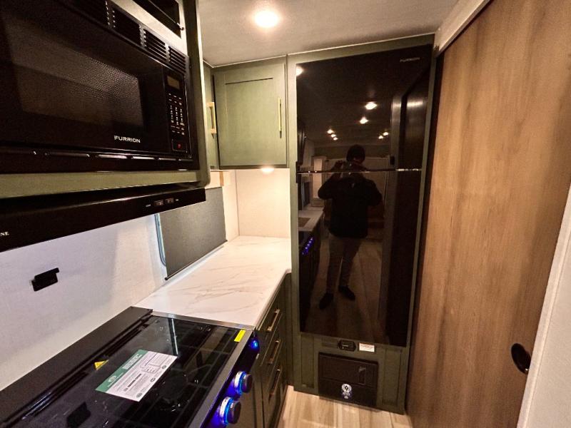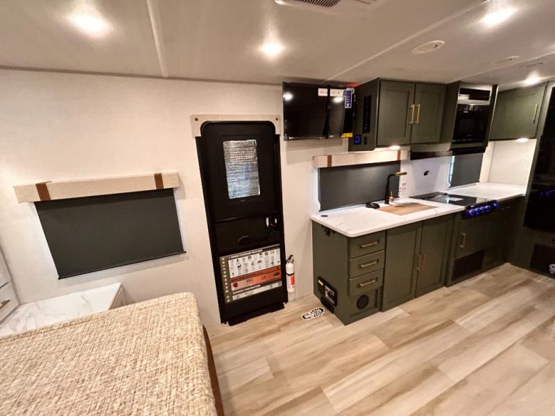 - EXTENDED SEASON READY - (ALUMINUM FRAMED FLOOR W/BLOCK FOAM INSULATION, SEALED UNDERBELLY W/FORCED HEAT & RADIANT FOIL BARRIER, 12V TANK HEATERS), FIBERGLASS FRONT CAP W/ LED LIGHTING, ALL TERRAIN TIRES W/ TPMS, 200W SOLAR PANEL & 30 AMP CONTROLLER, SOLAR INVERTER PREP, 15K BTU A/C, CENTRAL VAC SYSTEM W/HOSE KIT, 12V REFER, UPGRADED SLOW CLOSE SHOWER DOOR (SELECT MODELS), SURF(X)® SEAMLESS C’TOPS, AIR FRYER MICRO, UPGRADED DINETTE PEDESTAL LEG, LARGE KIT. SINK W/ CUP WASHER, BLUE TOOTH AUDIO W/MARINE GRADE SPEAKERS, SOLID ENTRY STEP(S), OUTDOOR KITCHEN, TANKLESS WATER HEATER, HOT & COLD EXT. SPAY PORT, PWR TONGUE JACK, SLAM LATCH BAGGAGE DOORS, ELEC AWNING W/LED LIGHT STRIP, BLACK GLASS FRICTION HINGE ENTRY DOOR(S), ROOF LADDER PREP, REAR CAMERA PREP, BATTERY DISCONNECT, INT & EXT MOTION LIGHTS, INT & EXT USB C-PORTS, 2" REAR ACCESSORY HITCH, SUPERIOR LAMINATED CONSTRUCTION FEATURING AZDEL COMPOSITE PANELS