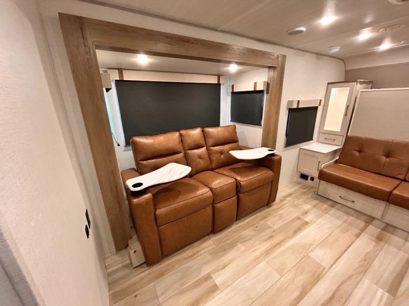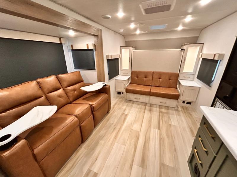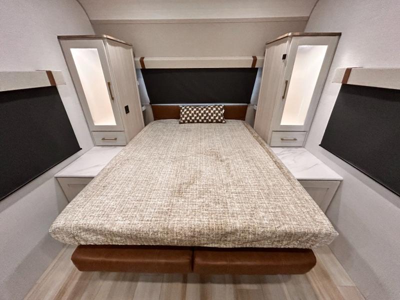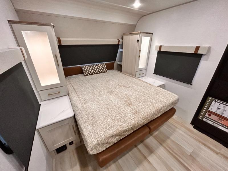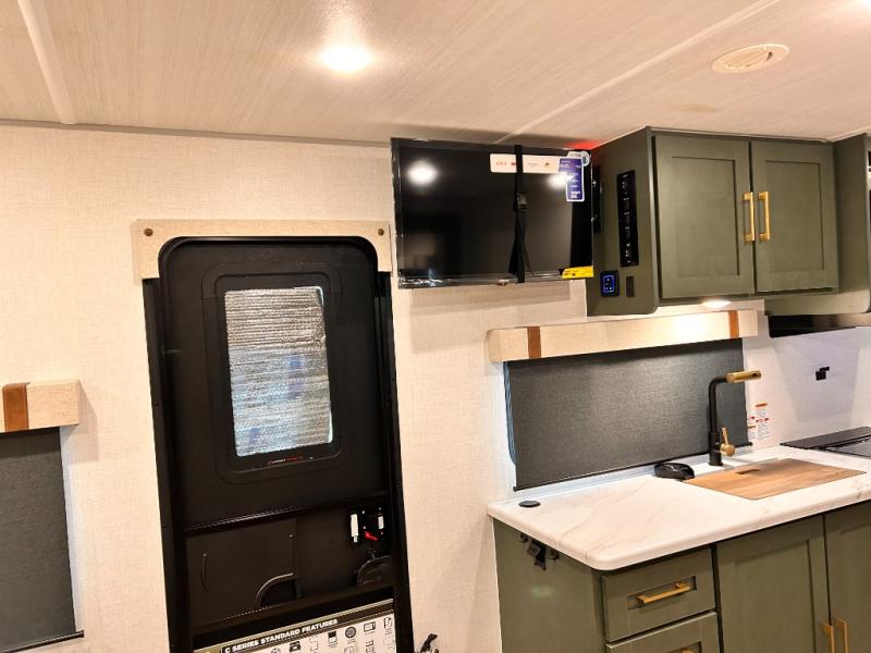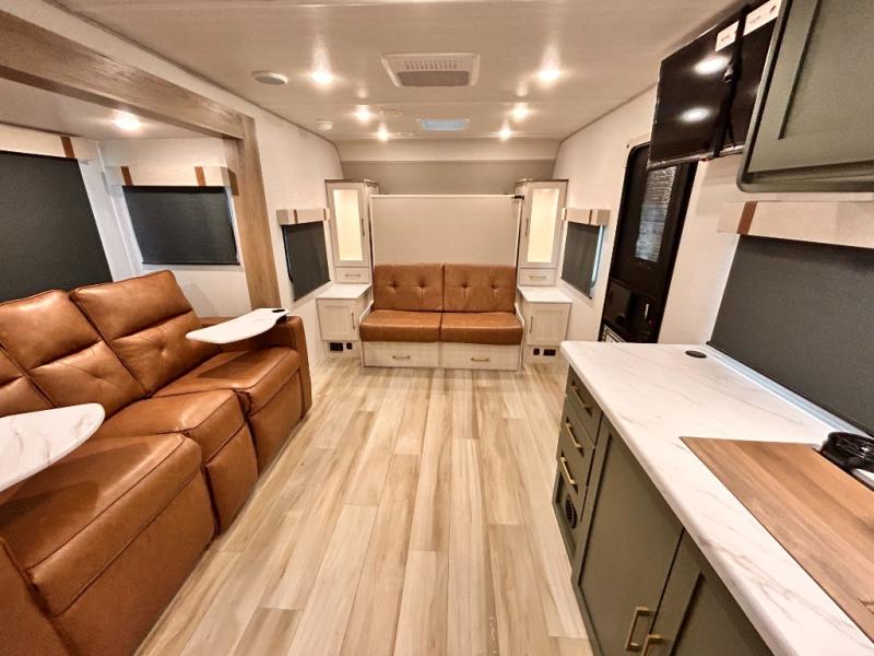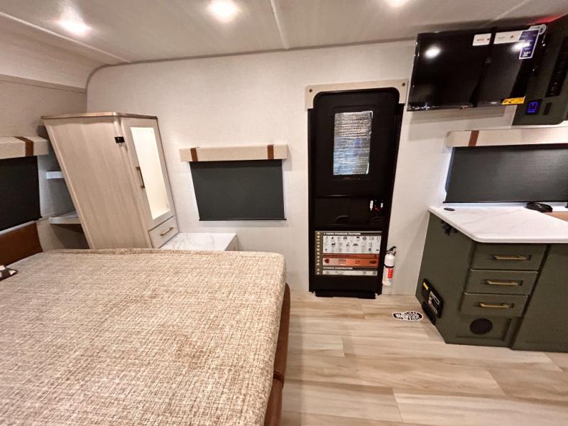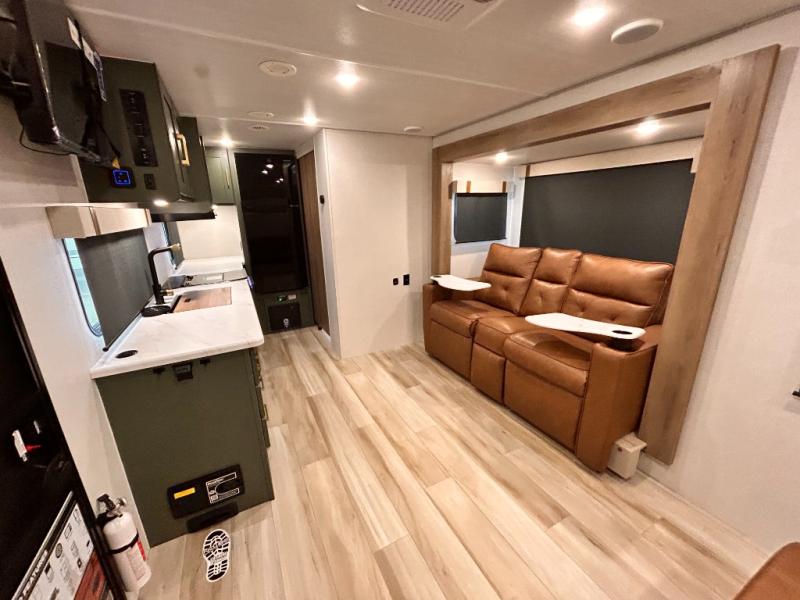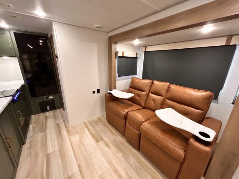 - EXTENDED SEASON READY - (ALUMINUM FRAMED FLOOR W/BLOCK FOAM INSULATION, SEALED UNDERBELLY W/FORCED HEAT & RADIANT FOIL BARRIER, 12V TANK HEATERS), FIBERGLASS FRONT CAP W/ LED LIGHTING, ALL TERRAIN TIRES W/ TPMS, 200W SOLAR PANEL & 30 AMP CONTROLLER, SOLAR INVERTER PREP, 15K BTU A/C, CENTRAL VAC SYSTEM W/HOSE KIT, 12V REFER, UPGRADED SLOW CLOSE SHOWER DOOR (SELECT MODELS), SURF(X)® SEAMLESS C’TOPS, AIR FRYER MICRO, UPGRADED DINETTE PEDESTAL LEG, LARGE KIT. SINK W/ CUP WASHER, BLUE TOOTH AUDIO W/MARINE GRADE SPEAKERS, SOLID ENTRY STEP(S), OUTDOOR KITCHEN, TANKLESS WATER HEATER, HOT & COLD EXT. SPAY PORT, PWR TONGUE JACK, SLAM LATCH BAGGAGE DOORS, ELEC AWNING W/LED LIGHT STRIP, BLACK GLASS FRICTION HINGE ENTRY DOOR(S), ROOF LADDER PREP, REAR CAMERA PREP, BATTERY DISCONNECT, INT & EXT MOTION LIGHTS, INT & EXT USB C-PORTS, 2" REAR ACCESSORY HITCH, SUPERIOR LAMINATED CONSTRUCTION FEATURING AZDEL COMPOSITE PANELS