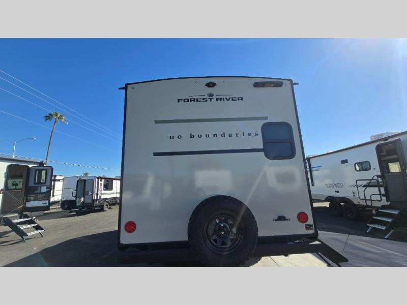 The Forest River No Boundaries travel trailers are exceptionally lightweight and can be towed by 4-cylinder and 6-cylinder tow vehicles! They are perfect for the outdoor enthusiast, and you'll find plenty of storage for your camp gear, personal belongings, and more! Each model is constructed with a welded aluminum structure, Azdel composite panels and a fully walkable PVC roof for added durability. There are a wide variety of floorplans to choose from, including 10 Series (under 2,500 lbs.), 18 and 19 Series (under 5,000 lbs.), plus 20 Series (under 5,500 lbs.). There are no boundaries when camping in these travel trailers!