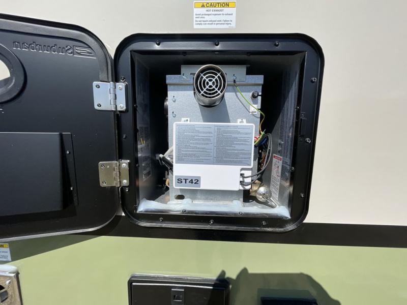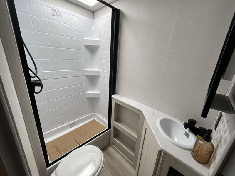 Pack up this very versatile Murphy bed travel trailer and head out to explore! You will love the space saving aspect that a Murphy bed gives you by not increasing the tow length in order to give you a separate bedroom and living space, and you don't even have to make the bed, just fold it up into the wall in the morning! Double-size bunks in the rear corner are perfect for accommodating both children and adults. The kitchen offers everything a cook would need to feed the whole gang and there is even a counter bar area with two stools which will be perfect for breakfast time. There is a booth dinette slide for more dining space, or a place to enjoy a board game or card game when you are inside.