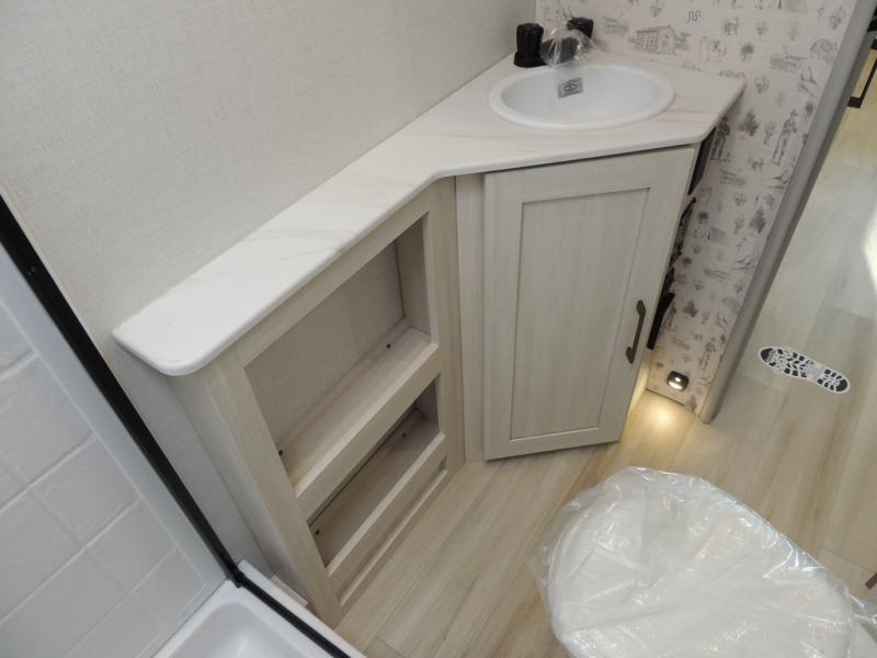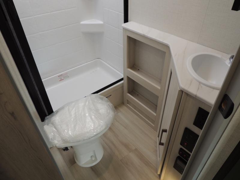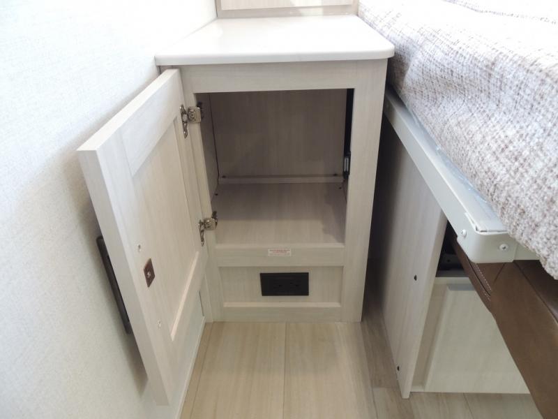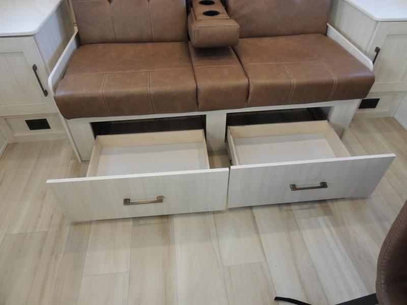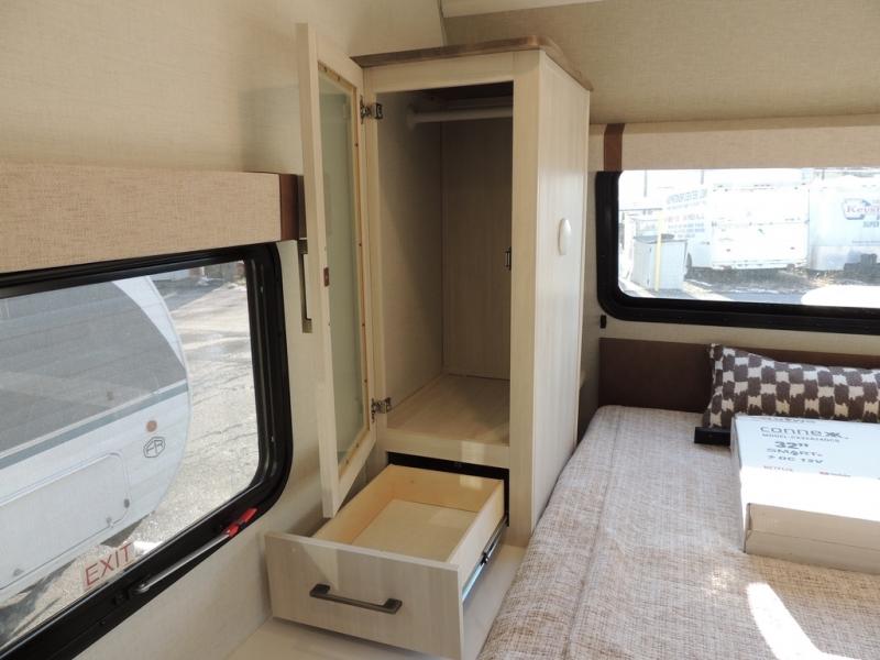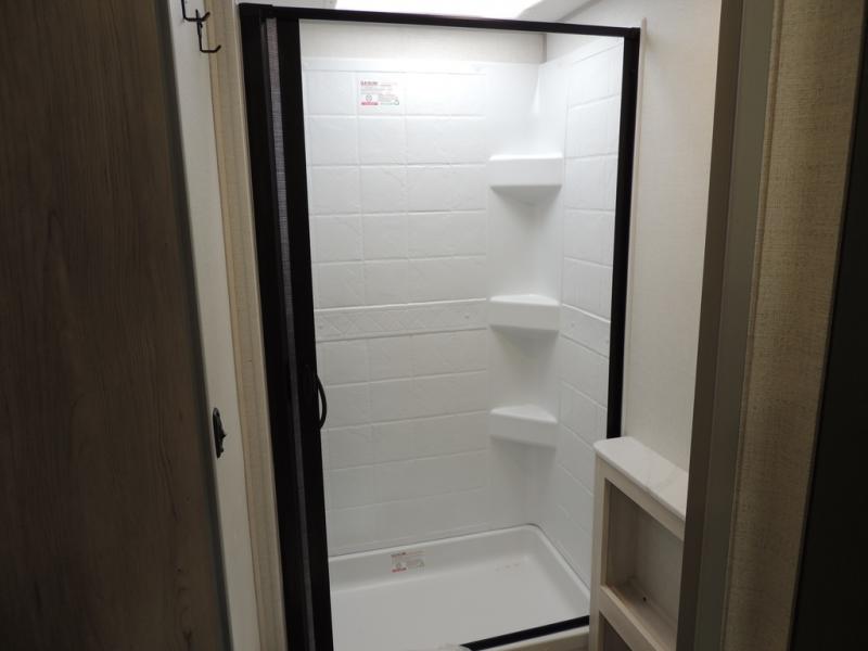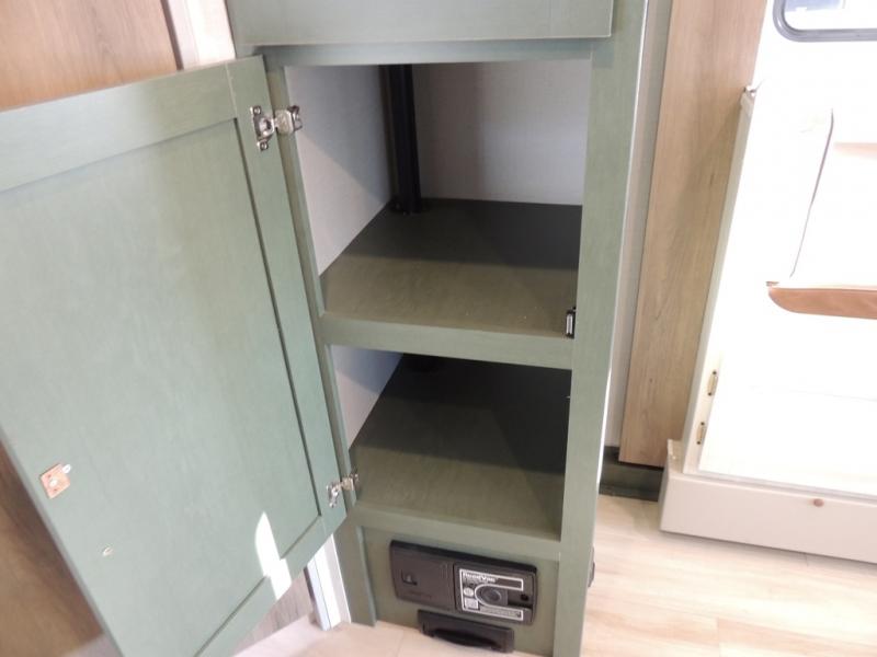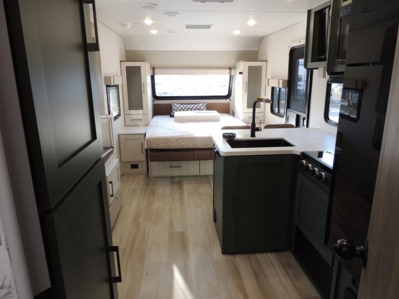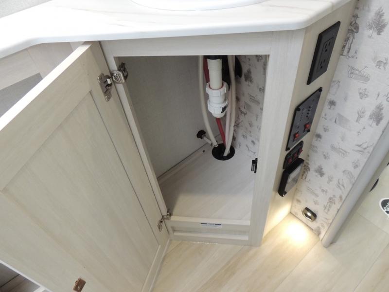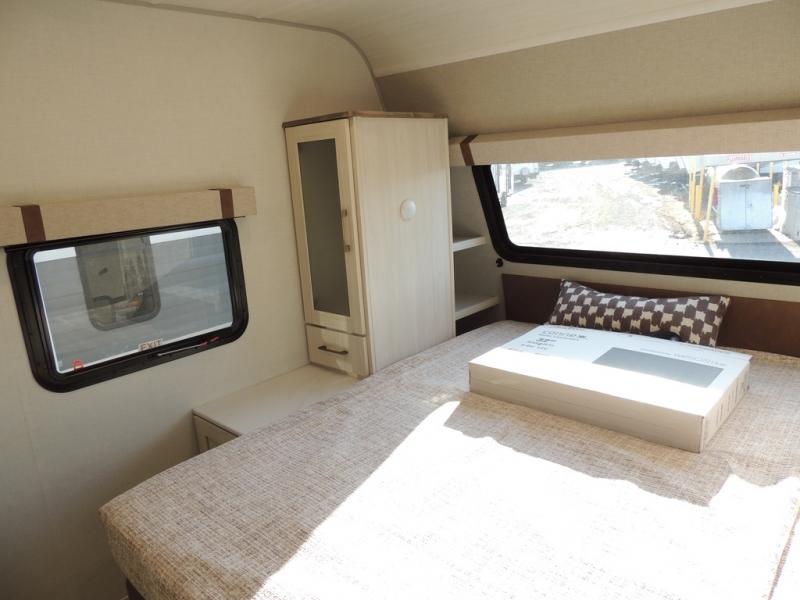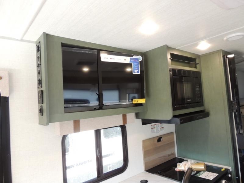 Pack up this very versatile Murphy bed travel trailer and head out to explore! You will love the space saving aspect that a Murphy bed gives you by not increasing the tow length in order to give you a separate bedroom and living space, and you don't even have to make the bed, just fold it up into the wall in the morning! Double-size bunks in the rear corner are perfect for accommodating both children and adults. The kitchen offers everything a cook would need to feed the whole gang and there is even a counter bar area with two stools which will be perfect for breakfast time. There is a booth dinette slide for more dining space, or a place to enjoy a board game or card game when you are inside.