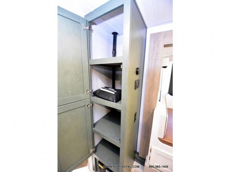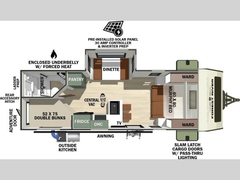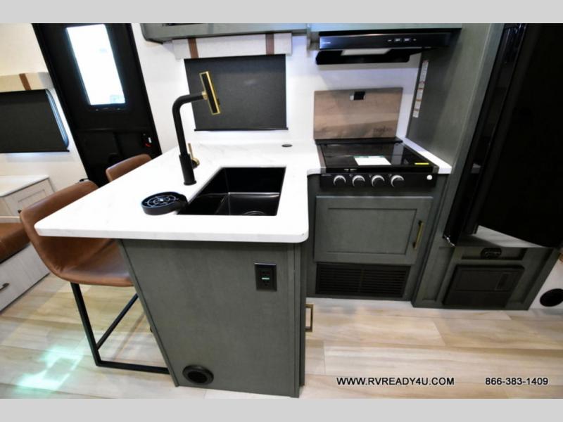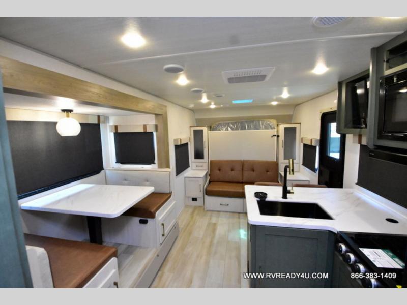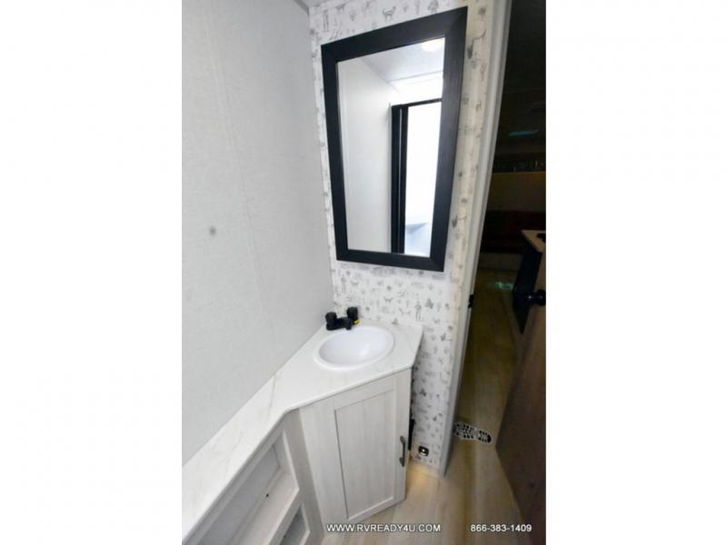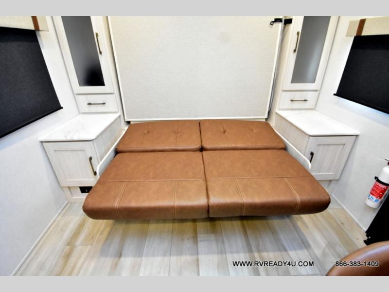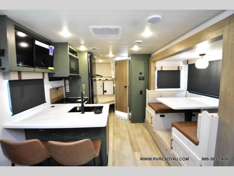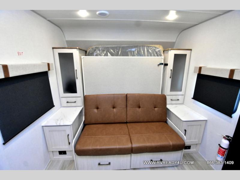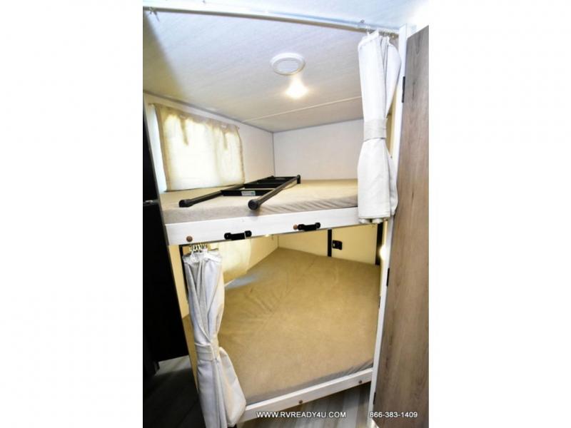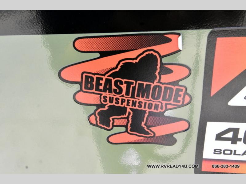 Pack up this very versatile Murphy bed travel trailer and head out to explore! You will love the space saving aspect that a Murphy bed gives you by not increasing the tow length in order to give you a separate bedroom and living space, and you don't even have to make the bed, just fold it up into the wall in the morning! Double-size bunks in the rear corner are perfect for accommodating both children and adults. The kitchen offers everything a cook would need to feed the whole gang and there is even a counter bar area with two stools which will be perfect for breakfast time. There is a booth dinette slide for more dining space, or a place to enjoy a board game or card game when you are inside. When the optional Beast Mode Package on this model is chosen, you'll enjoy a 400-watt solar package, a fresh water filter, a Maxxair roof vent cover, plus a Beast Mode independent suspension for better handling.