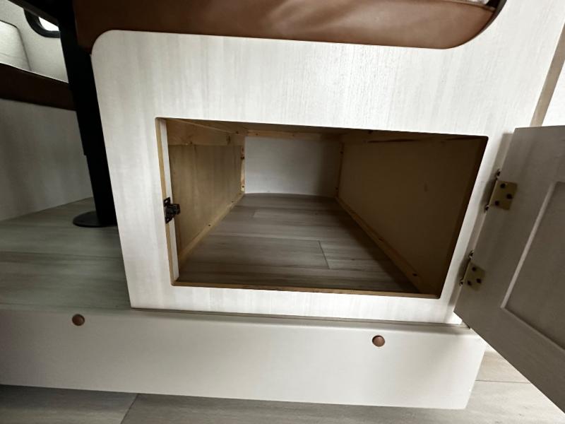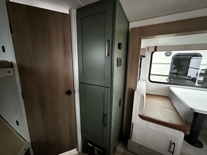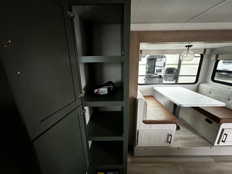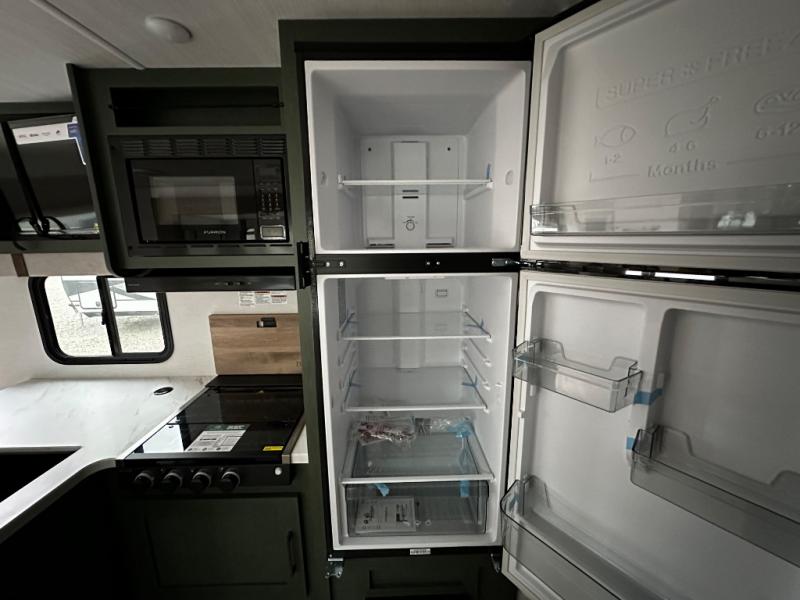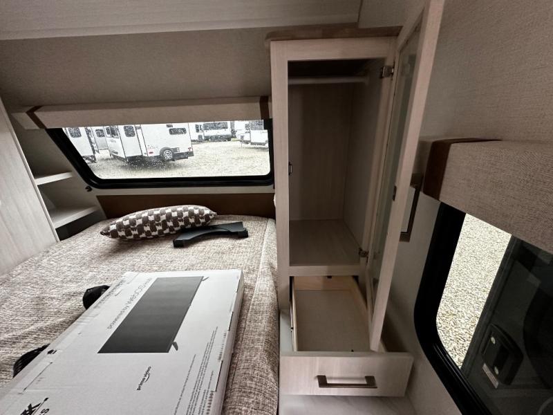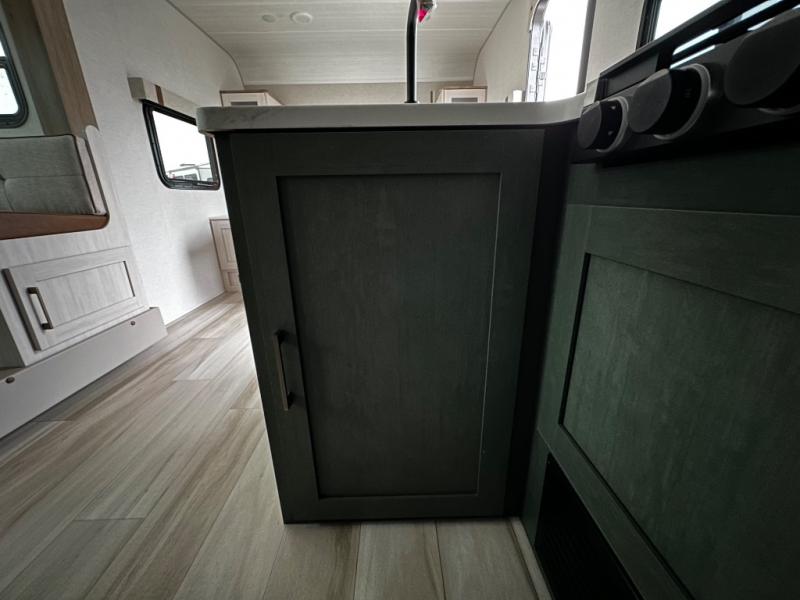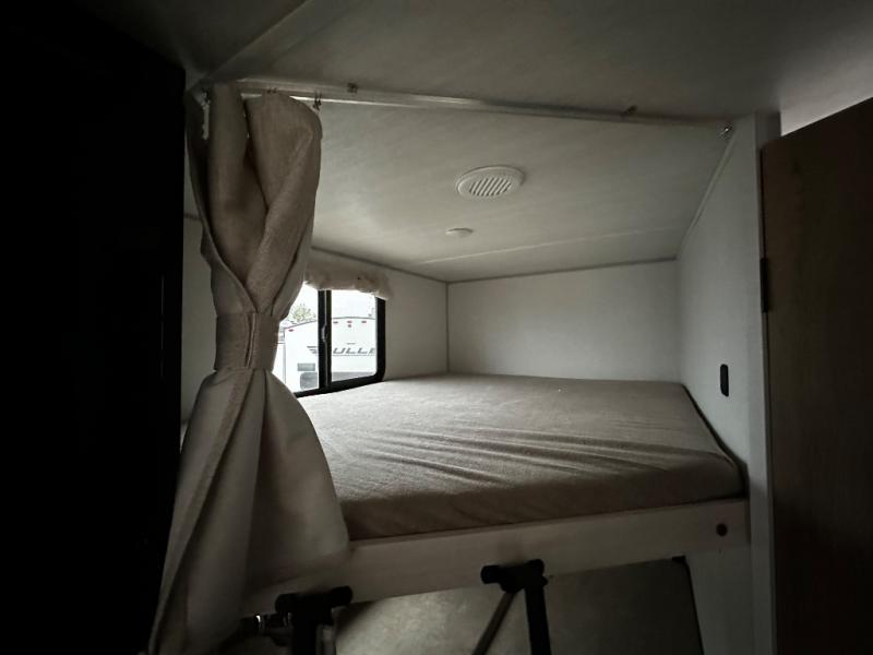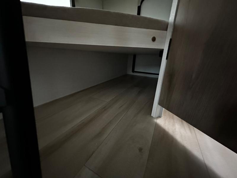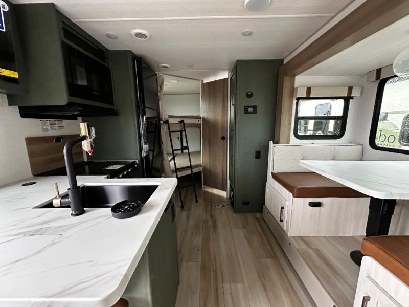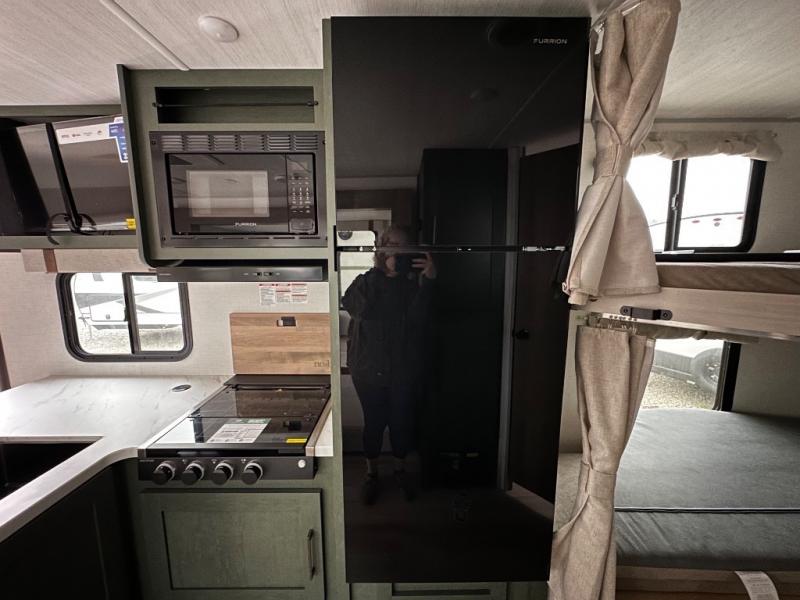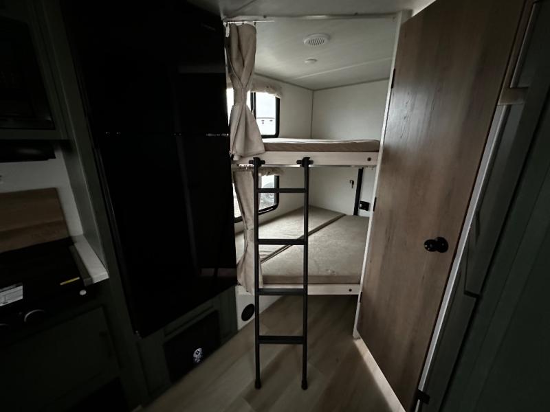 Pack up this very versatile Murphy bed travel trailer and head out to explore! You will love the space saving aspect that a Murphy bed gives you by not increasing the tow length in order to give you a separate bedroom and living space, and you don't even have to make the bed, just fold it up into the wall in the morning! Double-size bunks in the rear corner are perfect for accommodating both children and adults. The kitchen offers everything a cook would need to feed the whole gang and there is even a counter bar area with two stools which will be perfect for breakfast time. There is a booth dinette slide for more dining space, or a place to enjoy a board game or card game when you are inside. When the optional Beast Mode Package on this model is chosen, you'll enjoy a 400-watt solar package, a fresh water filter, a Maxxair roof vent cover, plus a Beast Mode independent suspension for better handling.