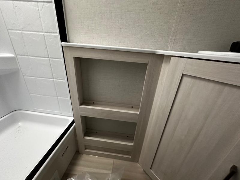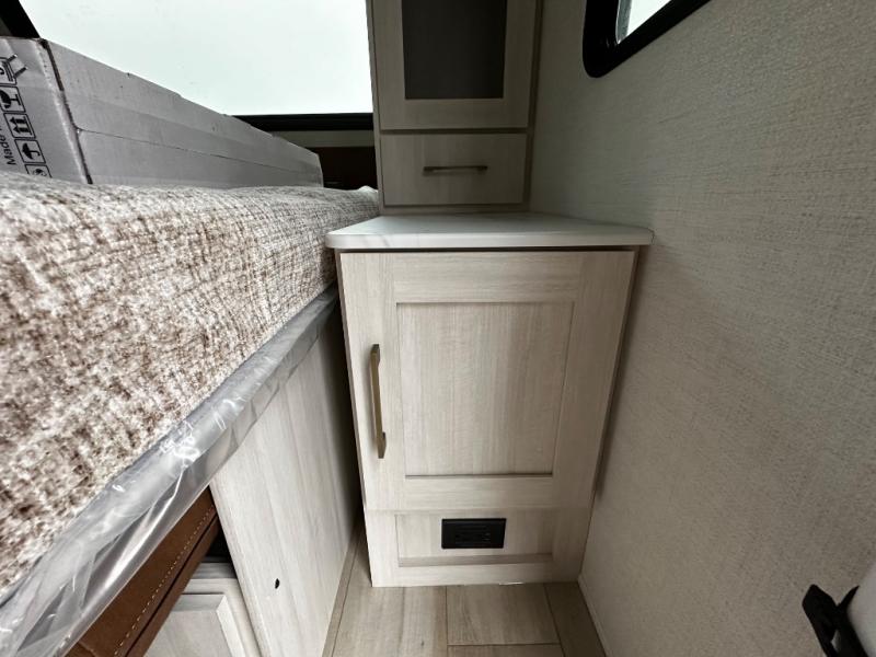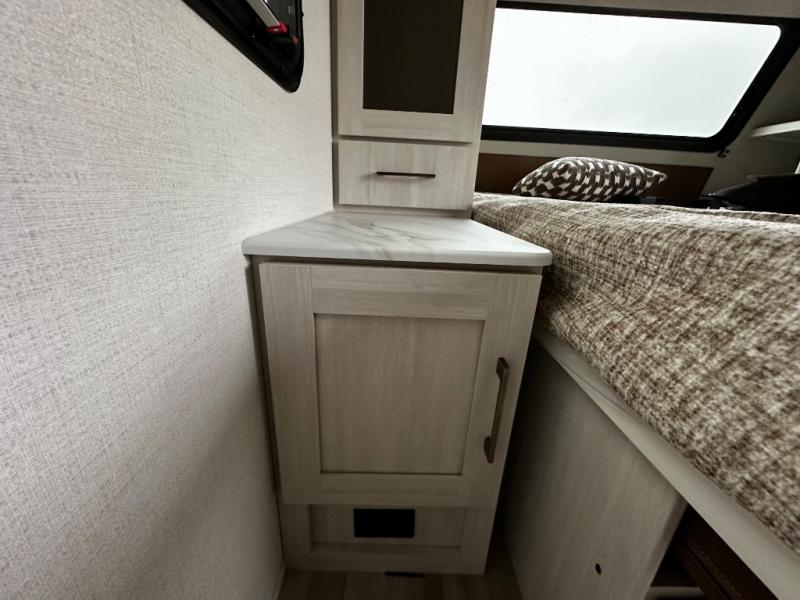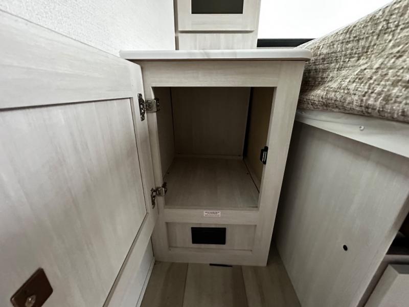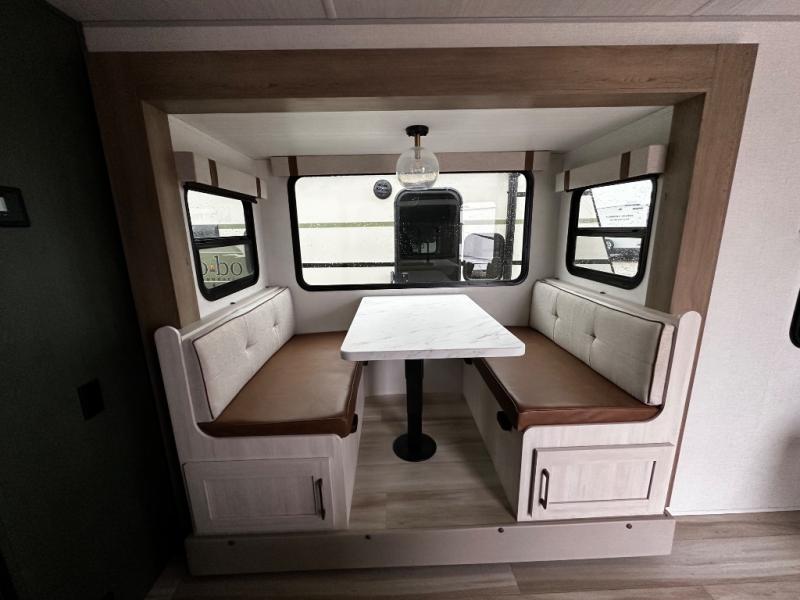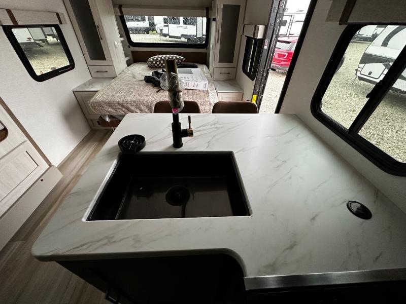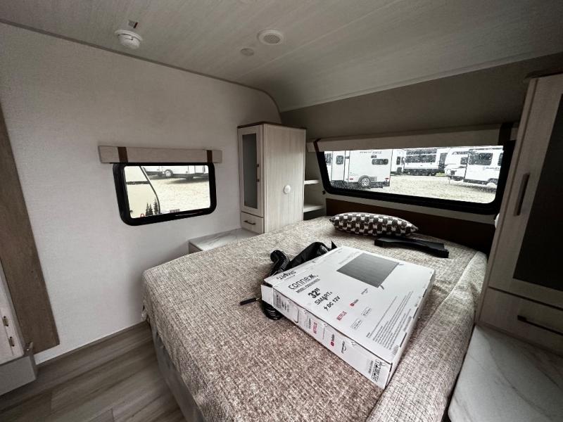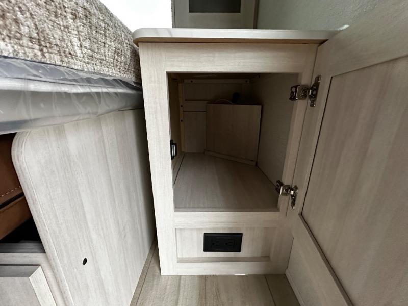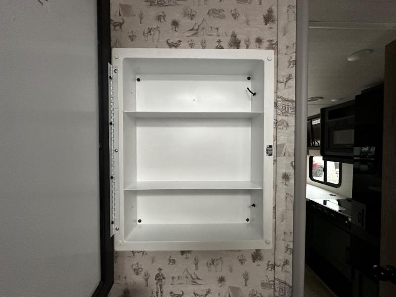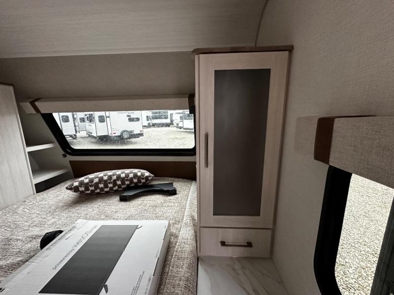 Pack up this very versatile Murphy bed travel trailer and head out to explore! You will love the space saving aspect that a Murphy bed gives you by not increasing the tow length in order to give you a separate bedroom and living space, and you don't even have to make the bed, just fold it up into the wall in the morning! Double-size bunks in the rear corner are perfect for accommodating both children and adults. The kitchen offers everything a cook would need to feed the whole gang and there is even a counter bar area with two stools which will be perfect for breakfast time. There is a booth dinette slide for more dining space, or a place to enjoy a board game or card game when you are inside. When the optional Beast Mode Package on this model is chosen, you'll enjoy a 400-watt solar package, a fresh water filter, a Maxxair roof vent cover, plus a Beast Mode independent suspension for better handling.