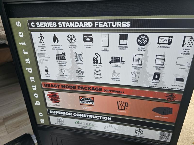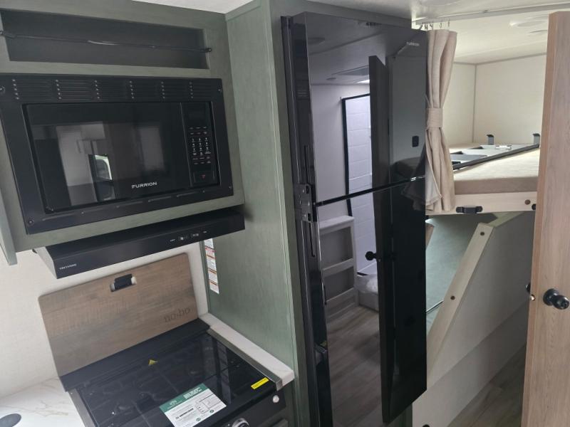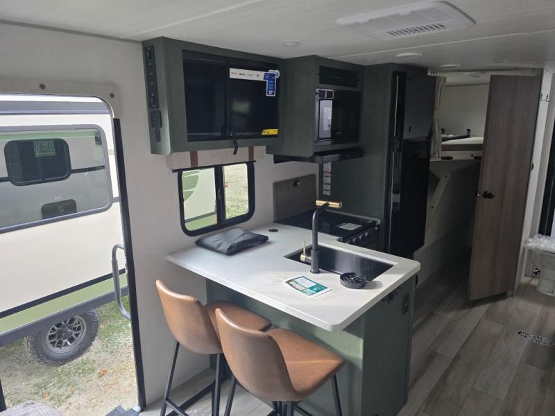 Pack up this very versatile Murphy bed travel trailer and head out to explore! You will love the space saving aspect that a Murphy bed gives you by not increasing the tow length in order to give you a separate bedroom and living space, and you don't even have to make the bed, just fold it up into the wall in the morning! Double-size bunks in the rear corner are perfect for accommodating both children and adults. The kitchen offers everything a cook would need to feed the whole gang and there is even a counter bar area with two stools which will be perfect for breakfast time. There is a booth dinette slide for more dining space, or a place to enjoy a board game or card game when you are inside. When the optional Beast Mode Package on this model is chosen, you'll enjoy a 400-watt solar package, a fresh water filter, a Maxxair roof vent cover, plus a Beast Mode independent suspension for better handling.