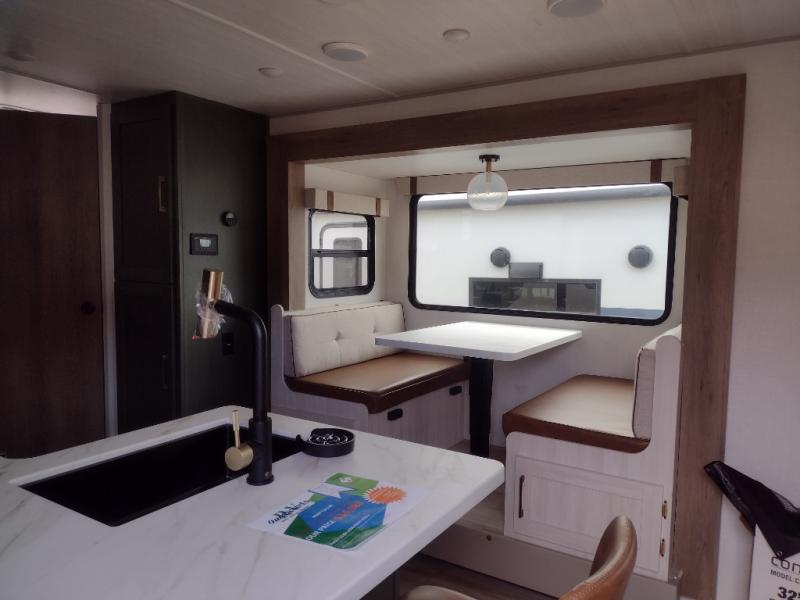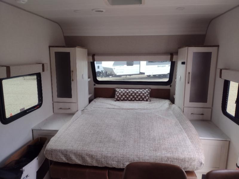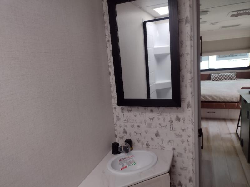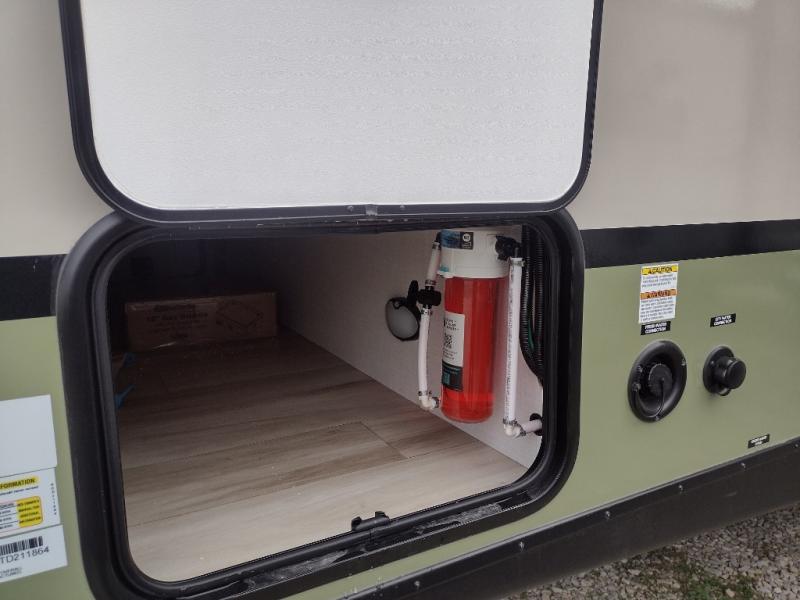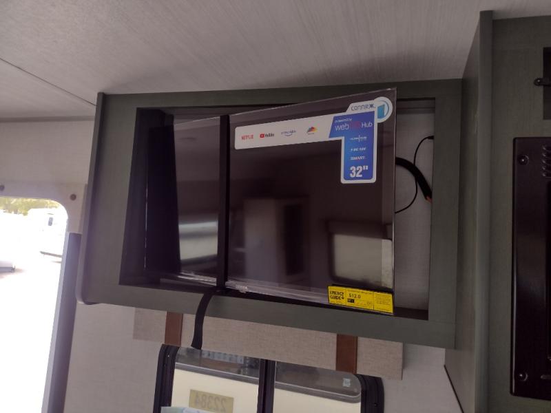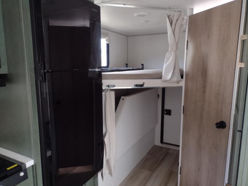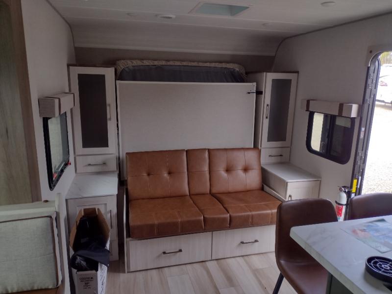 Pack up this very versatile Murphy bed travel trailer and head out to explore! You will love the space saving aspect that a Murphy bed gives you by not increasing the tow length in order to give you a separate bedroom and living space, and you don't even have to make the bed, just fold it up into the wall in the morning! Double-size bunks in the rear corner are perfect for accommodating both children and adults. The kitchen offers everything a cook would need to feed the whole gang and there is even a counter bar area with two stools which will be perfect for breakfast time. There is a booth dinette slide for more dining space, or a place to enjoy a board game or card game when you are inside. When the optional Beast Mode Package on this model is chosen, you'll enjoy a 400-watt solar package, a fresh water filter, a Maxxair roof vent cover, plus a Beast Mode independent suspension for better handling.