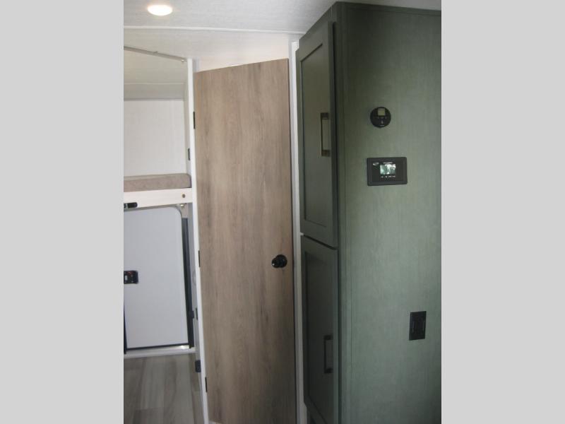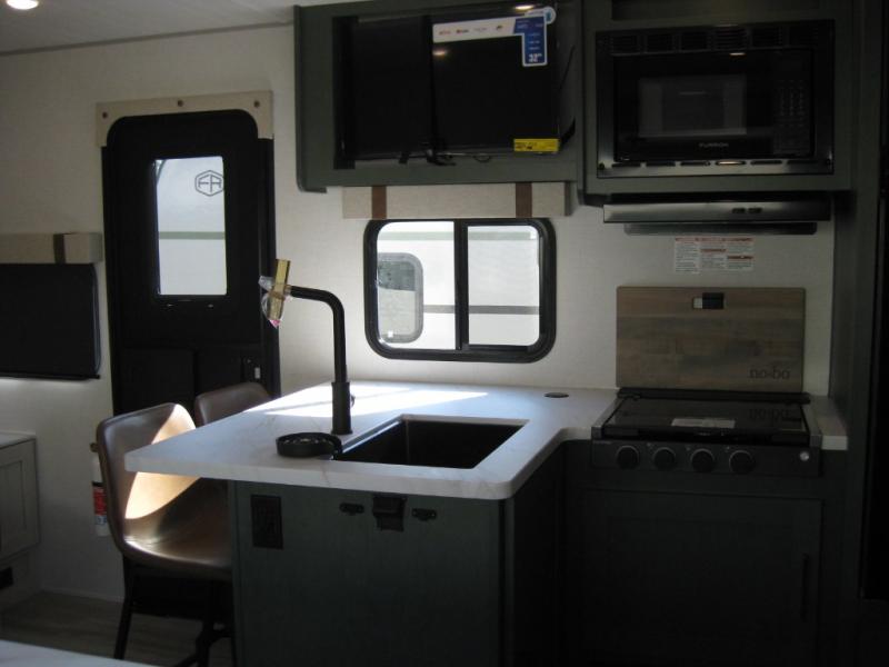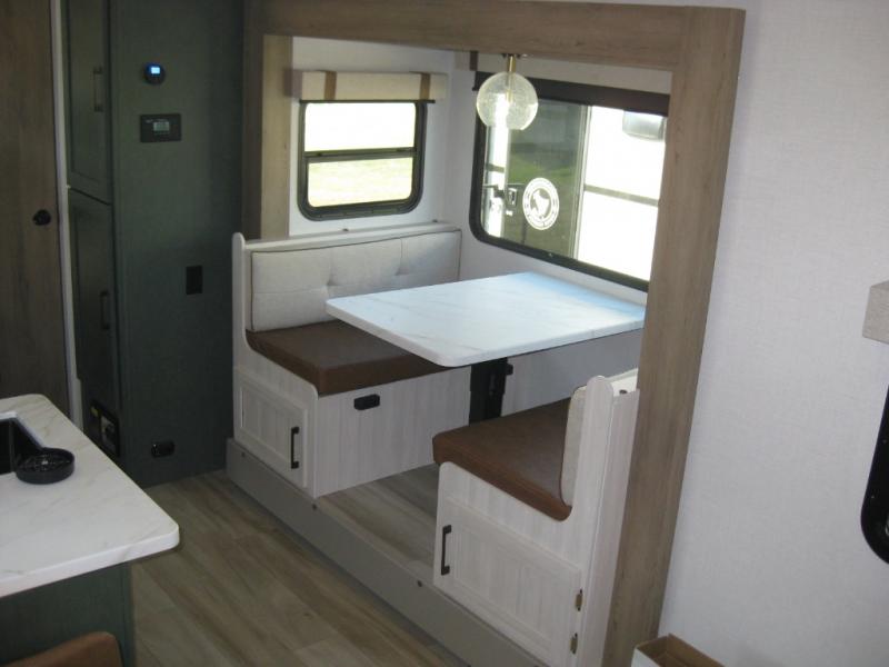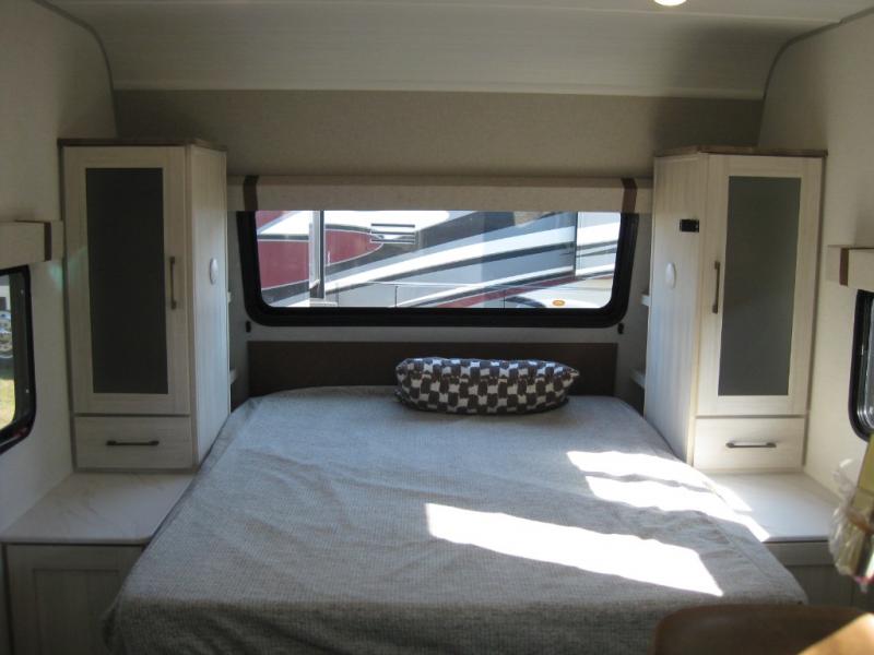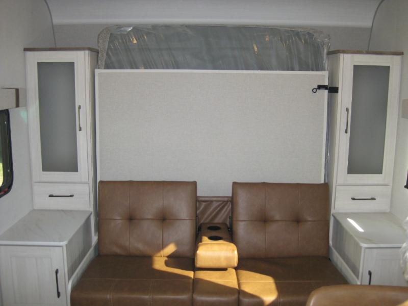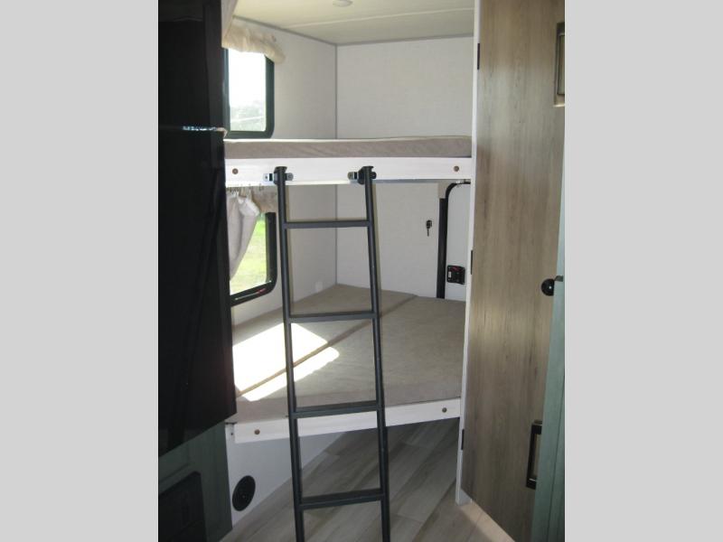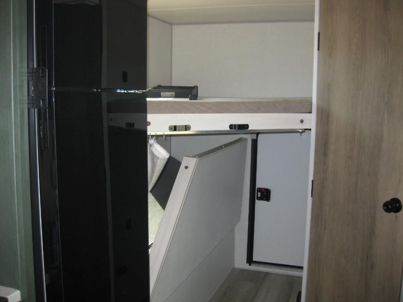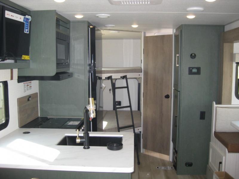 Pack up this very versatile Murphy bed travel trailer and head out to explore! You will love the space saving aspect that a Murphy bed gives you by not increasing the tow length in order to give you a separate bedroom and living space, and you don't even have to make the bed, just fold it up into the wall in the morning! Double-size bunks in the rear corner are perfect for accommodating both children and adults. The kitchen offers everything a cook would need to feed the whole gang and there is even a counter bar area with two stools which will be perfect for breakfast time. There is a booth dinette slide for more dining space, or a place to enjoy a board game or card game when you are inside. When the optional Beast Mode Package on this model is chosen, you'll enjoy a 400-watt solar package, a fresh water filter, a Maxxair roof vent cover, plus a Beast Mode independent suspension for better handling.