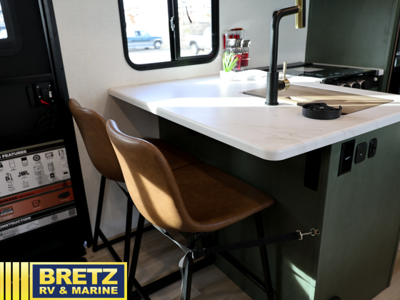 Pack up this very versatile Murphy bed travel trailer and head out to explore! You will love the space saving aspect that a Murphy bed gives you by not increasing the tow length in order to give you a separate bedroom and living space, and you don't even have to make the bed, just fold it up into the wall in the morning! Double-size bunks in the rear corner are perfect for accommodating both children and adults. The kitchen offers everything a cook would need to feed the whole gang and there is even a counter bar area with two stools which will be perfect for breakfast time. There is a booth dinette slide for more dining space, or a place to enjoy a board game or card game when you are inside. When the optional Beast Mode Package on this model is chosen, you'll enjoy a 400-watt solar package, a fresh water filter, a Maxxair roof vent cover, plus a Beast Mode independent suspension for better handling.
