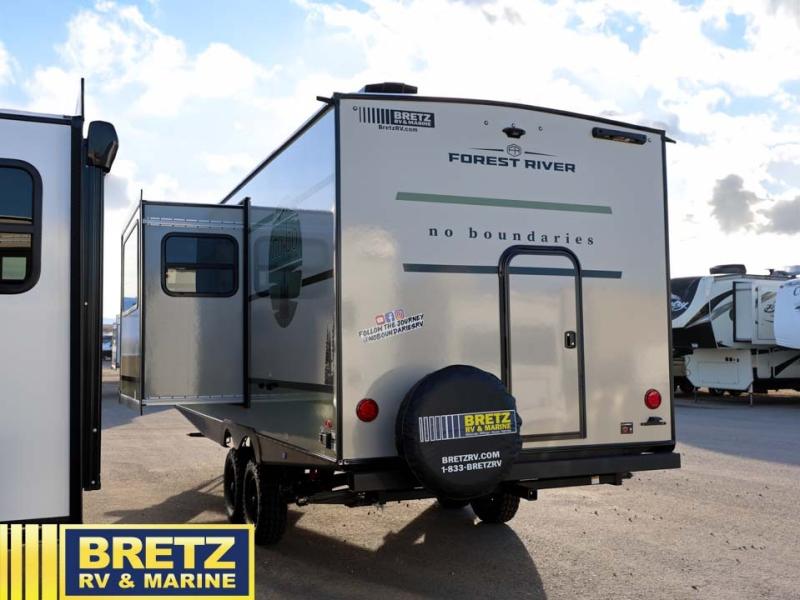 The Forest River No Boundaries travel trailers are exceptionally lightweight and can be towed by 4-cylinder and 6-cylinder tow vehicles! They are perfect for the outdoor enthusiast, and you'll find plenty of storage for your camp gear, personal belongings, and more! Each model is constructed with a welded aluminum structure, Azdel composite panels and a fully walkable PVC roof for added durability. There are a wide variety of floorplans to choose from, including 10 Series (under 2,500 lbs.), 18 and 19 Series (under 5,000 lbs.), plus 20 Series (under 5,500 lbs.). There are no boundaries when camping in these travel trailers!