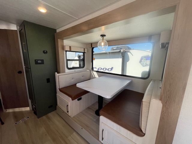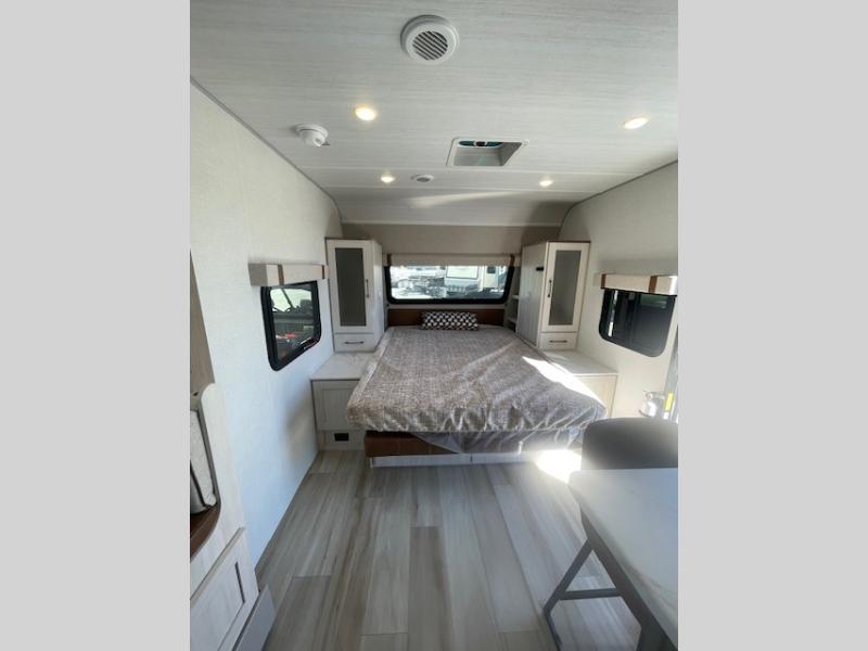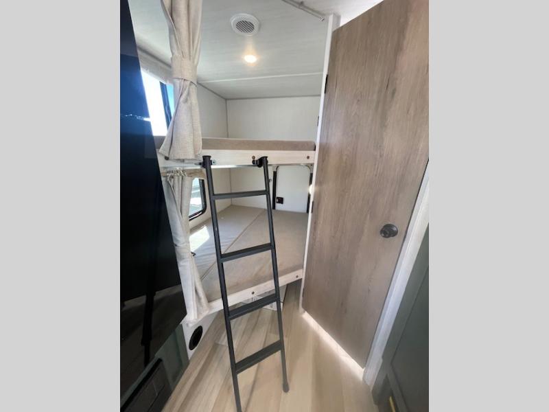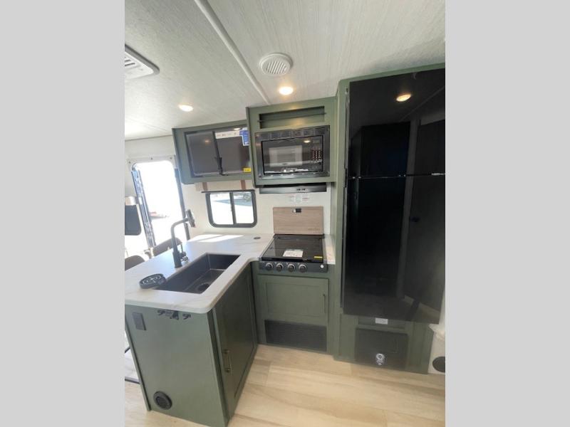 Pack up this very versatile Murphy bed travel trailer and head out to explore! You will love the space saving aspect that a Murphy bed gives you by not increasing the tow length in order to give you a separate bedroom and living space, and you don't even have to make the bed, just fold it up into the wall in the morning! Double-size bunks in the rear corner are perfect for accommodating both children and adults. The kitchen offers everything a cook would need to feed the whole gang and there is even a counter bar area with two stools which will be perfect for breakfast time. There is a booth dinette slide for more dining space, or a place to enjoy a board game or card game when you are inside. When the optional Beast Mode Package on this model is chosen, you'll enjoy a 400-watt solar package, a fresh water filter, a Maxxair roof vent cover, plus a Beast Mode independent suspension for better handling.