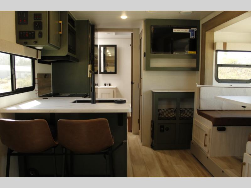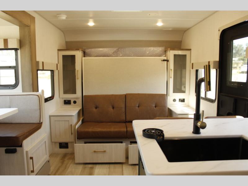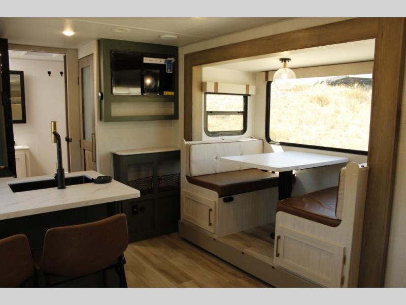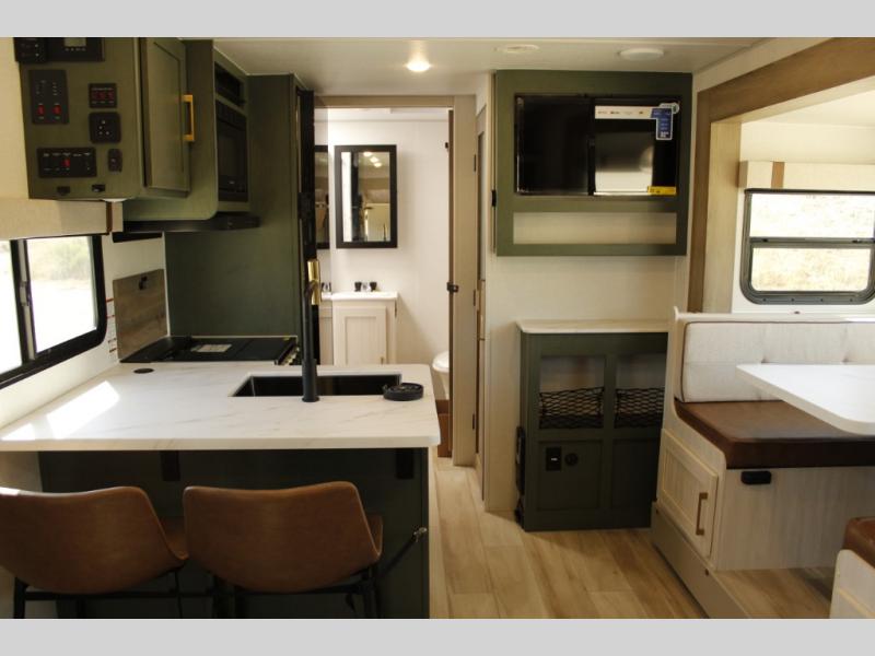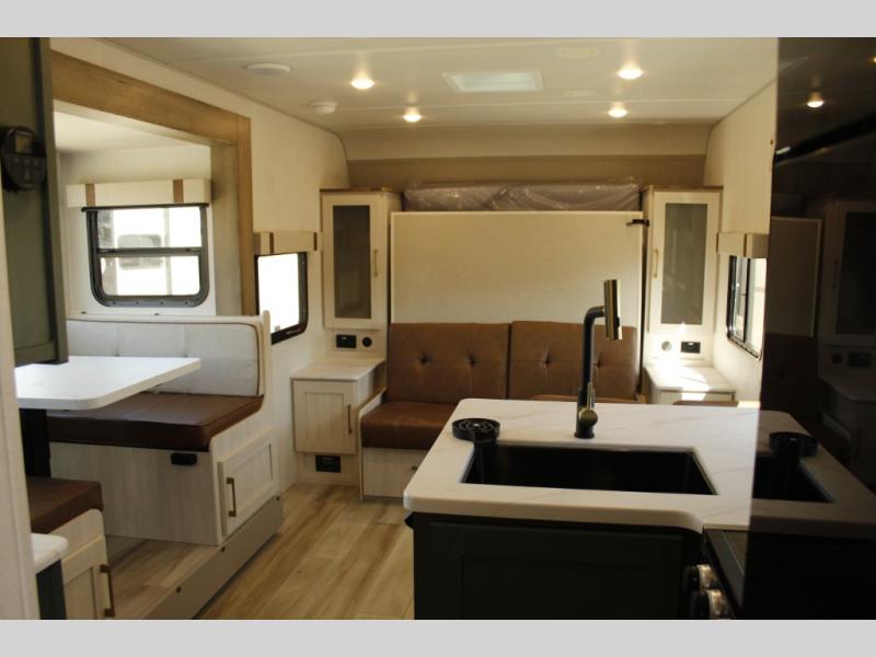 You won't be bound by boring travels any longer with this No Boundaries travel trailer! You can go just about anywhere with this rugged trailer, and you will find many features that will make your life easier while you're away. The entertainment center will give you something to do on a rainy day, and the kitchen will provide you with the tools needed to whip up a meal whenever you're hungry. The rear bathroom has a linen closet for your towels, and the dinette slide adds space for you to lounge in this trailer. Up front, you'll be able to rest on a sofa during the day, and you can reposition this sofa to showcase a Murphy bed at night for sleeping. This model also includes a walk-in pantry for snacks, dry goods, and more!