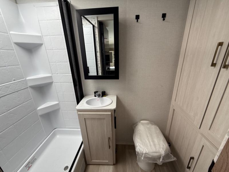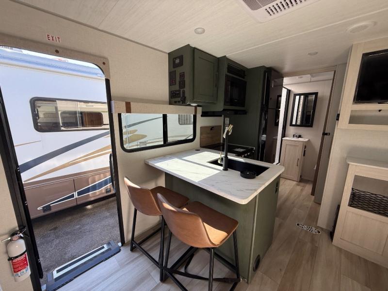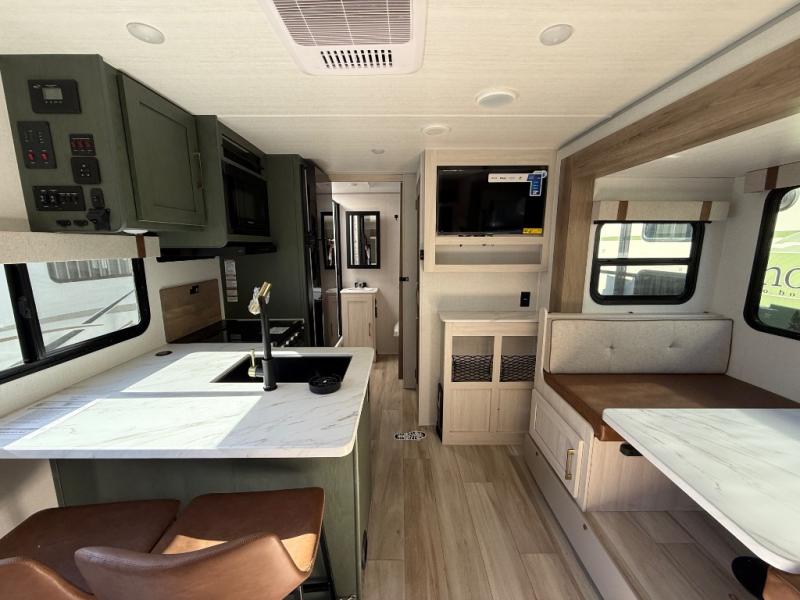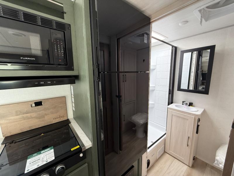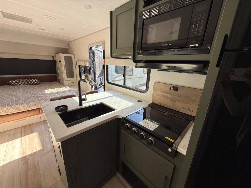 You won't be bound by boring travels any longer with this No Boundaries travel trailer! You can go just about anywhere with this rugged trailer, and you will find many features that will make your life easier while you're away. The entertainment center will give you something to do on a rainy day, and the kitchen will provide you with the tools needed to whip up a meal whenever you're hungry. The rear bathroom has a linen closet for your towels, and the dinette slide adds space for you to lounge in this trailer. Up front, you'll be able to rest on a sofa during the day, and you can reposition this sofa to showcase a Murphy bed at night for sleeping. This model also includes a walk-in pantry for snacks, dry goods, and more! When the optional Beast Mode Package on this model is chosen, you'll enjoy a 400-watt solar package, a fresh water filter, a Maxxair roof vent cover, plus a Beast Mode independent suspension for better handling.