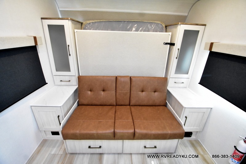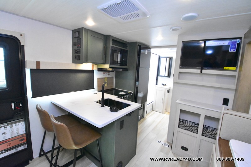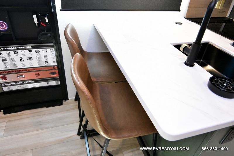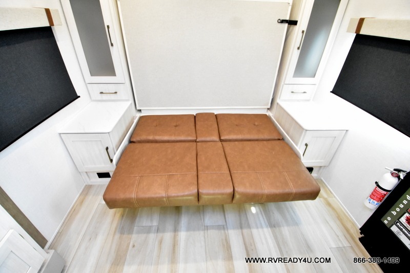 You won't be bound by boring travels any longer with this No Boundaries travel trailer! You can go just about anywhere with this rugged trailer, and you will find many features that will make your life easier while you're away. The entertainment center will give you something to do on a rainy day, and the kitchen will provide you with the tools needed to whip up a meal whenever you're hungry. The rear bathroom has a linen closet for your towels, and the dinette slide adds space for you to lounge in this trailer. Up front, you'll be able to rest on a sofa during the day, and you can reposition this sofa to showcase a Murphy bed at night for sleeping. This model also includes a walk-in pantry for snacks, dry goods, and more! When the optional Beast Mode Package on this model is chosen, you'll enjoy a 400-watt solar package, a fresh water filter, a Maxxair roof vent cover, plus a Beast Mode independent suspension for better handling.