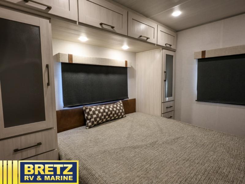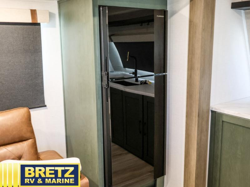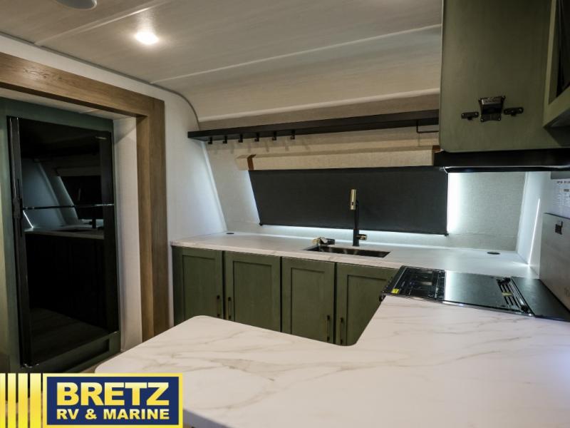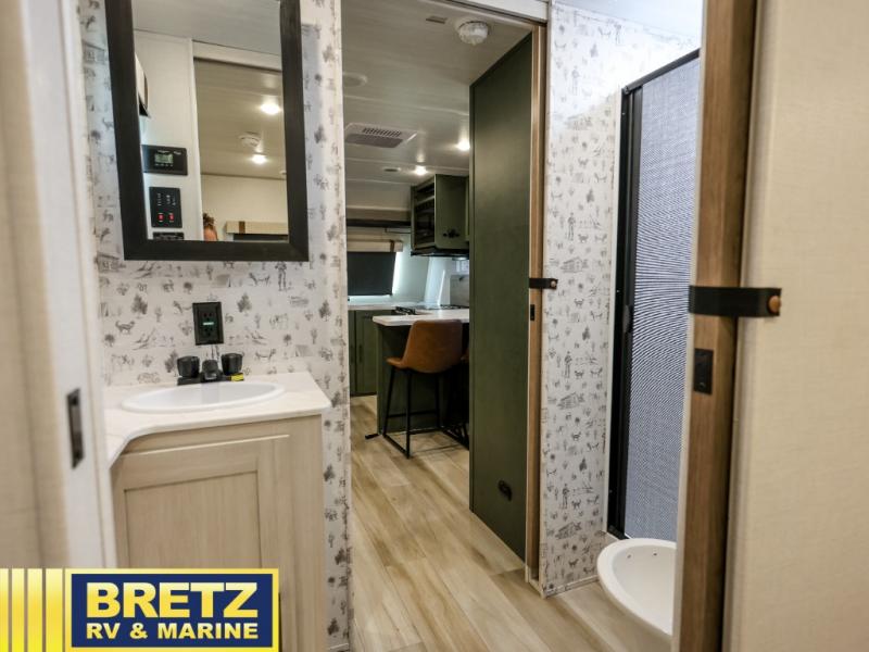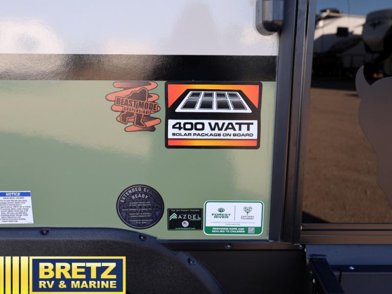 This travel trailer has everything you need for a fun camping trip at your favorite camping spots! The chef will have an easy time preparing meals in the full equipped front kitchen, and will enjoy the company sitting at the breakfast bar on one of the two bar stools. You can read the newspaper on the tri-fold sofa or replace it for the optional theater seating. The walk-through bathroom has everything you need to freshen up, and it leads directly in to the rear private bedroom which has a queen bed, a wardrobe, and a large window to let in some natural lighting. You also have an outside kitchen, a 19' awning, and an enclosed underbelly with forced heat. When the optional Beast Mode Package on this model is chosen, you'll enjoy a 400-watt solar package, a fresh water filter, a Maxxair roof vent cover, plus a Beast Mode independent suspension for better handling.