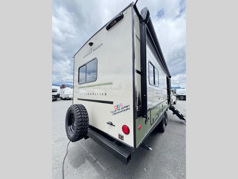 The Forest River No Boundaries travel trailers are exceptionally lightweight and can be towed by 4-cylinder and 6-cylinder tow vehicles! They are perfect for the outdoor enthusiast, and you'll find plenty of storage for your camp gear, personal belongings, and more! Each model is constructed with a welded aluminum structure, Azdel composite panels and a fully walkable PVC roof for added durability. There are a wide variety of floorplans to choose from, including 10 Series (under 2,500 lbs.), 18 and 19 Series (under 5,000 lbs.), plus 20 Series (under 5,500 lbs.). There's no boundaries when camping in these travel trailers!
