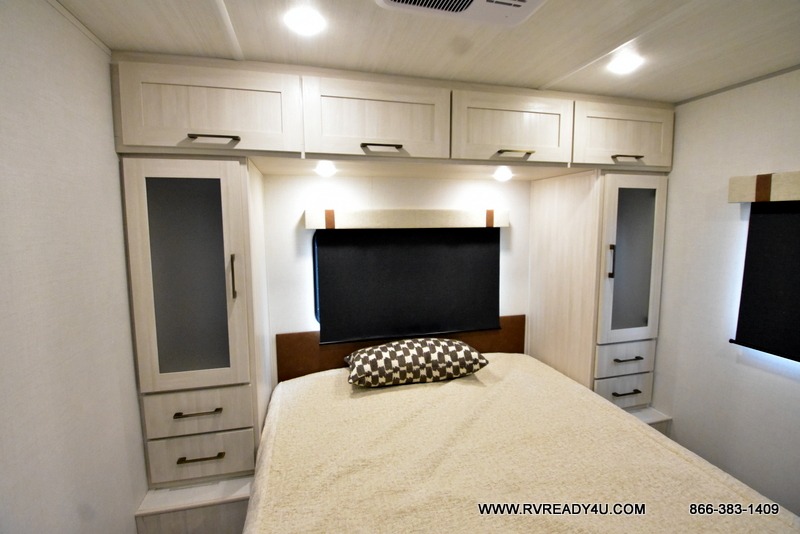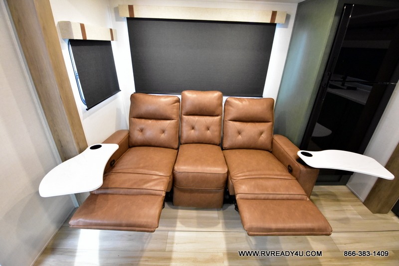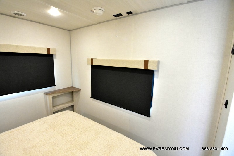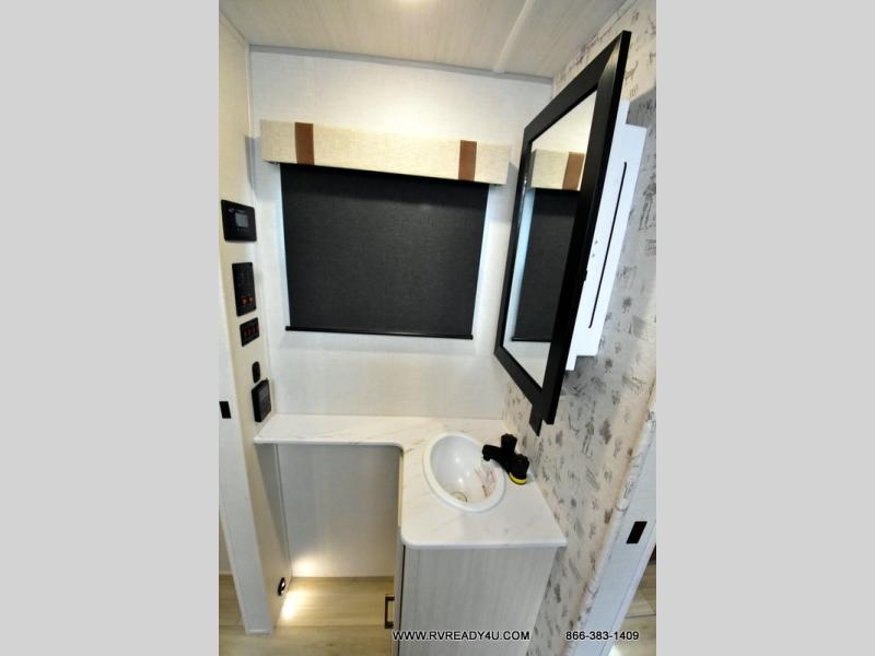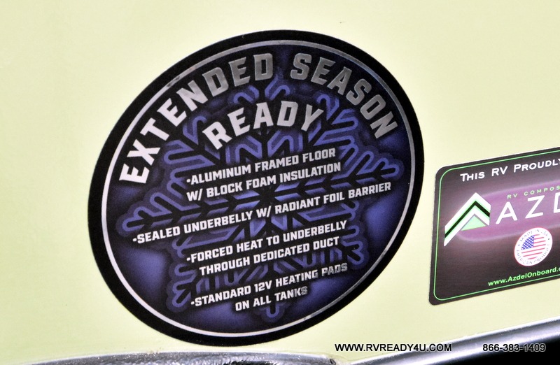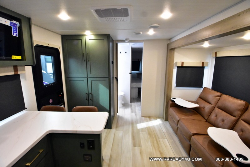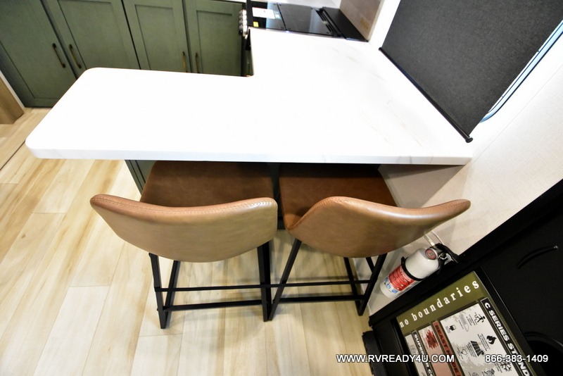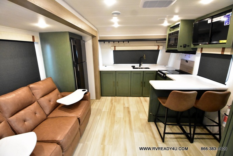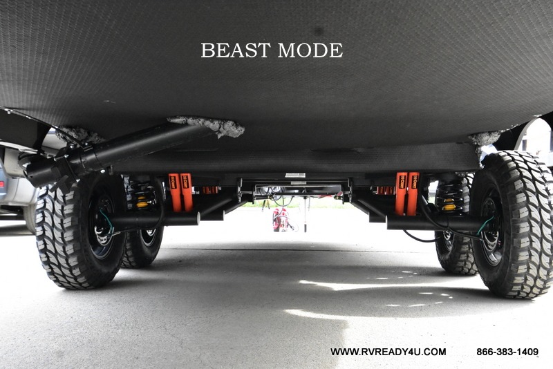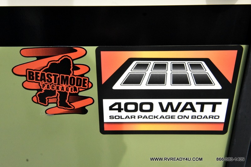 This travel trailer has everything you need for a fun camping trip at your favorite camping spots! The chef will have an easy time preparing meals in the full equipped front kitchen, and will enjoy the company sitting at the breakfast bar on one of the two bar stools. You can read the newspaper on the tri-fold sofa or replace it for the optional theater seating. The walk-through bathroom has everything you need to freshen up, and it leads directly in to the rear private bedroom which has a queen bed, a wardrobe, and a large window to let in some natural lighting. You also have an outside kitchen, a 19' awning, and an enclosed underbelly with forced heat. When the optional Beast Mode Package on this model is chosen, you'll enjoy a 400-watt solar package, a fresh water filter, a Maxxair roof vent cover, plus a Beast Mode independent suspension for better handling.