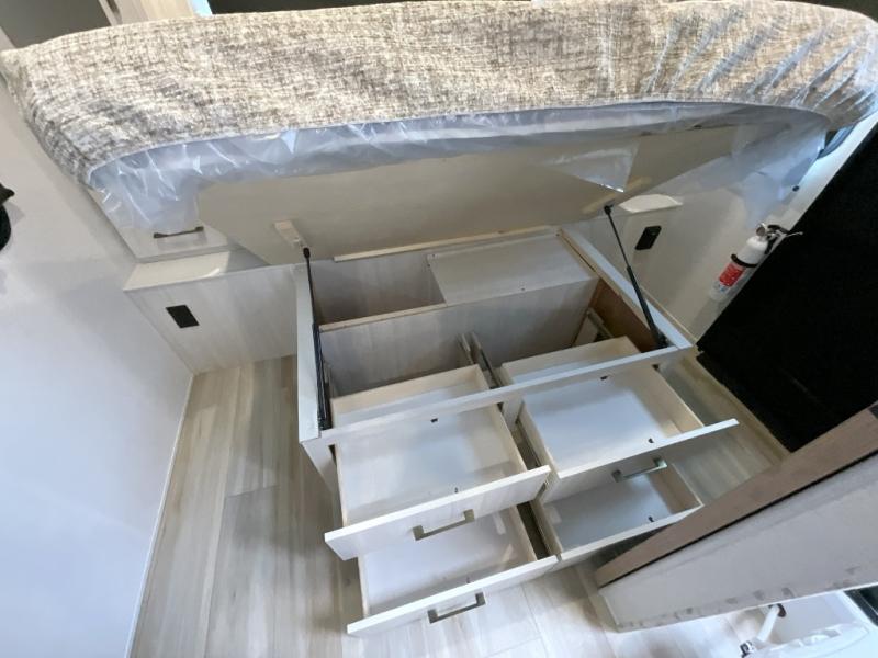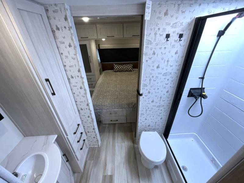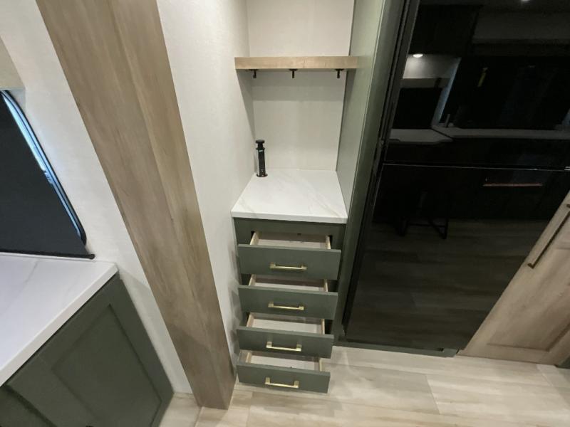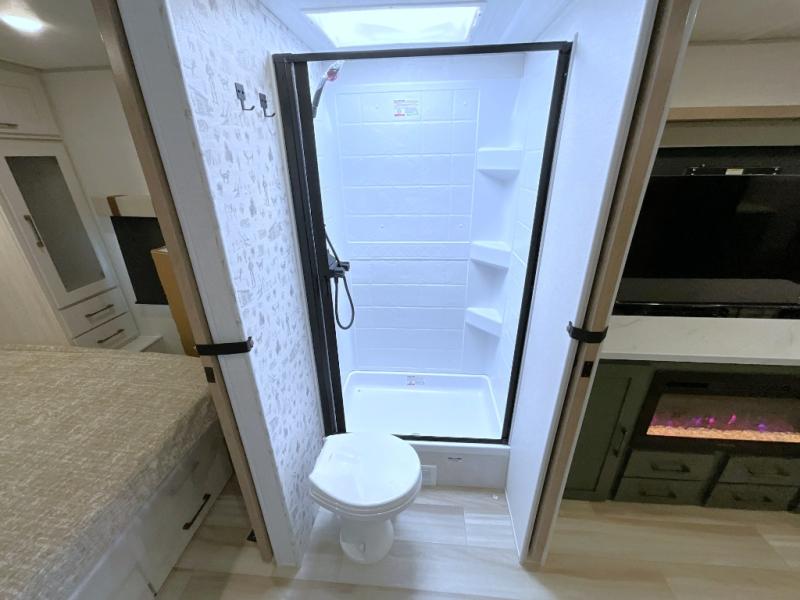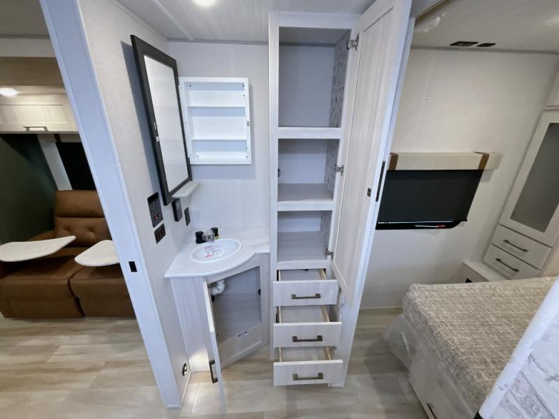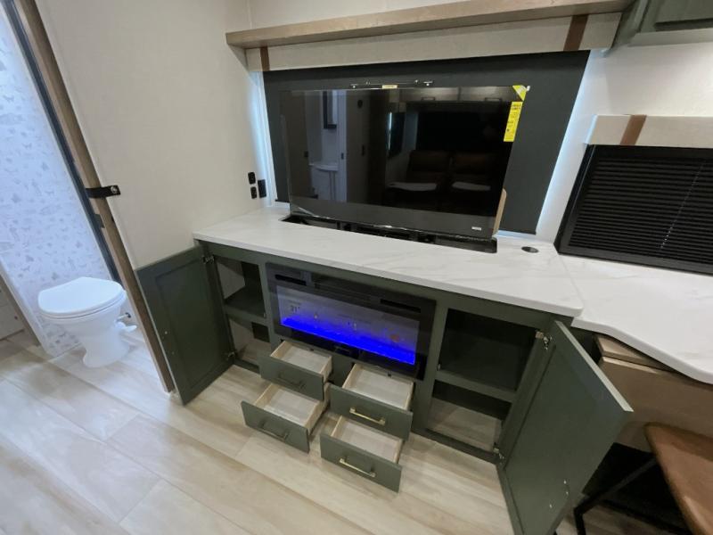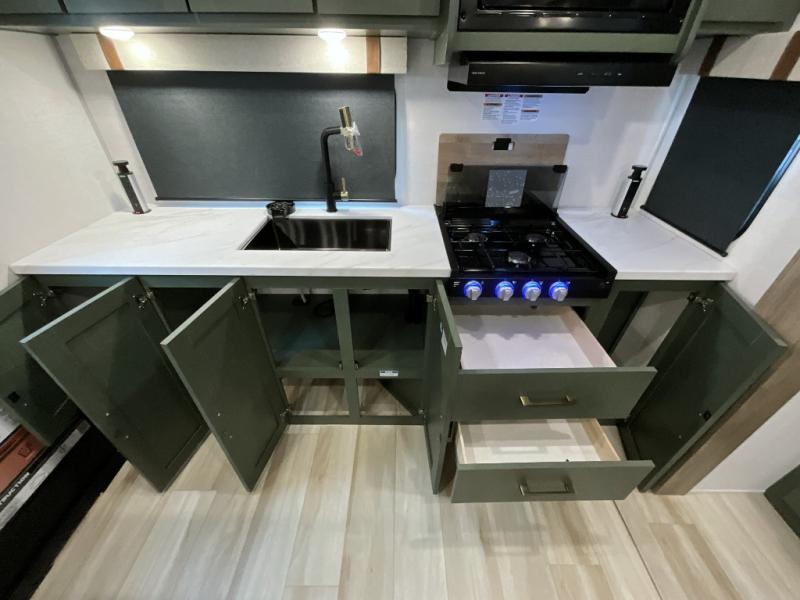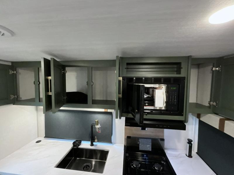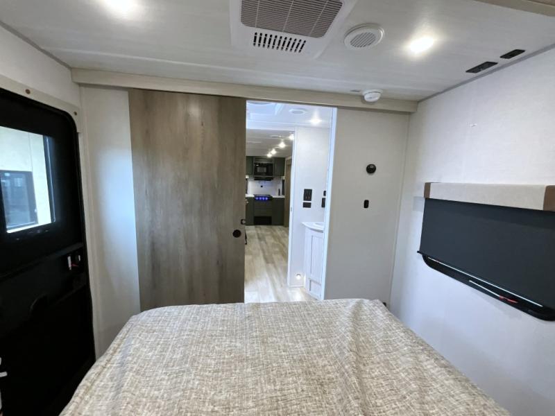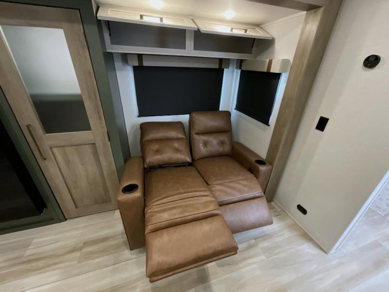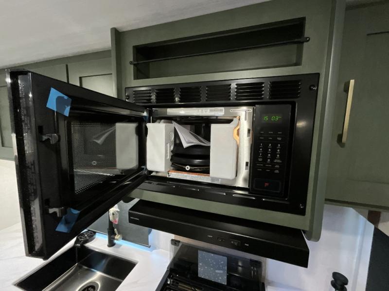 Make each camping trip one to remember in this dual entry, rear kitchen travel trailer! If you enter in through the front master bedroom, you'll find a queen bed and dual wardrobes for your things, plus a private entrance into the walk-thru bath. This will lead you to the main living area that is made spacious thanks to the large slide out. There is theater seating here, along with a refrigerator, pantry, and hutch with a shelf so everything has its place. Once the chef of your group has made dinner in the rear kitchen, you can dine at the Bar 2 Table pull-out dinette, which is conveniently located in front of the flip-up window. Just outside this window, you'll find the Trailgate outdoor bar, giving you a food truck atmosphere where you can visit with those sitting at the dinette table inside. When the optional Beast Mode Package on this model is chosen, you'll enjoy a 400-watt solar package, a fresh water filter, a Maxxair roof vent cover, plus a Beast Mode independent suspension for better handling.