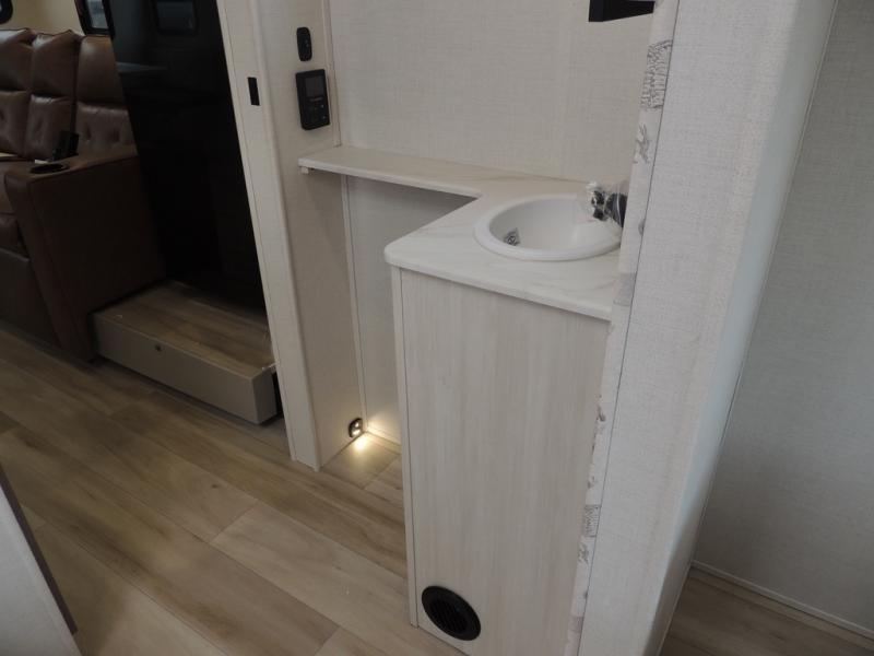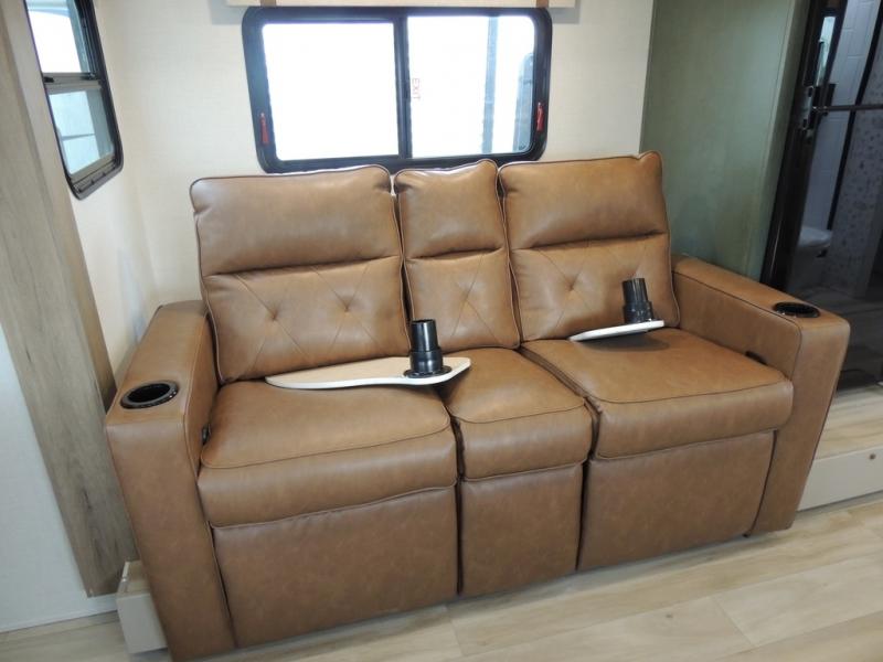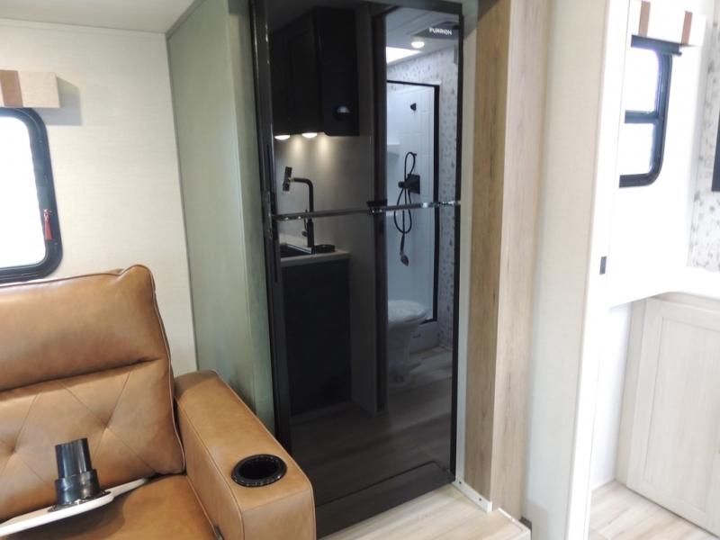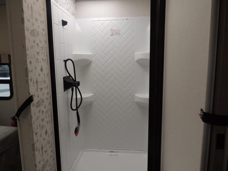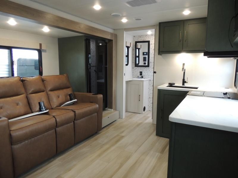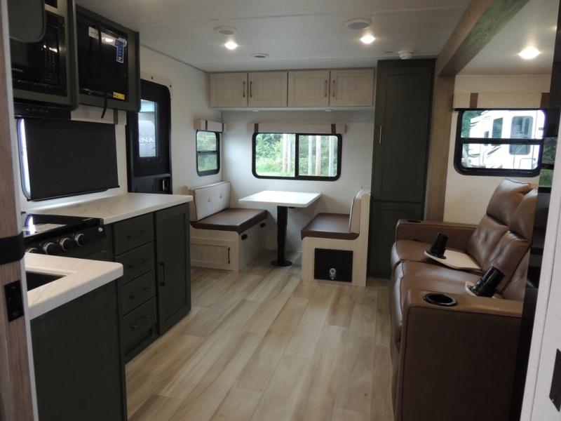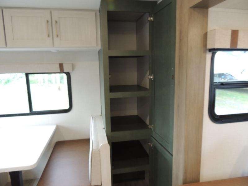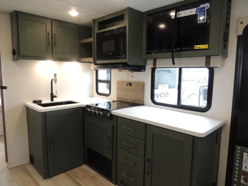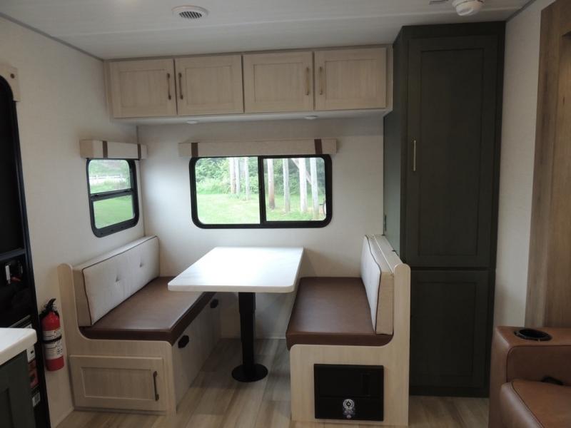 It will be so easy to enjoy camping trips in this No Boundaries travel trailer! The front master bedroom includes one of the dual entry doors so you can slip out early for a morning run without waking anyone else up. When you return, you can freshen up in the walk-thru bath, then head to the kitchen to make breakfast. There is also an outside kitchen so you can cook in the fresh mountain air. There is a booth dinette inside where you can dine at, play games, and even let a guest sleep over, and the tri-fold sofa slide provides more space and comfort!