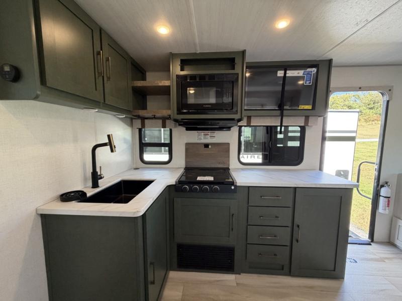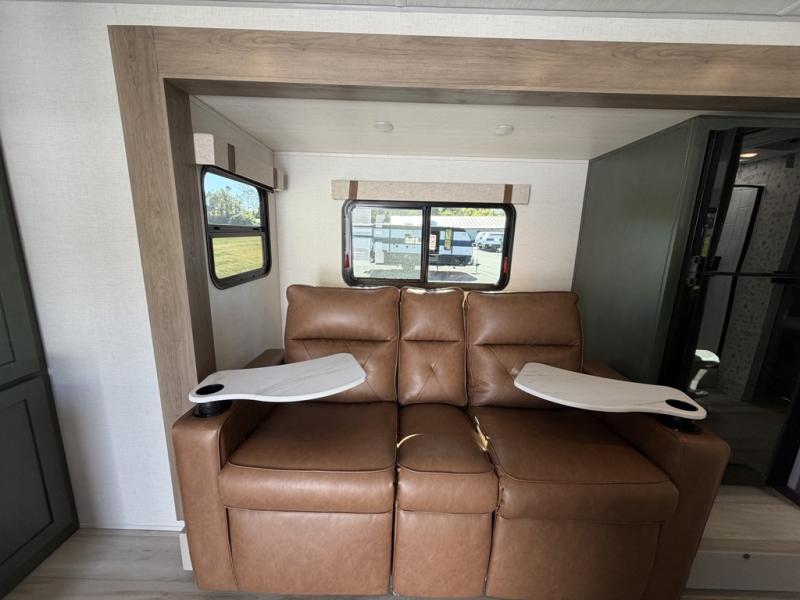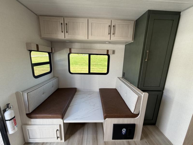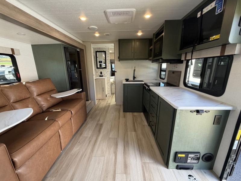 It will be so easy to enjoy camping trips in this No Boundaries travel trailer! The front master bedroom includes one of the dual entry doors so you can slip out early for a morning run without waking anyone else up. When you return, you can freshen up in the walk-thru bath, then head to the kitchen to make breakfast. There is also an outside kitchen so you can cook in the fresh mountain air. There is a booth dinette inside where you can dine at, play games, and even let a guest sleep over, and the tri-fold sofa slide provides more space and comfort! When the optional Beast Mode Package on this model is chosen, you'll enjoy a 400-watt solar package, a fresh water filter, a Maxxair roof vent cover, plus a Beast Mode independent suspension for better handling.