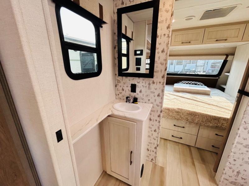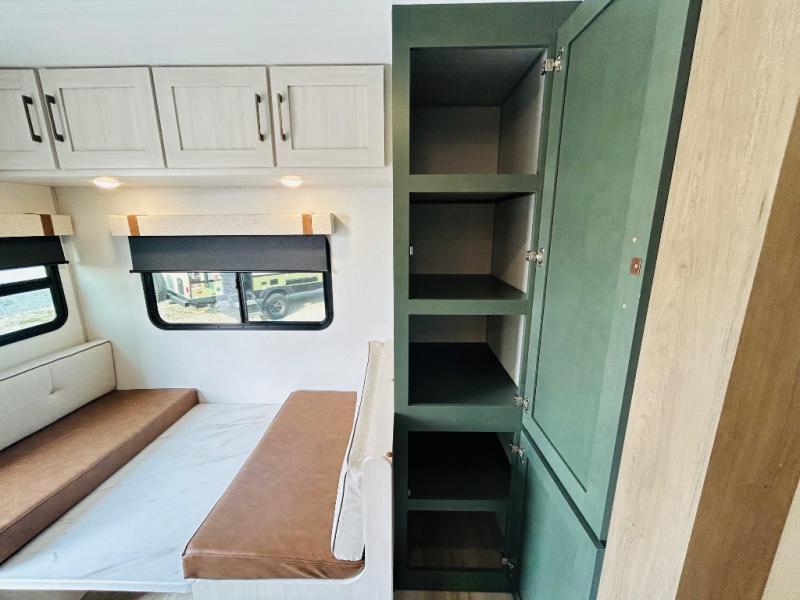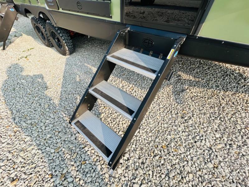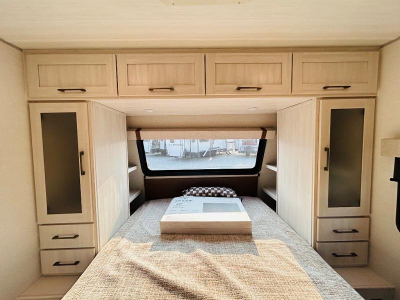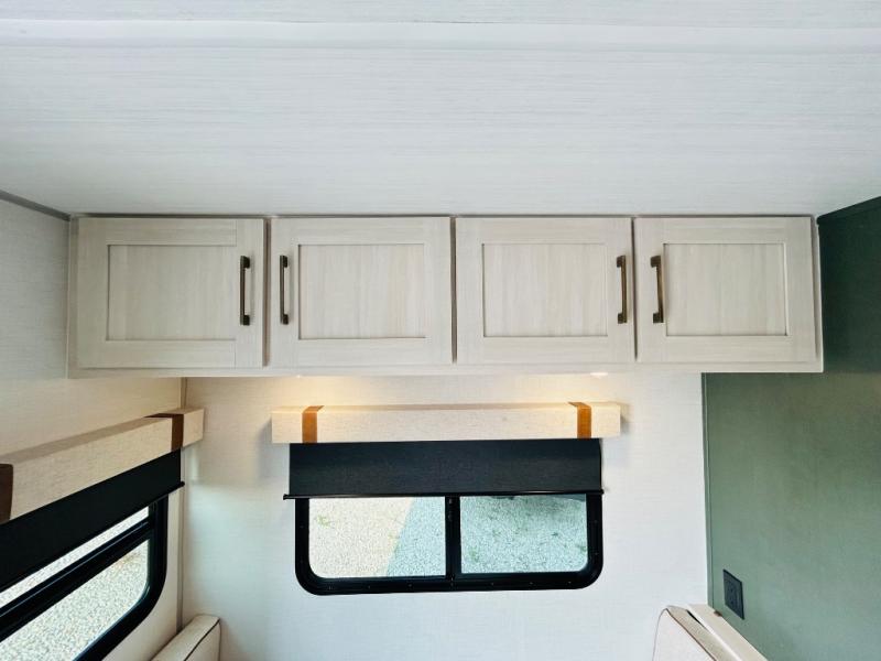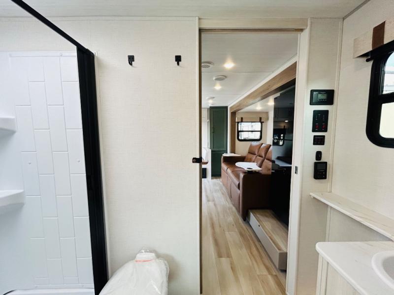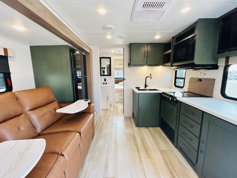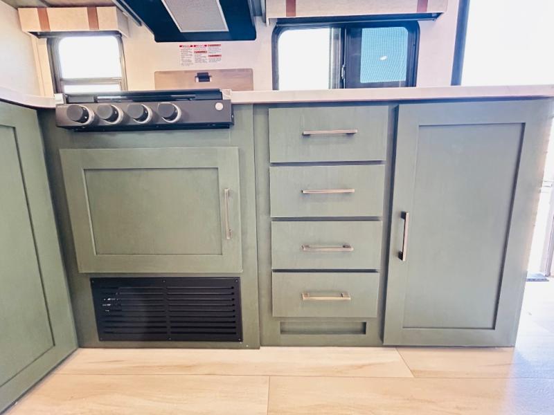It will be so easy to enjoy camping trips in this No Boundaries travel trailer! The front master bedroom includes one of the dual entry doors so you can slip out early for a morning run without waking anyone else up. When you return, you can freshen up in the walk-thru bath, then head to the kitchen to make breakfast. There is also an outside kitchen so you can cook in the fresh mountain air. There is a booth dinette inside where you can dine at, play games, and even let a guest sleep over, and the tri-fold sofa slide provides more space and comfort! When the optional Beast Mode Package on this model is chosen, you'll enjoy a 400-watt solar package, a fresh water filter, a Maxxair roof vent cover, plus a Beast Mode independent suspension for better handling.
