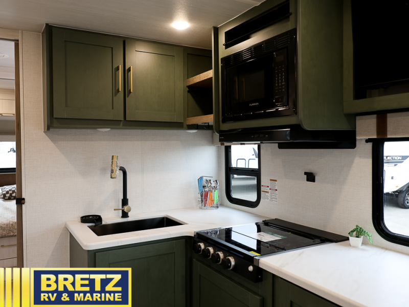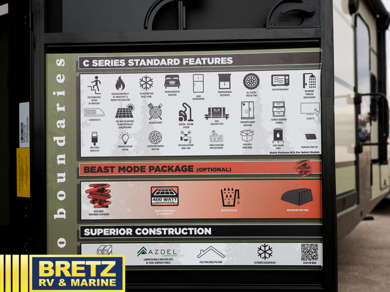 It will be so easy to enjoy camping trips in this No Boundaries travel trailer! The front master bedroom includes one of the dual entry doors so you can slip out early for a morning run without waking anyone else up. When you return, you can freshen up in the walk-thru bath, then head to the kitchen to make breakfast. There is also an outside kitchen so you can cook in the fresh mountain air. There is a booth dinette inside where you can dine at, play games, and even let a guest sleep over, and the tri-fold sofa slide provides more space and comfort! When the optional Beast Mode Package on this model is chosen, you'll enjoy a 400-watt solar package, a fresh water filter, a Maxxair roof vent cover, plus a Beast Mode independent suspension for better handling.