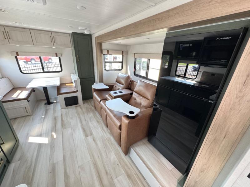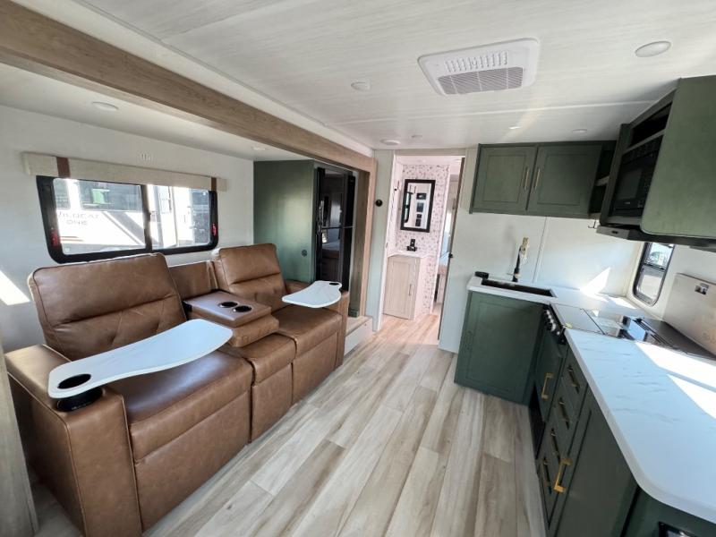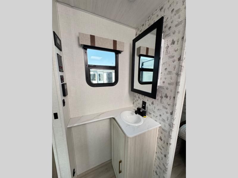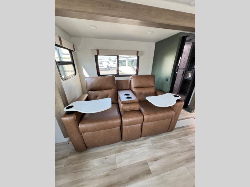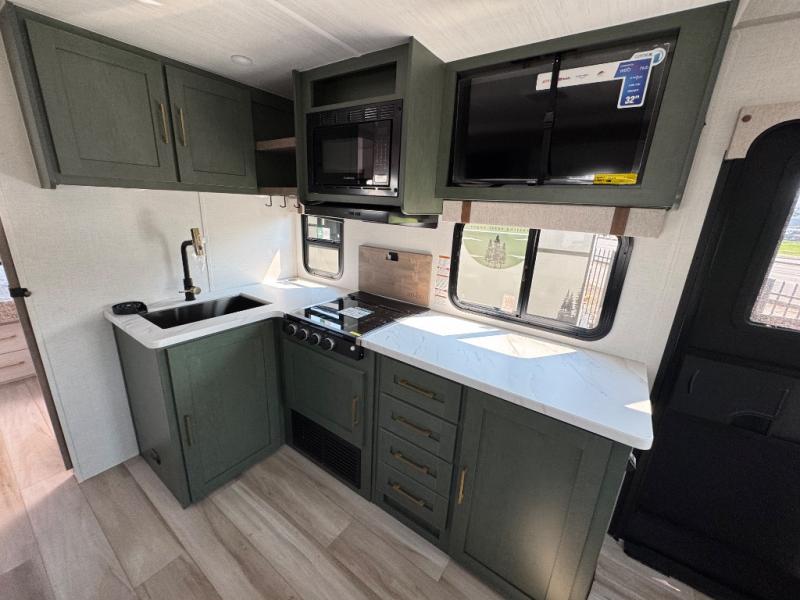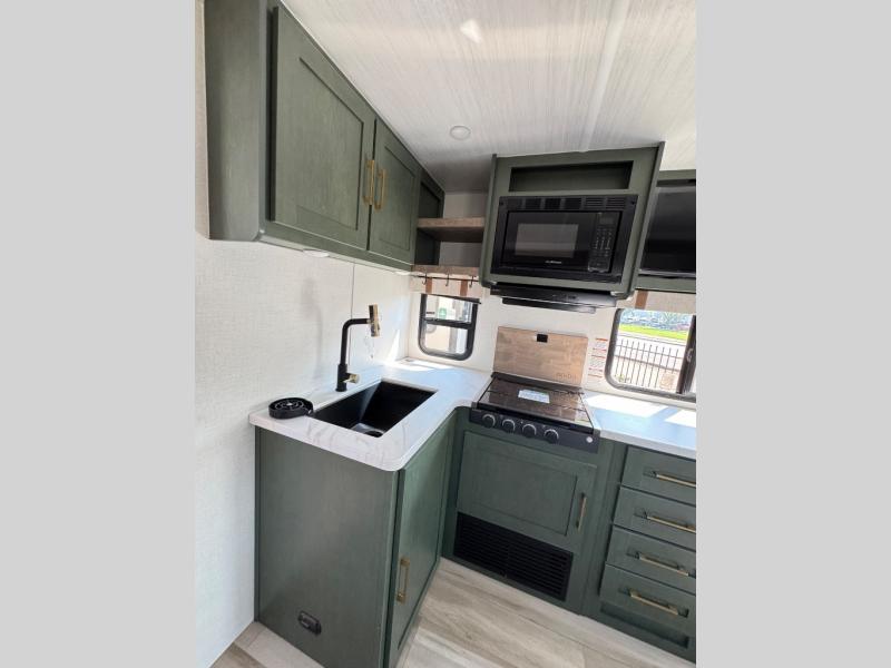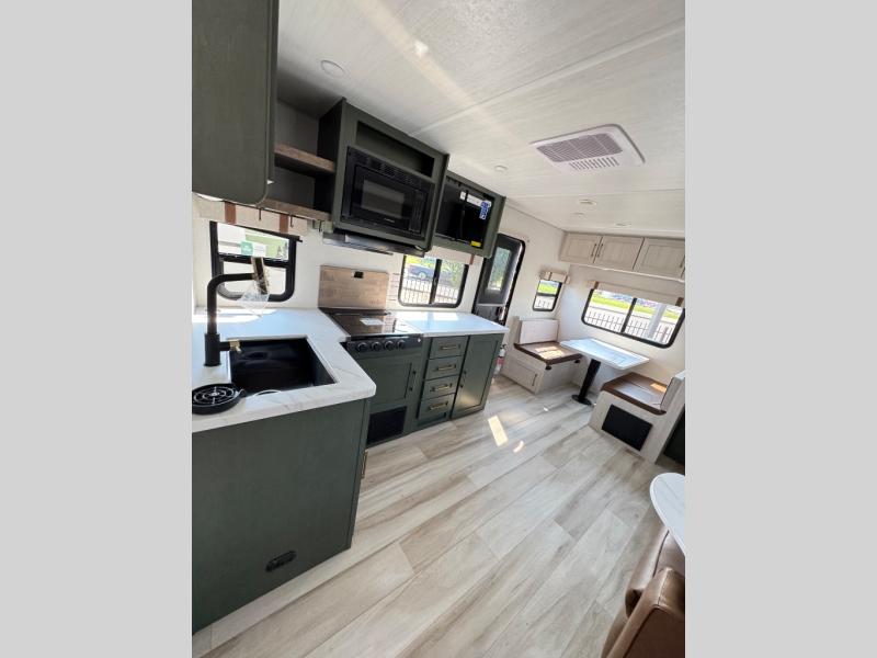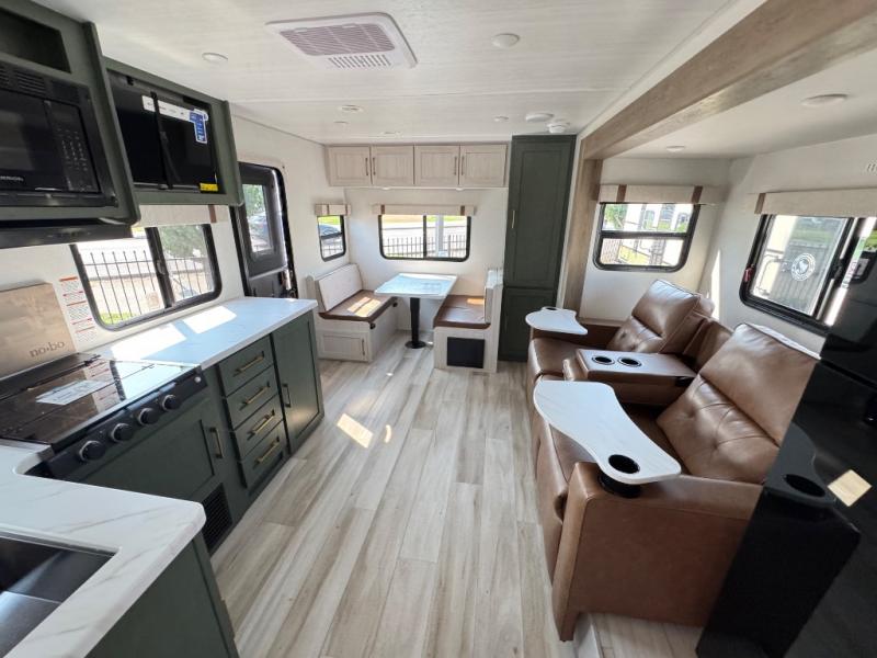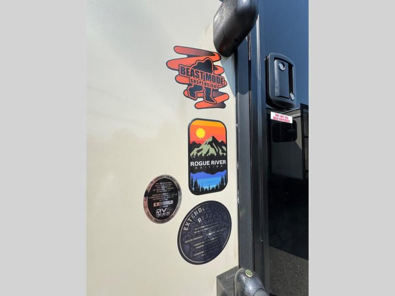 It will be so easy to enjoy camping trips in this No Boundaries travel trailer! The front master bedroom includes one of the dual entry doors so you can slip out early for a morning run without waking anyone else up. When you return, you can freshen up in the walk-thru bath, then head to the kitchen to make breakfast. There is also an outside kitchen so you can cook in the fresh mountain air. There is a booth dinette inside where you can dine at, play games, and even let a guest sleep over, and the tri-fold sofa slide provides more space and comfort! When the optional Beast Mode Package on this model is chosen, you'll enjoy a 400-watt solar package, a fresh water filter, a Maxxair roof vent cover, plus a Beast Mode independent suspension for better handling.