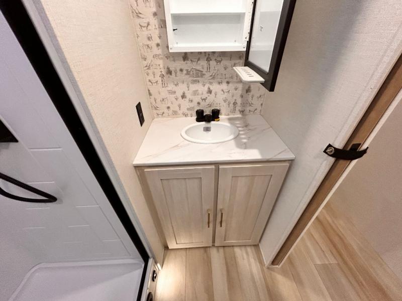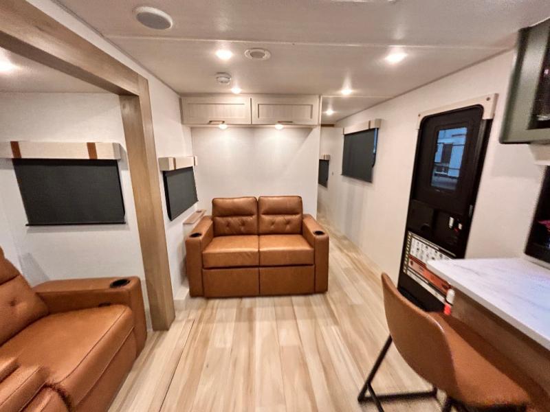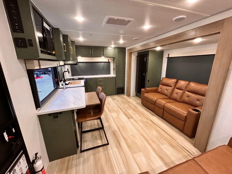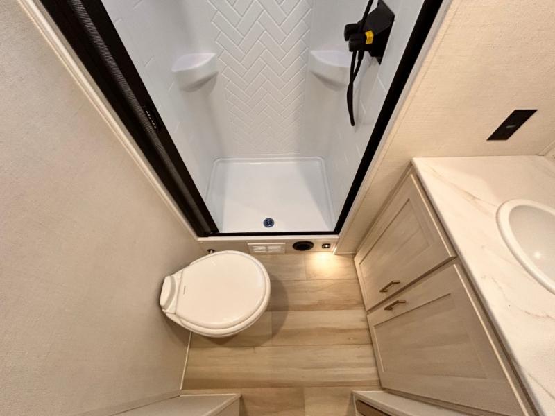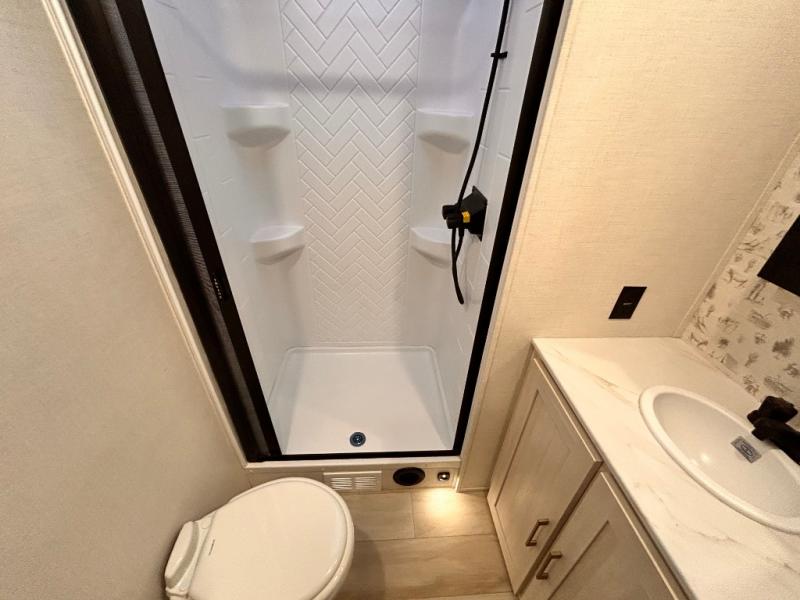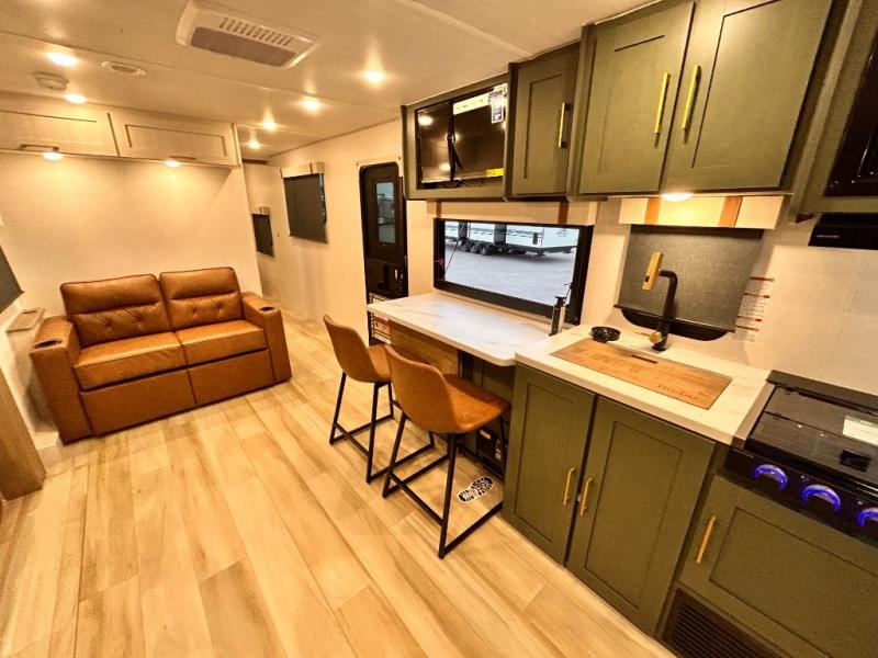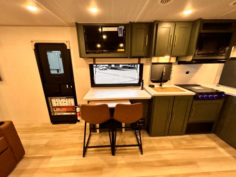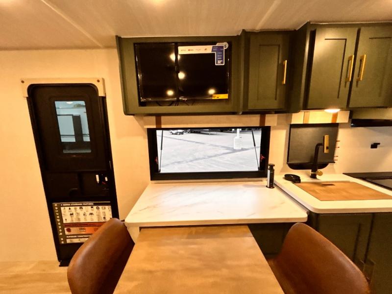 - EXTENDED SEASON READY - (ALUMINUM FRAMED FLOOR W/BLOCK FOAM INSULATION, SEALED UNDERBELLY W/FORCED HEAT & RADIANT FOIL BARRIER, 12V TANK HEATERS), FIBERGLASS FRONT CAP W/ LED LIGHTING, ALL TERRAIN TIRES W/ TPMS, 200W SOLAR PANEL & 30 AMP CONTROLLER, SOLAR INVERTER PREP, 15K BTU A/C, CENTRAL VAC SYSTEM W/HOSE KIT, 12V REFER, UPGRADED SLOW CLOSE SHOWER DOOR (SELECT MODELS), SURF(X)® SEAMLESS C’TOPS, AIR FRYER MICRO, UPGRADED DINETTE PEDESTAL LEG, LARGE KIT. SINK W/ CUP WASHER, BLUE TOOTH AUDIO W/MARINE GRADE SPEAKERS, SOLID ENTRY STEP(S), OUTDOOR KITCHEN, TANKLESS WATER HEATER, HOT & COLD EXT. SPAY PORT, PWR TONGUE JACK, SLAM LATCH BAGGAGE DOORS, ELEC AWNING W/LED LIGHT STRIP, BLACK GLASS FRICTION HINGE ENTRY DOOR(S), ROOF LADDER PREP, REAR CAMERA PREP, BATTERY DISCONNECT, INT & EXT MOTION LIGHTS, INT & EXT USB C-PORTS, 2" REAR ACCESSORY HITCH, SUPERIOR LAMINATED CONSTRUCTION FEATURING AZDEL COMPOSITE PANELS