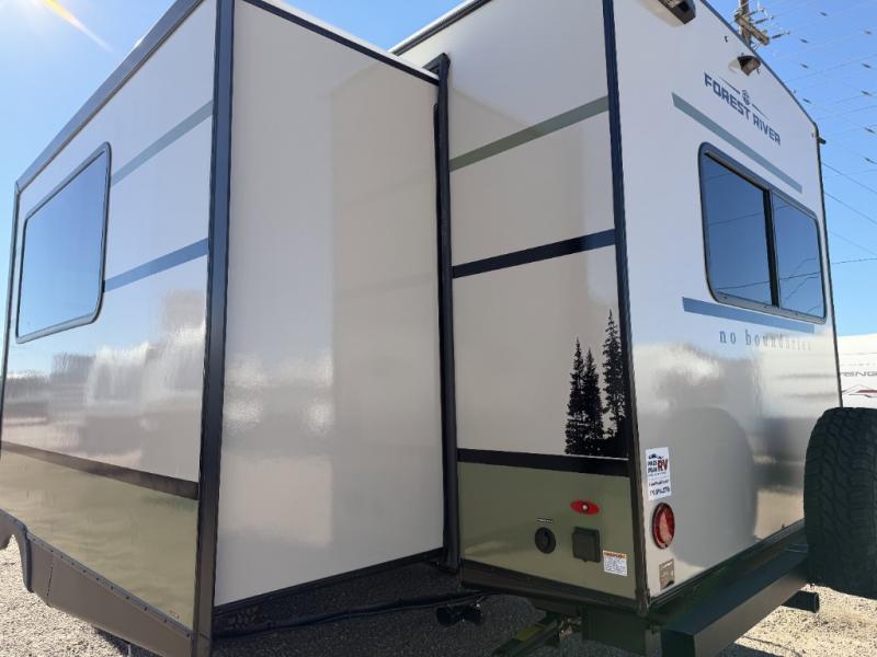 The Forest River No Boundaries travel trailers are exceptionally lightweight and can be towed by 4-cylinder and 6-cylinder tow vehicles! They are perfect for the outdoor enthusiast, and you'll find plenty of storage for your camp gear, personal belongings, and more! Each model is constructed with a welded aluminum structure, Azdel composite panels and a fully walkable PVC roof for added durability. There are a wide variety of floorplans to choose from, including 10 Series (under 2,500 lbs.), 18 and 19 Series (under 5,000 lbs.), plus 20 Series (under 5,500 lbs.). There are no boundaries when camping in these travel trailers!