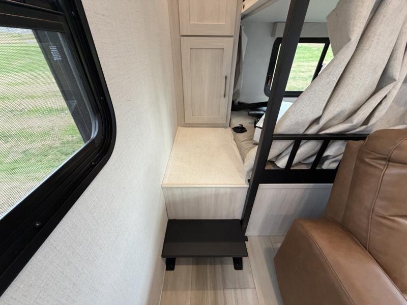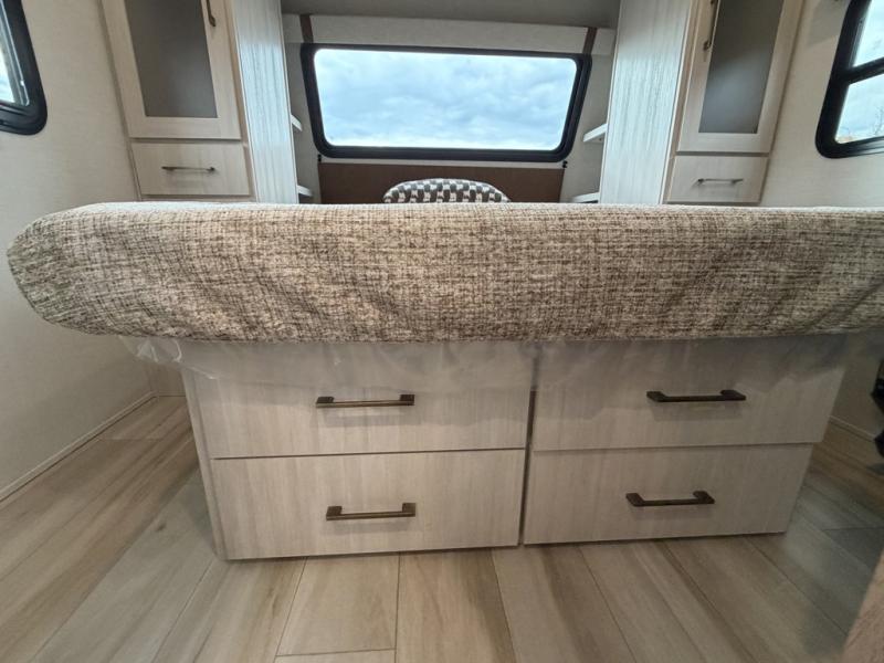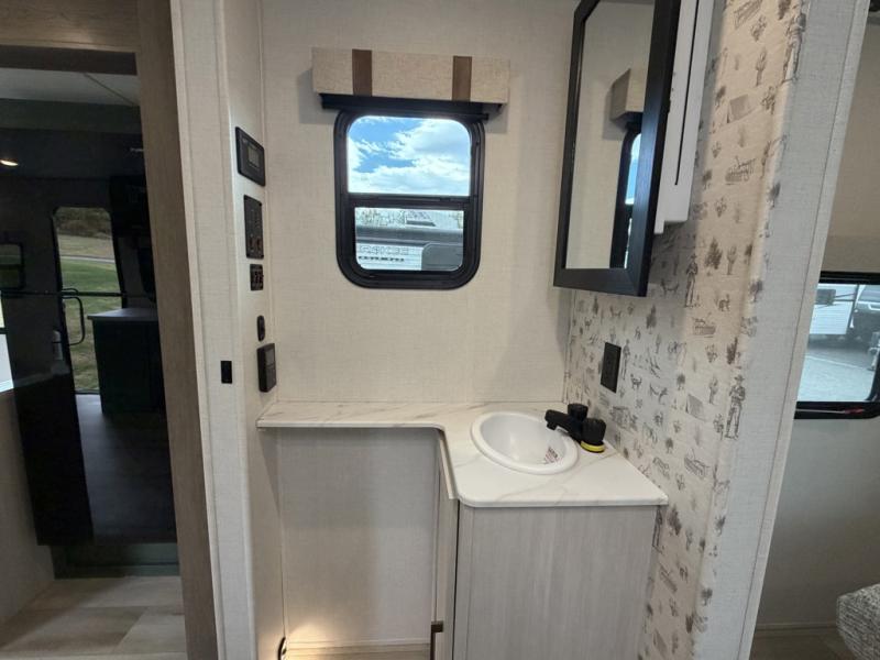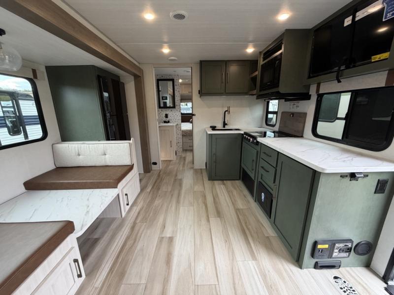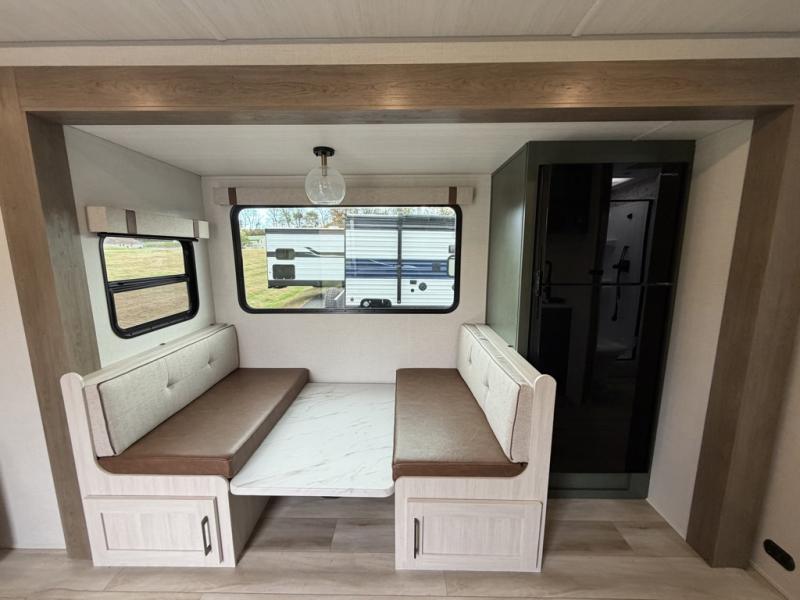 It will be so easy to enjoy camping trips in this No Boundaries travel trailer! The front master bedroom includes one of the dual entry doors so you can slip out early for a morning run without waking anyone else up. When you return, you can freshen up in the walk-thru bath, then head to the kitchen to make breakfast. There is also an outside kitchen so you can cook in the fresh mountain air. A booth dinette provides a place to dine together, and the sofa will be the perfect place to relax. There are also double-size bunks in the back with a wardrobe for your guests' things!