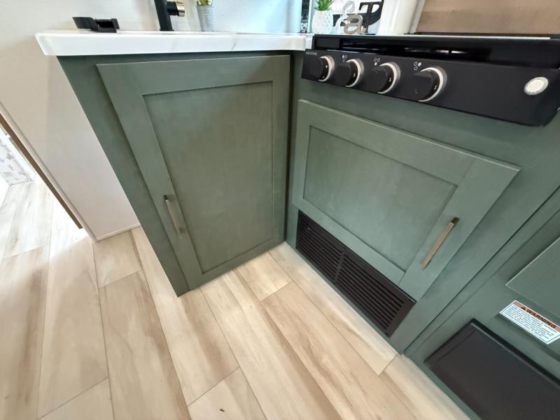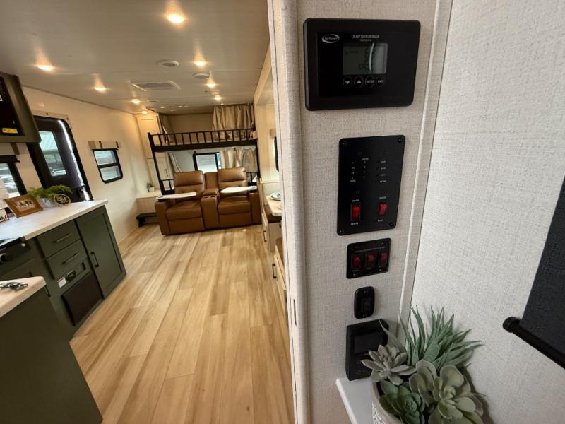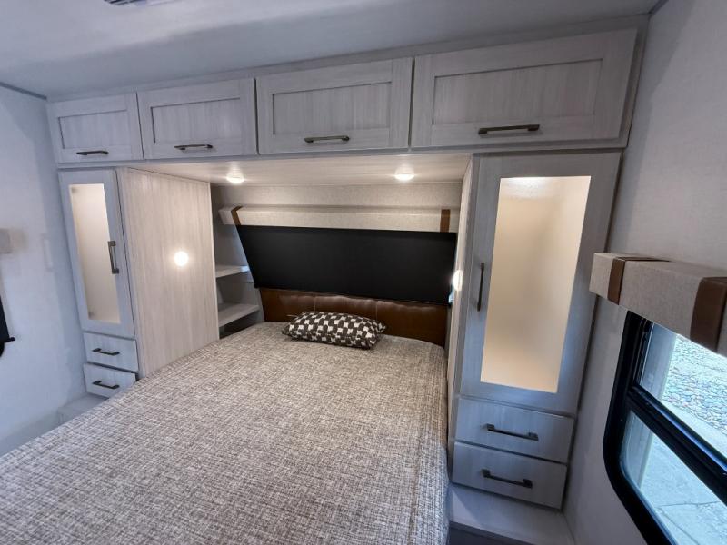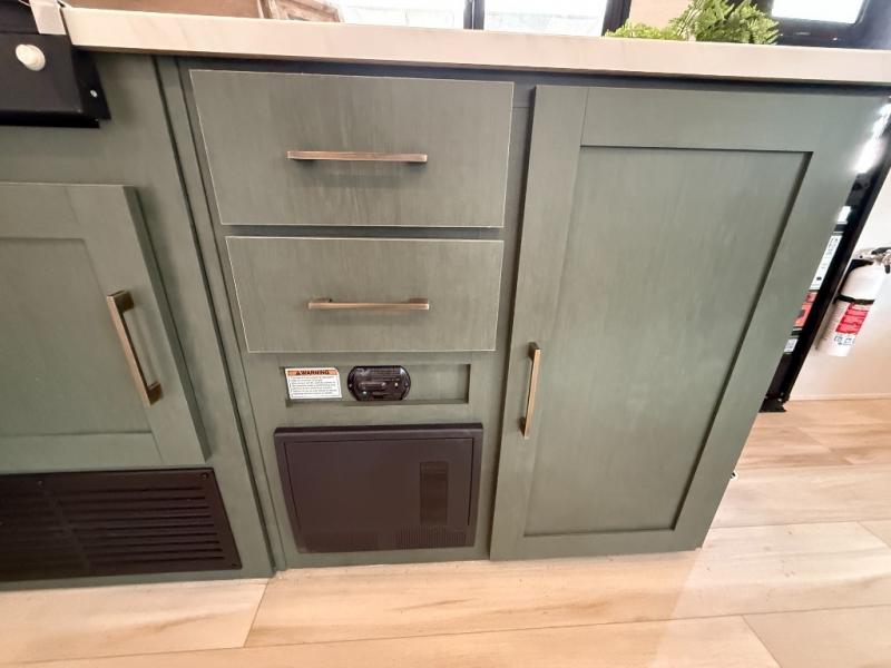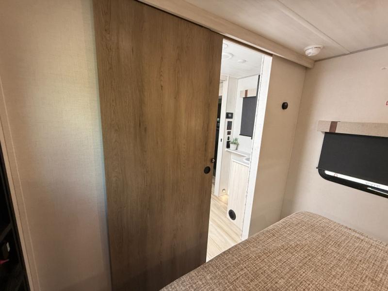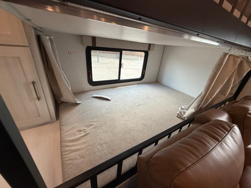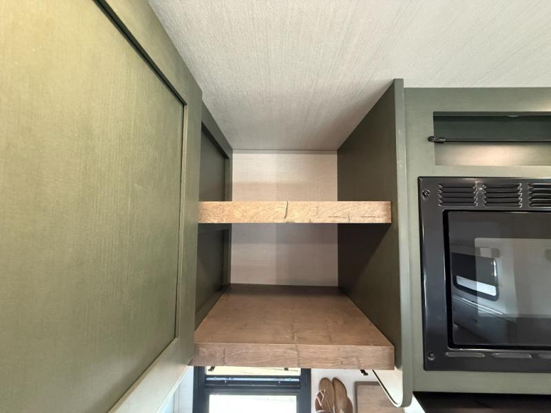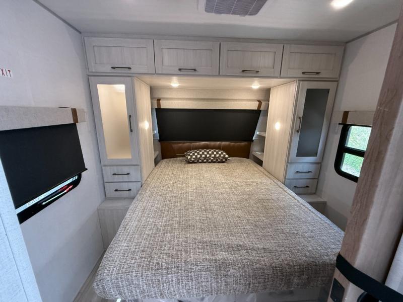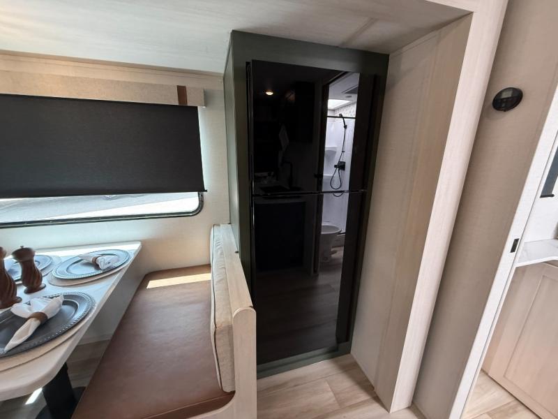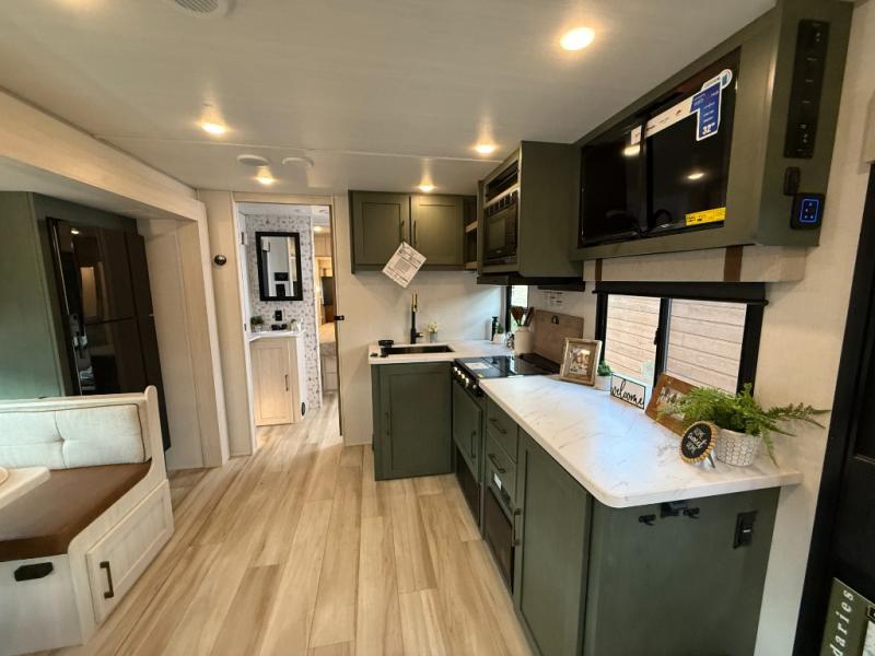 It will be so easy to enjoy camping trips in this No Boundaries travel trailer! The front master bedroom includes one of the dual entry doors so you can slip out early for a morning run without waking anyone else up. When you return, you can freshen up in the walk-thru bath, then head to the kitchen to make breakfast. There is also an outside kitchen so you can cook in the fresh mountain air. A booth dinette provides a place to dine together, and the sofa will be the perfect place to relax. There are also double-size bunks in the back with a wardrobe for your guests' things!