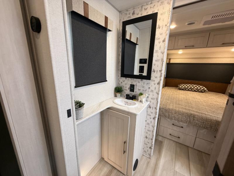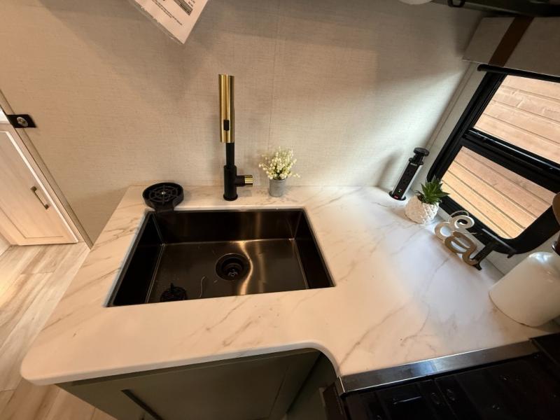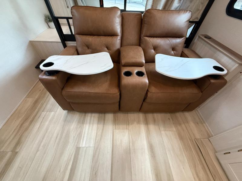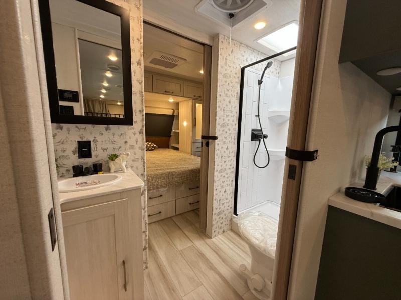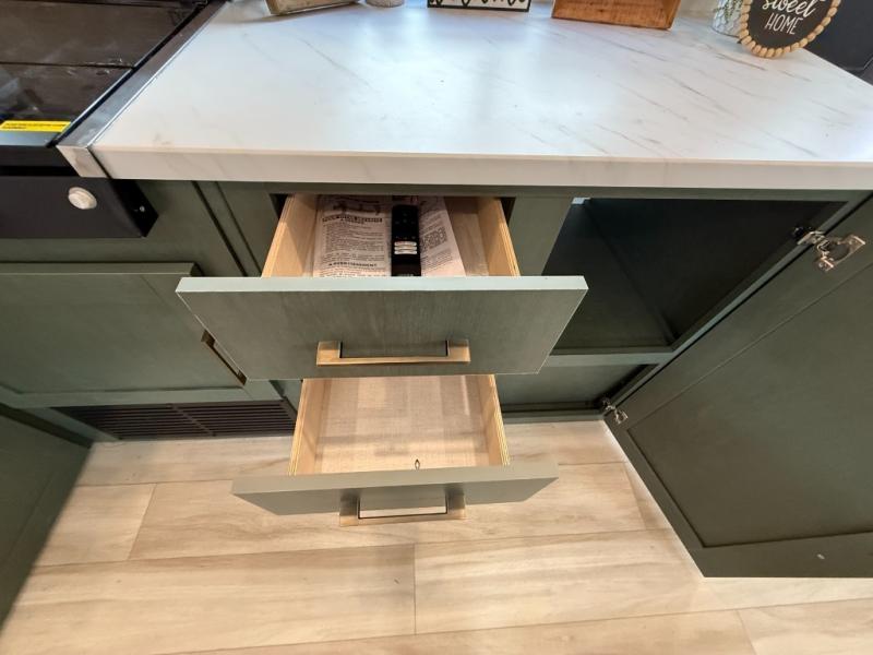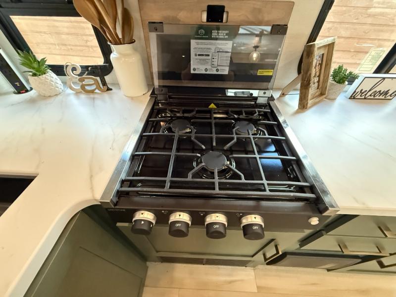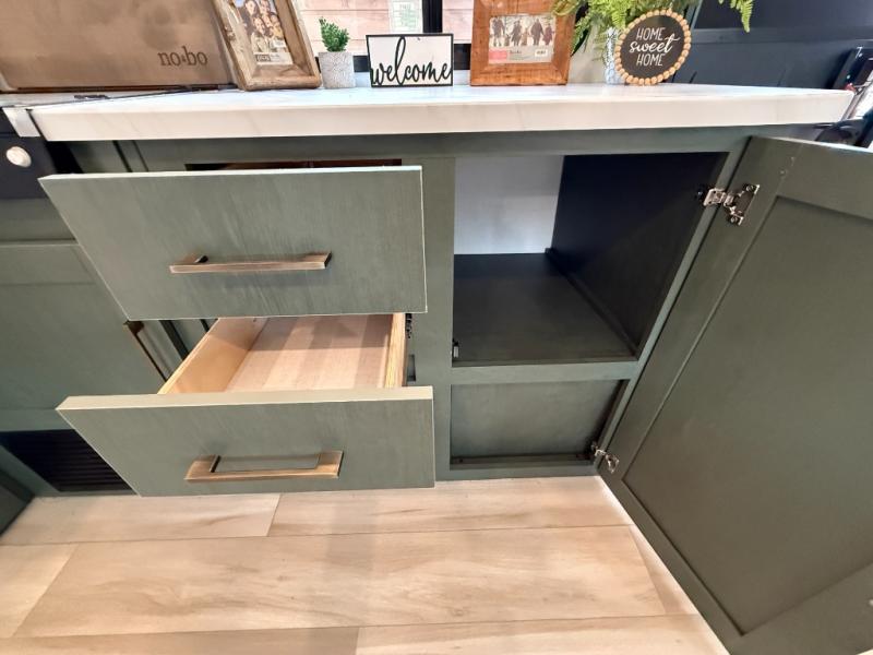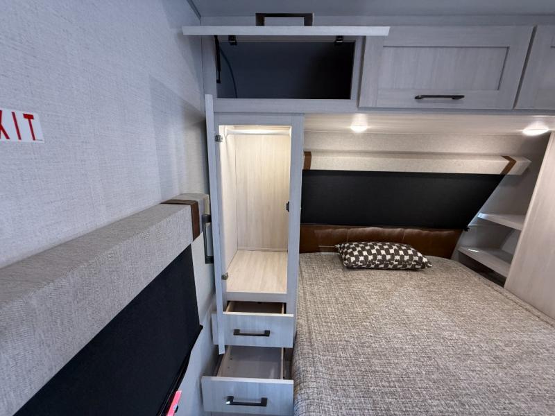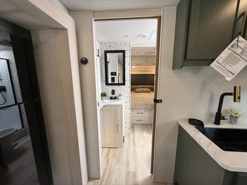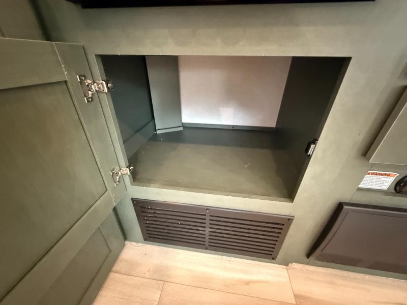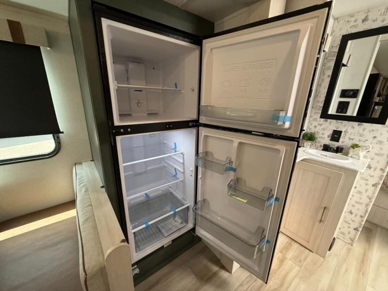It will be so easy to enjoy camping trips in this No Boundaries travel trailer! The front master bedroom includes one of the dual entry doors so you can slip out early for a morning run without waking anyone else up. When you return, you can freshen up in the walk-thru bath, then head to the kitchen to make breakfast. There is also an outside kitchen so you can cook in the fresh mountain air. A booth dinette provides a place to dine together, and the sofa will be the perfect place to relax. There are also double-size bunks in the back with a wardrobe for your guests' things!