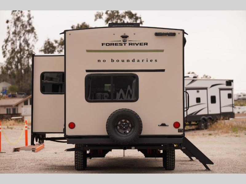 The Forest River No Boundaries travel trailers are exceptionally lightweight and can be towed by 4-cylinder and 6-cylinder tow vehicles! They are perfect for the outdoor enthusiast, and you'll find plenty of storage for your camp gear, personal belongings, and more! Each model is constructed with a welded aluminum structure, Azdel composite panels and a fully walkable PVC roof for added durability. There are a wide variety of floorplans to choose from, including 10 Series (under 2,500 lbs.), 18 and 19 Series (under 5,000 lbs.), plus 20 Series (under 5,500 lbs.). There's no boundaries when camping in these travel trailers!