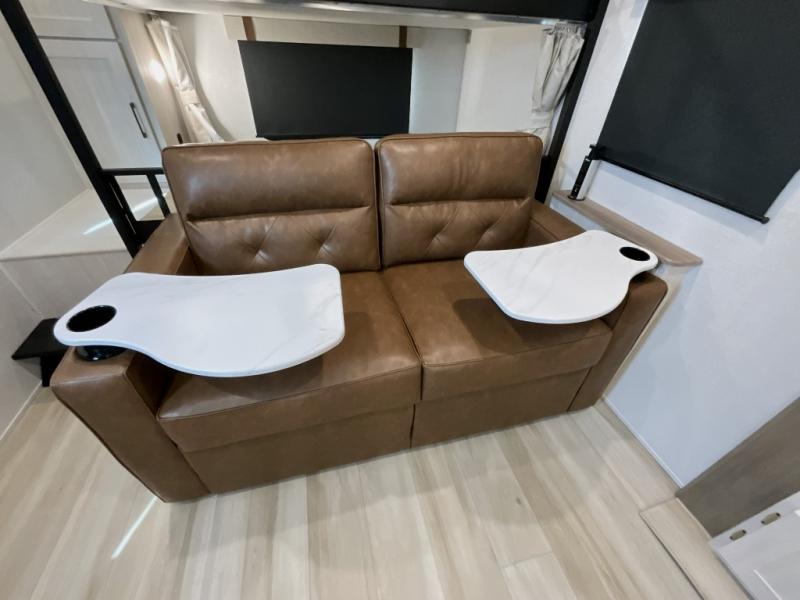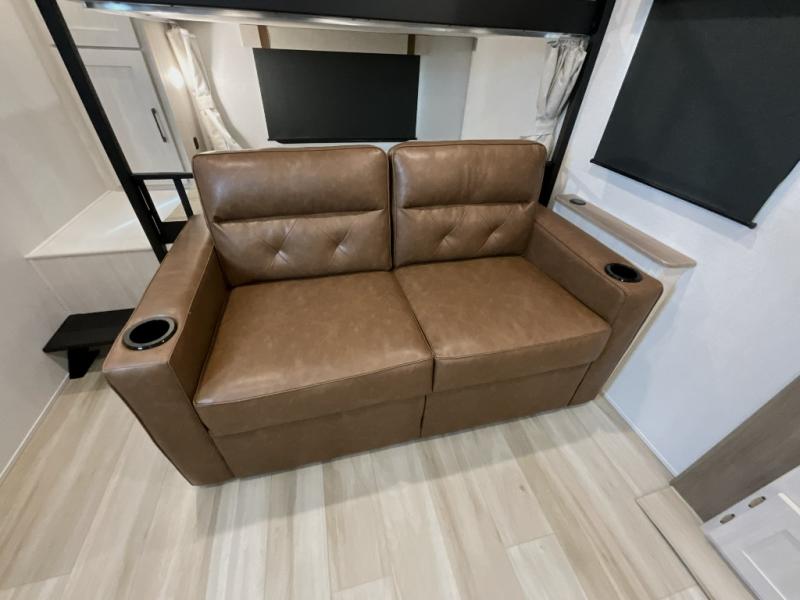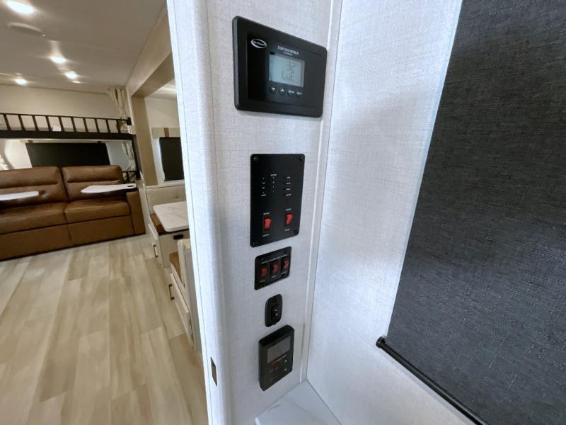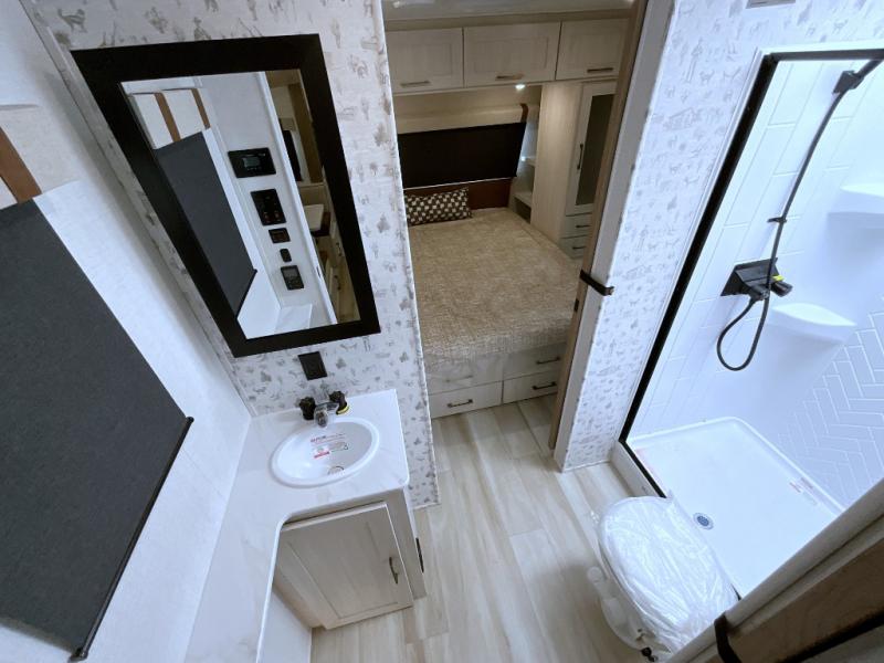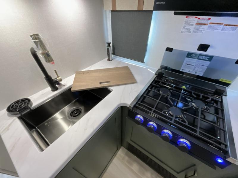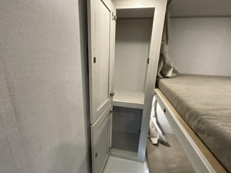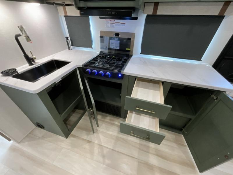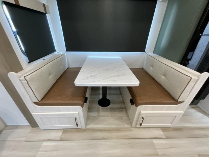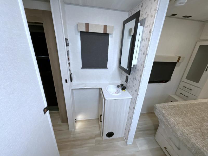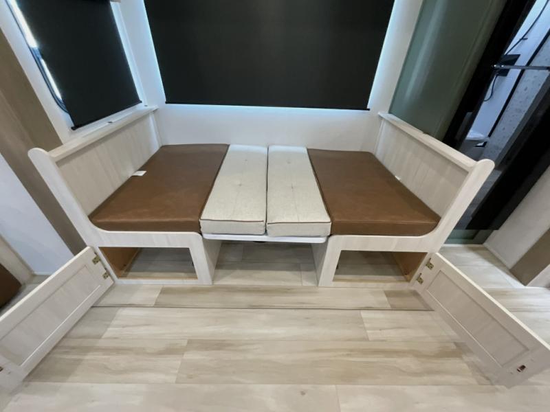 It will be so easy to enjoy camping trips in this No Boundaries travel trailer! The front master bedroom includes one of the dual entry doors so you can slip out early for a morning run without waking anyone else up. When you return, you can freshen up in the walk-thru bath, then head to the kitchen to make breakfast. There is also an outside kitchen so you can cook in the fresh mountain air. A booth dinette provides a place to dine together, and the sofa will be the perfect place to relax. There are also double-size bunks in the back with a wardrobe for your guests' things!