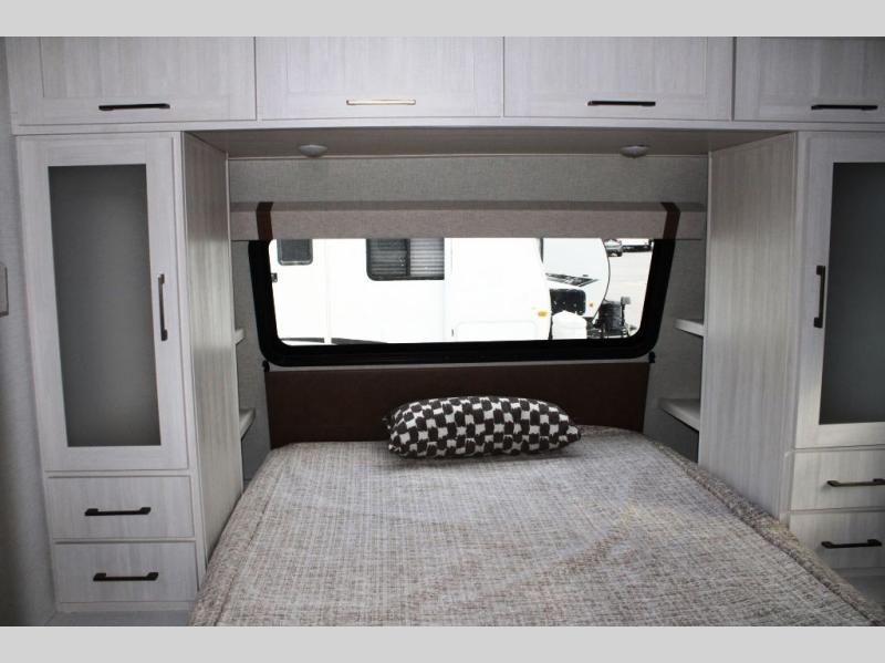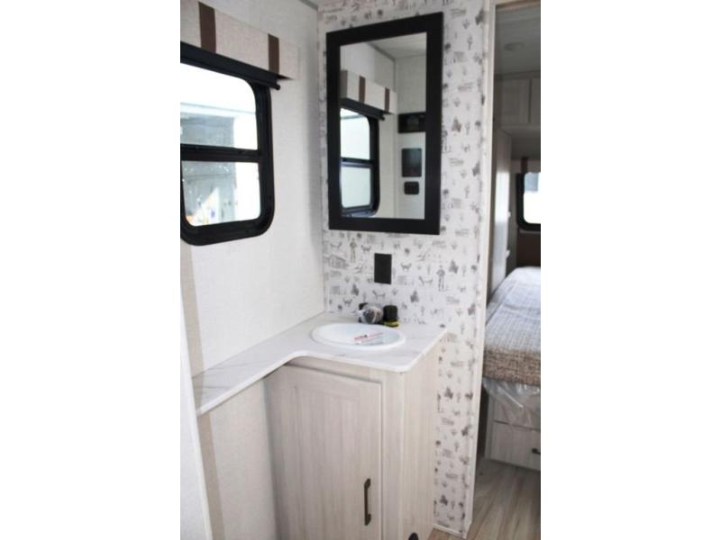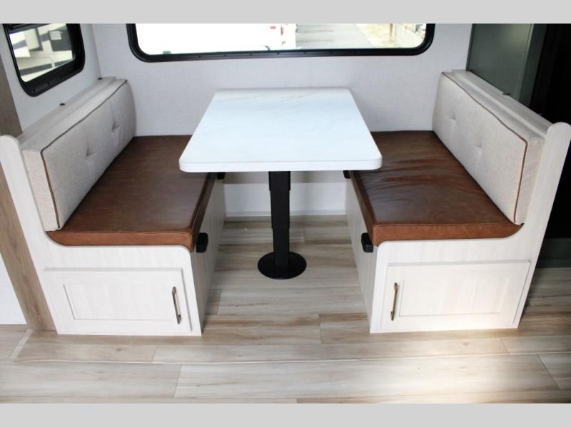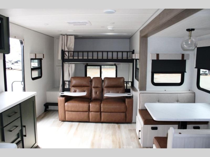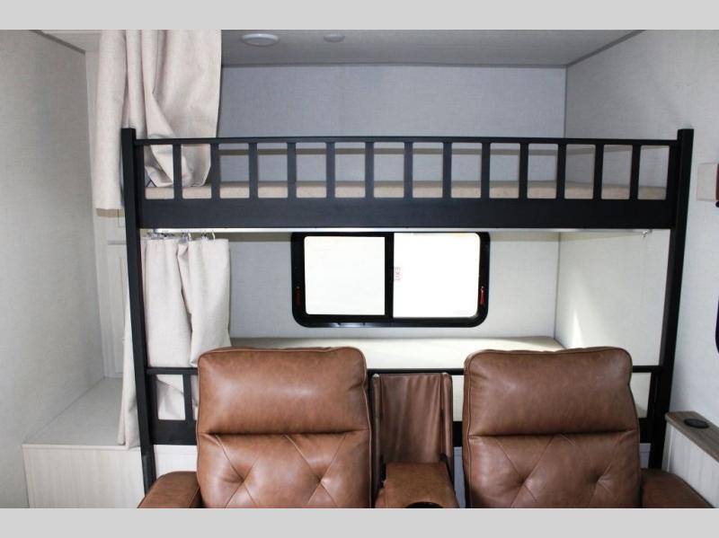 It will be so easy to enjoy camping trips in this No Boundaries travel trailer! The front master bedroom includes one of the dual entry doors so you can slip out early for a morning run without waking anyone else up. When you return, you can freshen up in the walk-thru bath, then head to the kitchen to make breakfast. There is also an outside kitchen so you can cook in the fresh mountain air. A booth dinette provides a place to dine together, and the sofa will be the perfect place to relax. There are also double-size bunks in the back with a wardrobe for your guests' things. When the optional Beast Mode Package is chosen on this model, you'll enjoy the Beast Mode suspension, an additional 200-watt solar panel, a Maxxair vent cover and more!