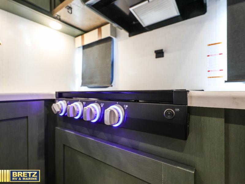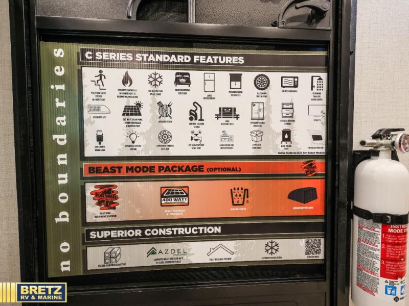 It will be so easy to enjoy camping trips in this No Boundaries travel trailer! The front master bedroom includes one of the dual entry doors so you can slip out early for a morning run without waking anyone else up. When you return, you can freshen up in the walk-thru bath, then head to the kitchen to make breakfast. There is also an outside kitchen so you can cook in the fresh mountain air. A booth dinette provides a place to dine together, and the sofa will be the perfect place to relax. There are also double-size bunks in the back with a wardrobe for your guests' things. When the optional Beast Mode Package is chosen on this model, you'll enjoy the Beast Mode suspension, an additional 200-watt solar panel, a Maxxair vent cover and more!