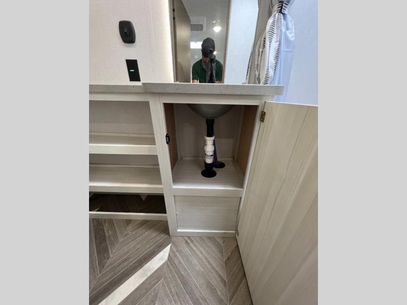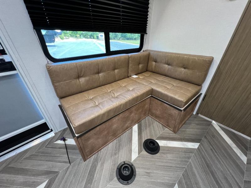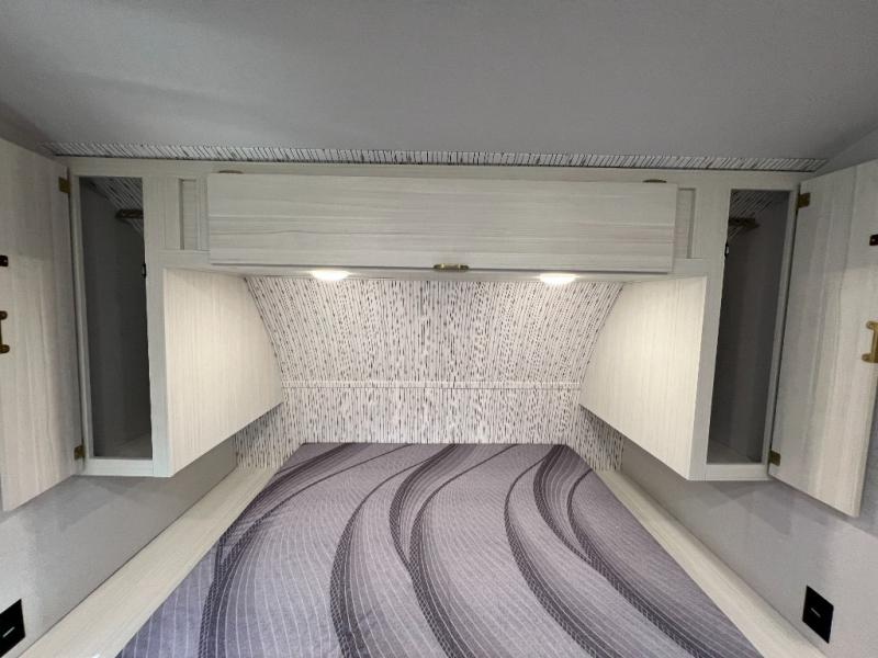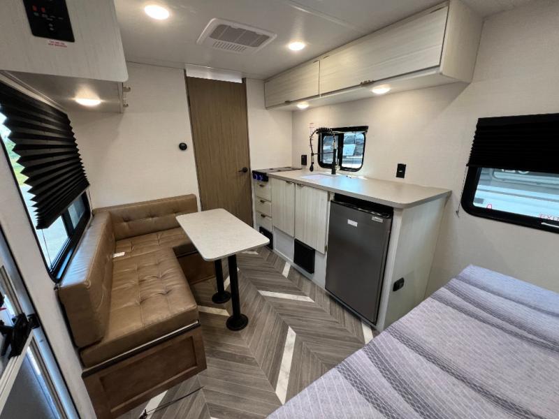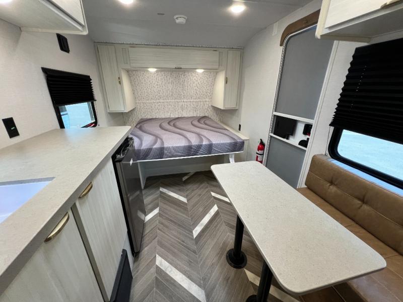 This Limited Edition travel trailer is the perfect couples coach! As you enter, the queen bed in front features dual wardrobes and an overhead space for your personal belongings. The middle L-shaped open lounge with a table provides a place to relax and let a guest sleep over, and across from here, the countertop which features a sink, counter space, and a two burner cooktop allows you to prepare meals and snacks easily. There is even a refrigerator for your perishables. You will also enjoy the full rear bath with shower to stay clean and generous bath counterspace. On the outside, an 8' 12V power awning will provide an outdoor living space you are sure to love as well!