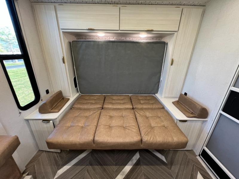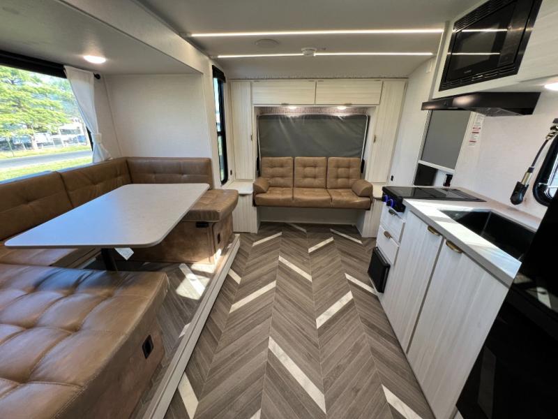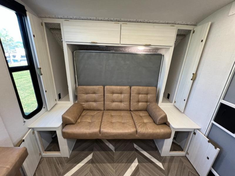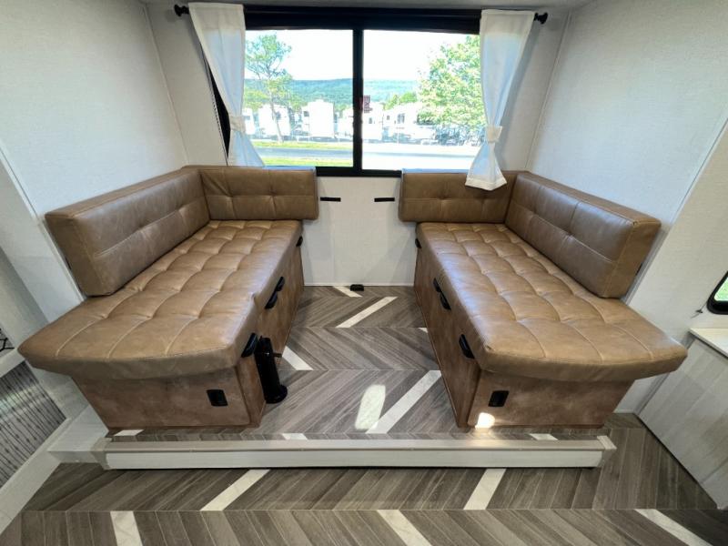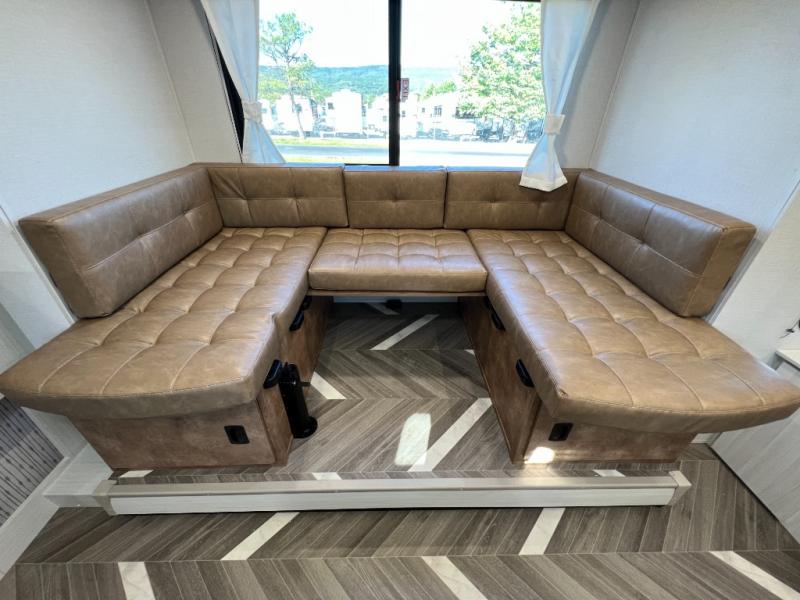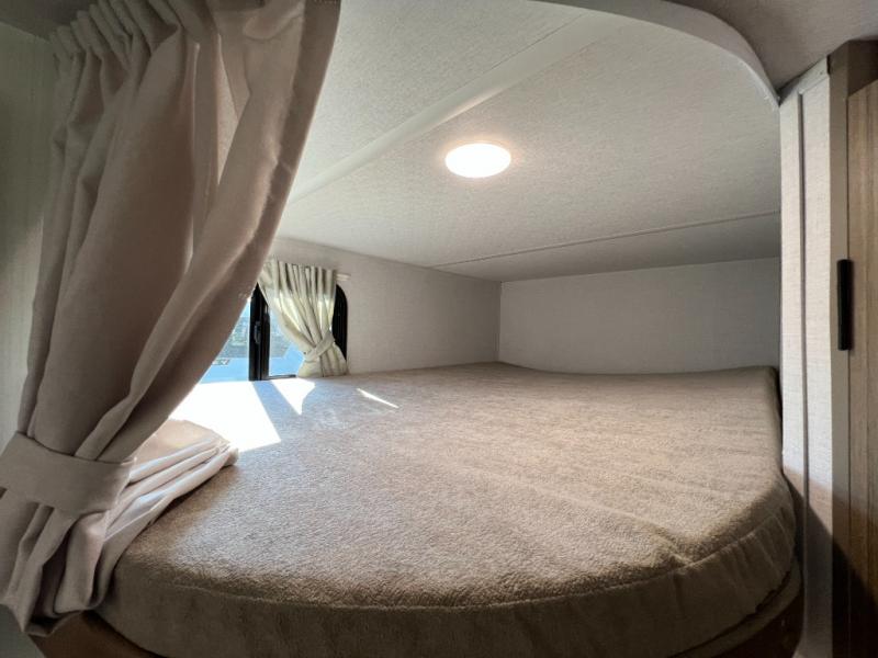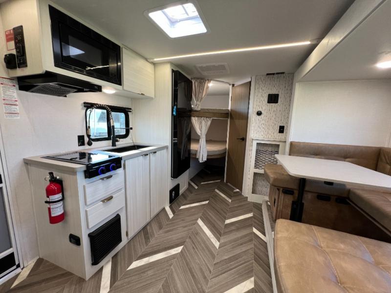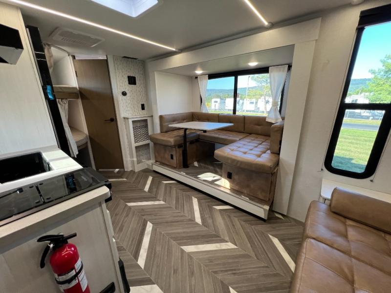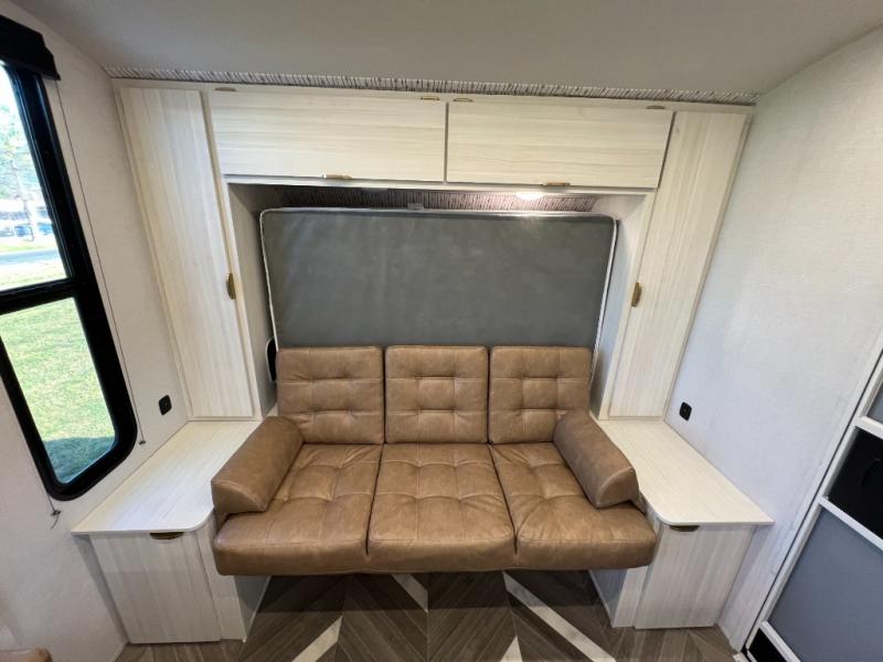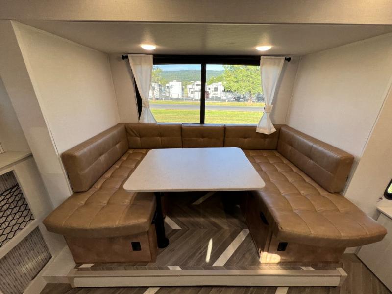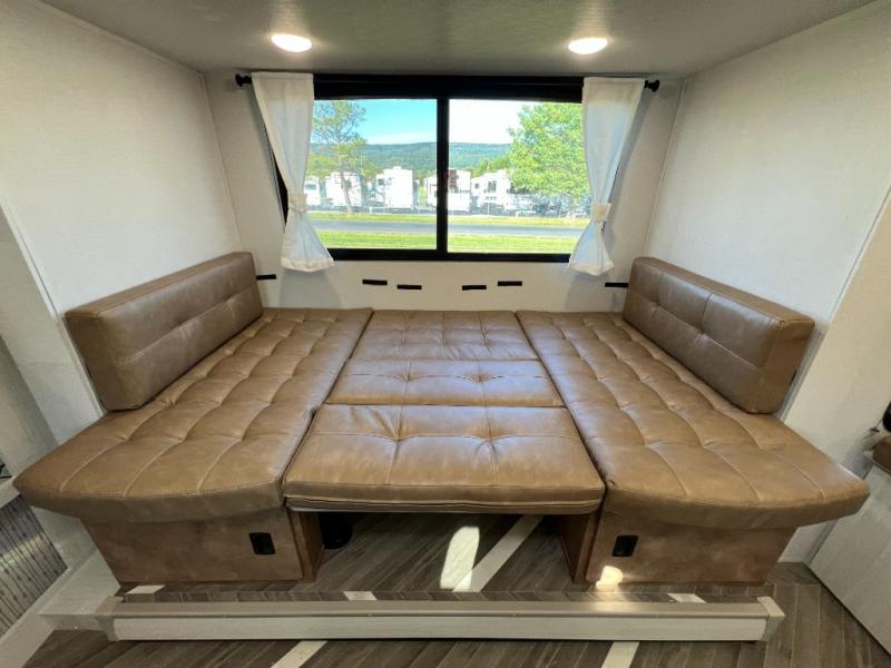 You can create the perfect oasis with this Ozark travel trailer! The exterior is outfitted with a 14' power awning to protect you from the hot summer sun and rain. On the interior, there is extra roominess thanks to the single slide. This slide holds the U-shaped dinette/booth dinette combo where you can dine at. The Murphy bed is especially useful when you are trying to be frugal with your space because it can fold away to reveal a sofa during the day allowing more space to move about. The double-size bunks provide plenty of sleeping space, and the panoramic window and lets the sunshine in.
