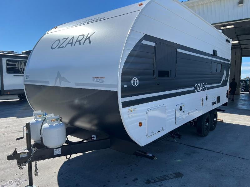 With any Ozark travel trailer or toy hauler by Forest River, you can expect lightweight towing, tons of standard features, and a great value! Each one is built with solid materials, including fiberglass insulation throughout, front diamond plate rock guard for added protection, and a powder coated I-beam frame with camber for more structural support! The stylish interior will have you feeling right at home, and you'll find plenty of storage spaces for your personal belongings, camp gear, and more. And since there are a variety of floorplans to choose from, including Limited Edition travel trailers, single axle and dual axle models, plus toy haulers, you're sure to find the Ozark that fits your needs!