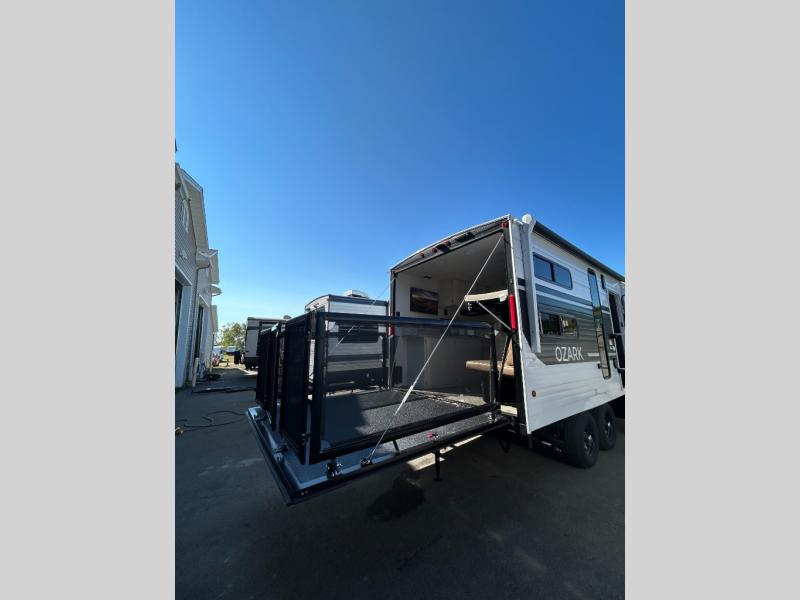 With any Ozark travel trailer or toy hauler by Forest River, you can expect lightweight towing, tons of standard features, and a great value! Each one is built with solid materials, including fiberglass insulation throughout, front diamond plate rock guard for added protection, and a powder coated I-beam frame with camber for more structural support! The stylish interior will have you feeling right at home, and you'll find plenty of storage spaces for your personal belongings, camp gear, and more. And since there are a variety of floorplans to choose from, including Limited Edition travel trailers, single axle and dual axle models, plus toy haulers, you're sure to find the Ozark that fits your needs!